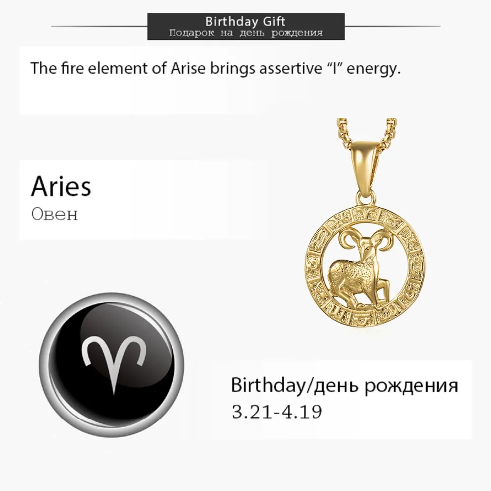 Gold Color Aries Zodiac Sign Necklace For Women Men Pendant Necklace Male Woman Fashion Party Jewelry Gifts GP357