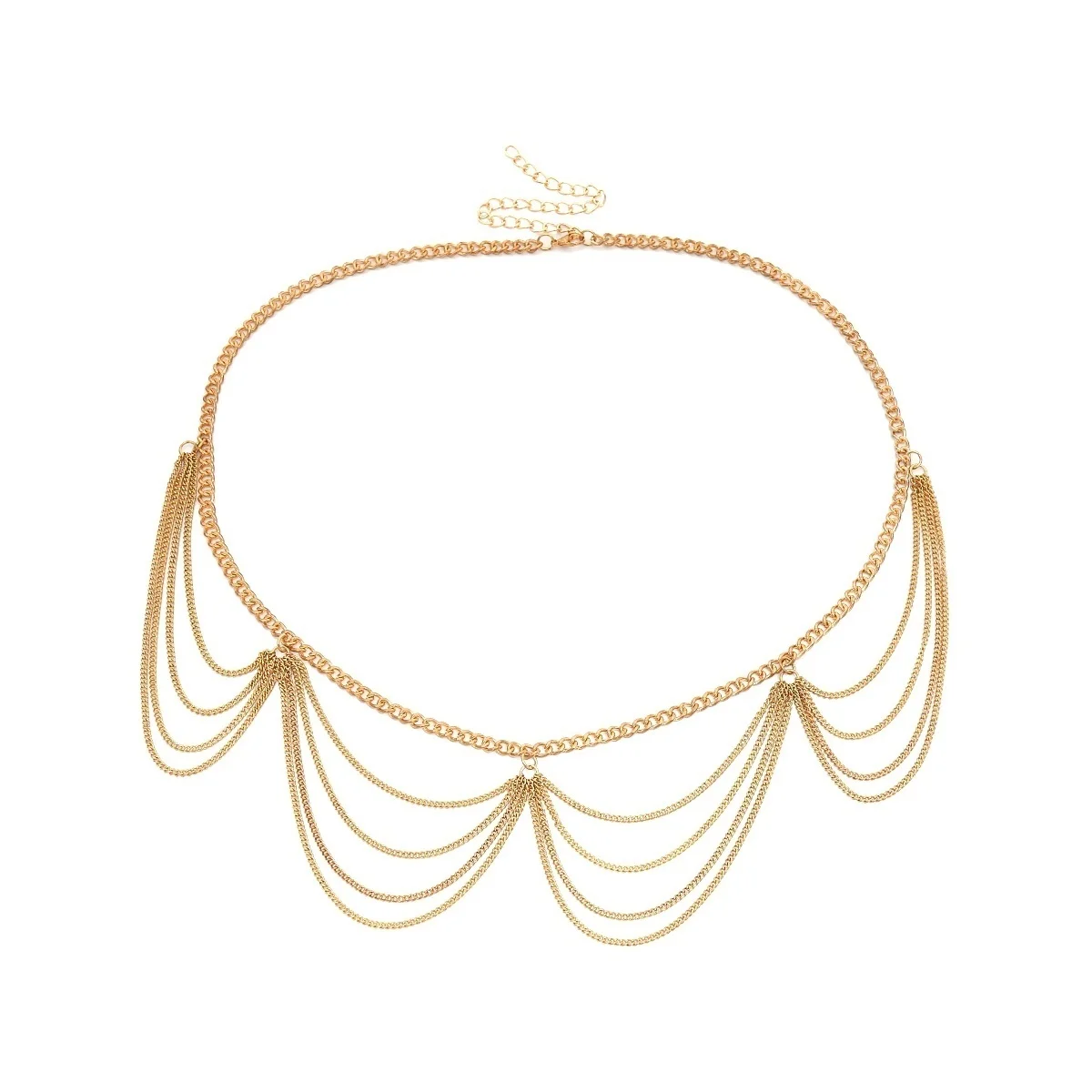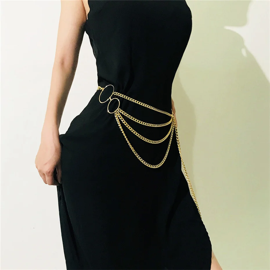 IngeSight.Z Bohemian Retro Style Multilayer Alloy Waist Chain Body Chain for Women Round Pendant Belly Chain Waist Chain Jewelry