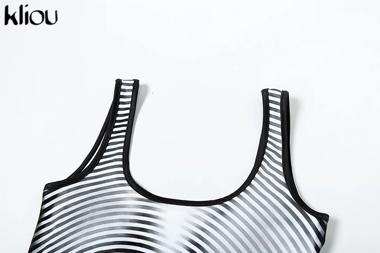 kliou Striped Print Gradient 2 Piece Set Women Summer Crop Camis+Skinny High Waist Pants Female Trend Party Coordinate Outfits