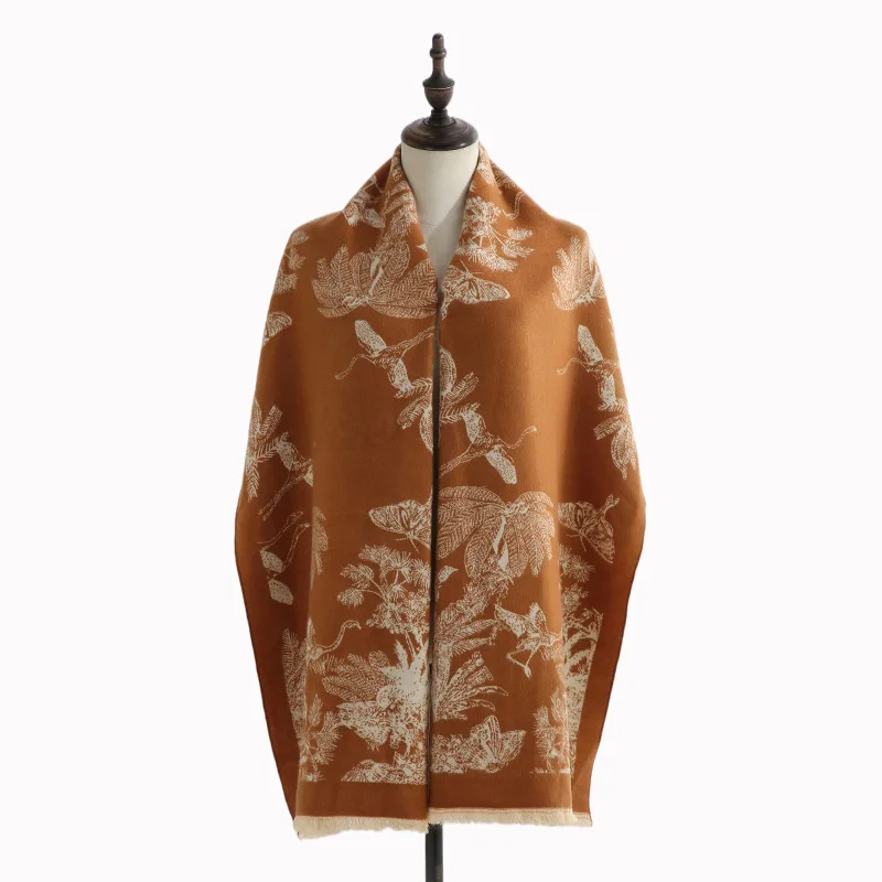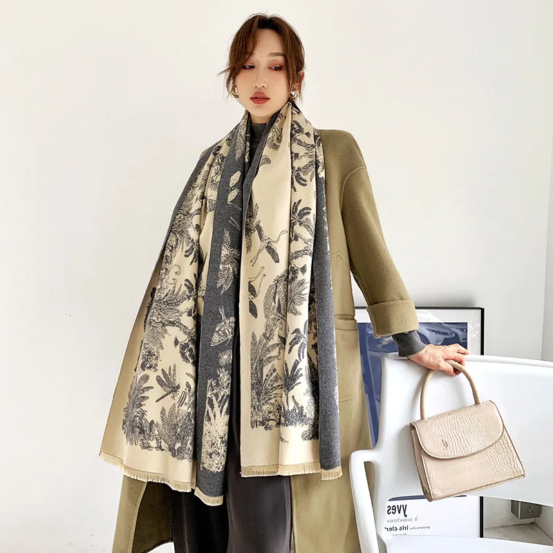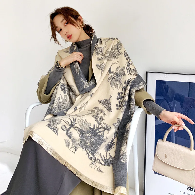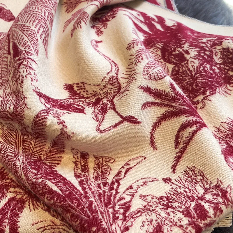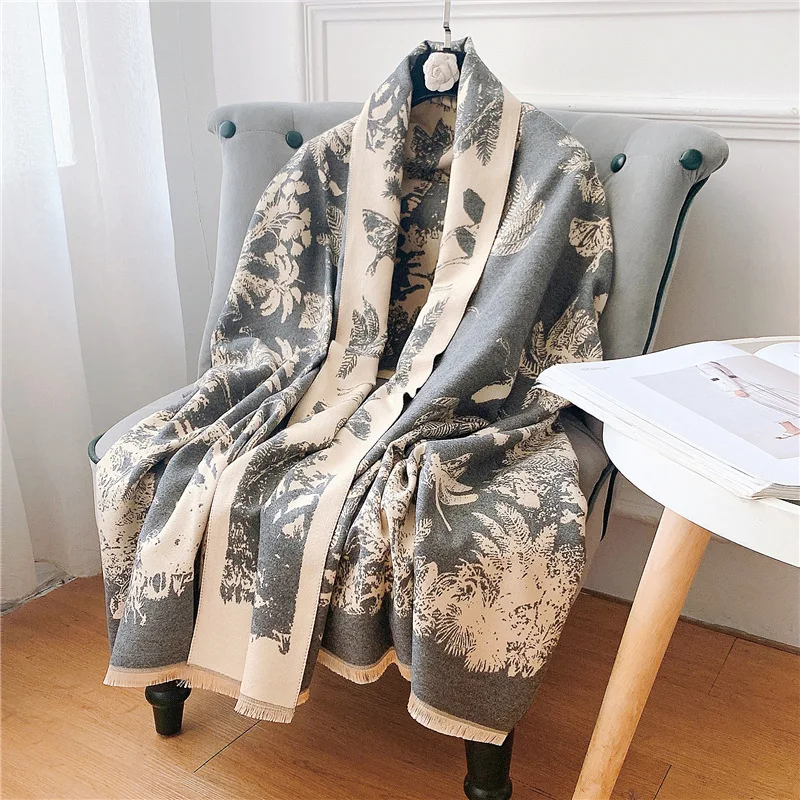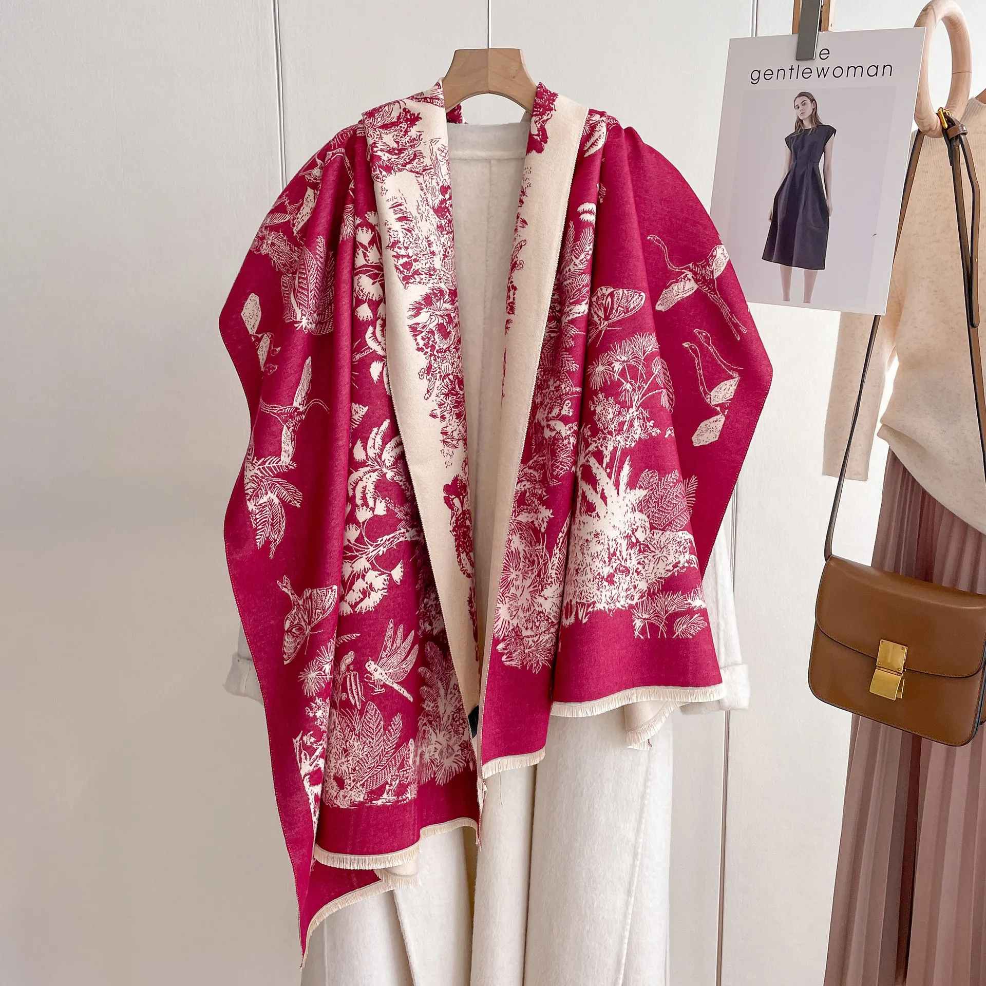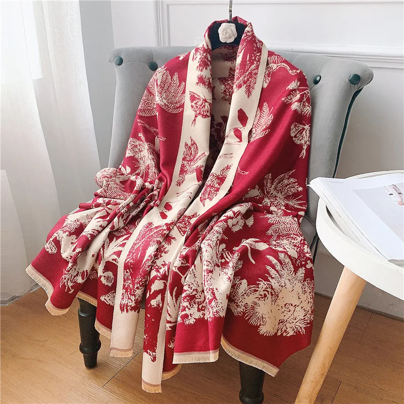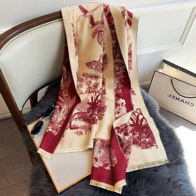 Luxury Cashmere Scarf Winter Women Flower Bird Pattern Shawls Warm Blanket Wraps Female Double Sided Thick Fashion Print Scarves