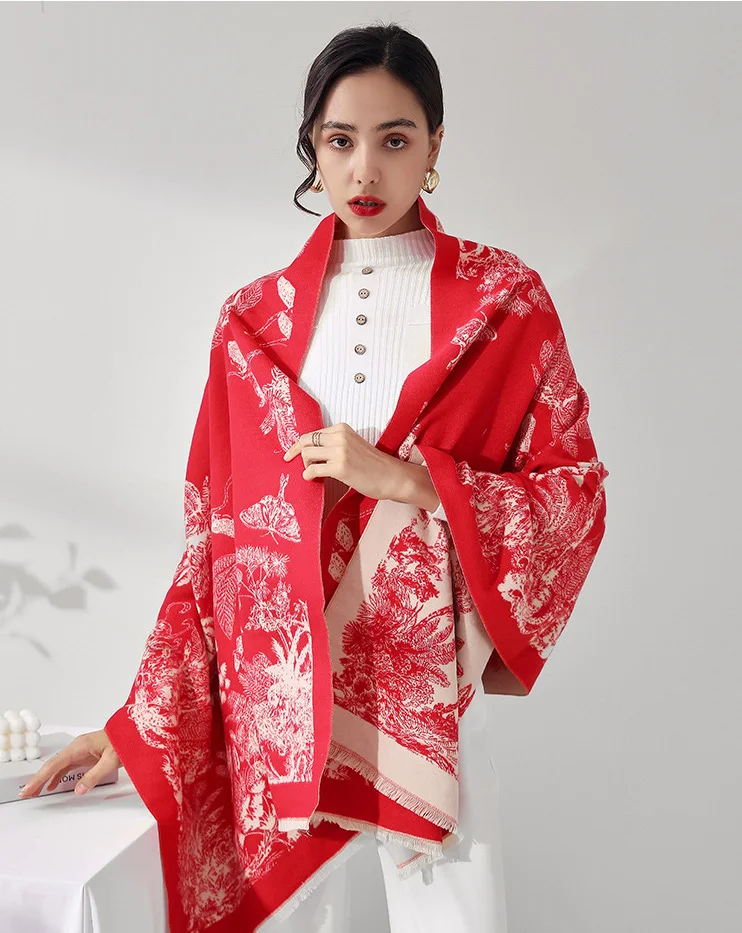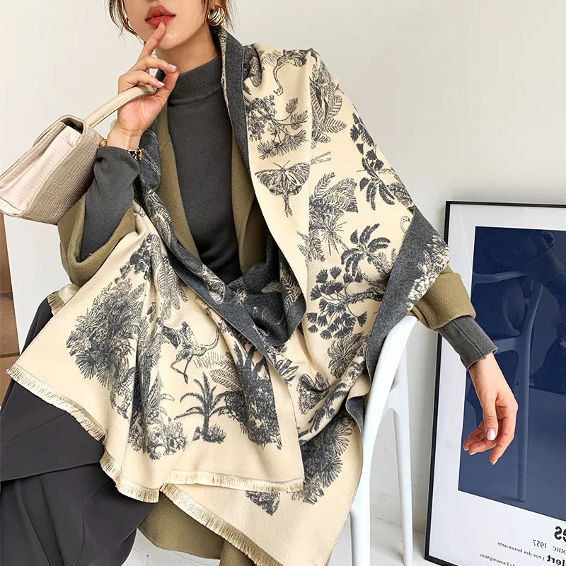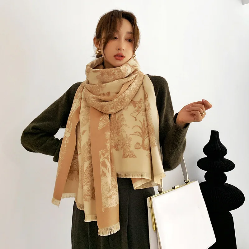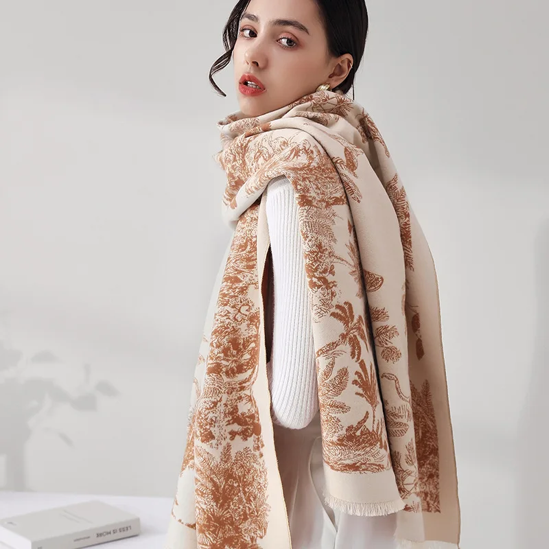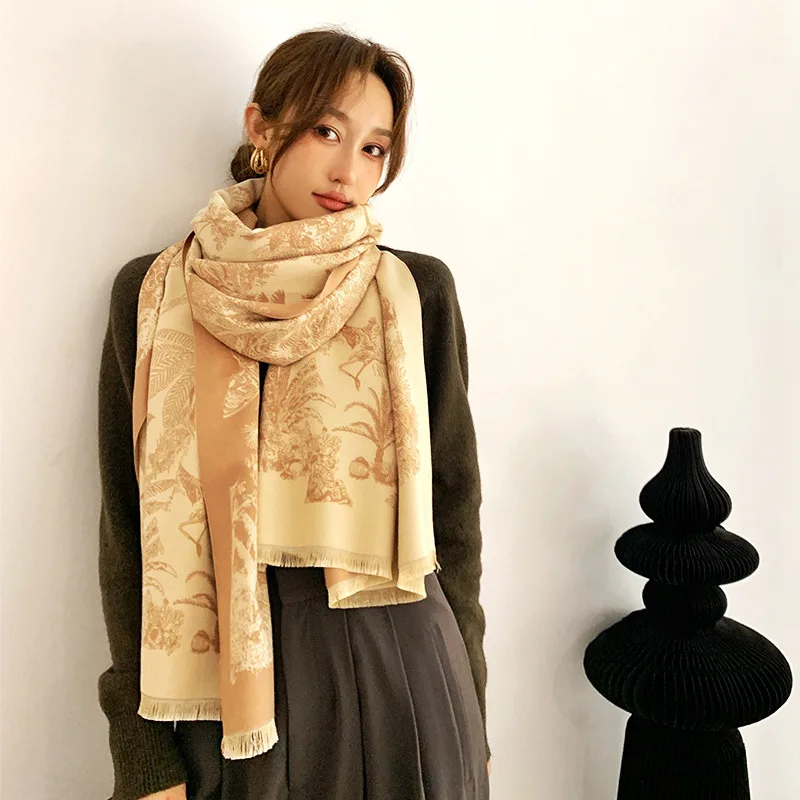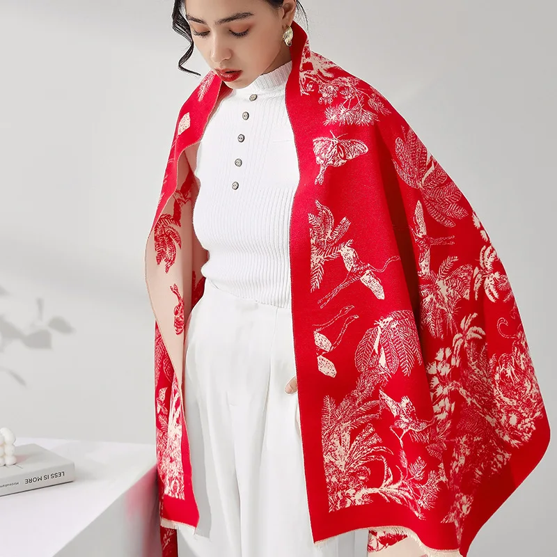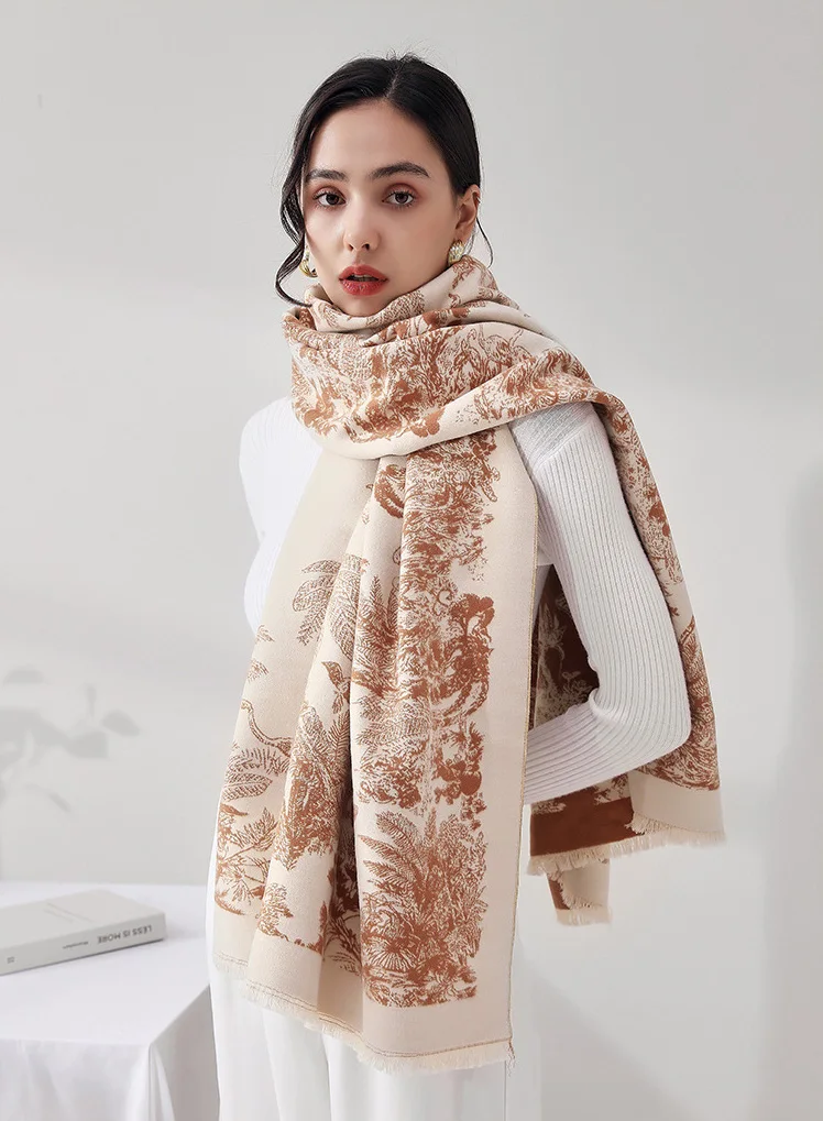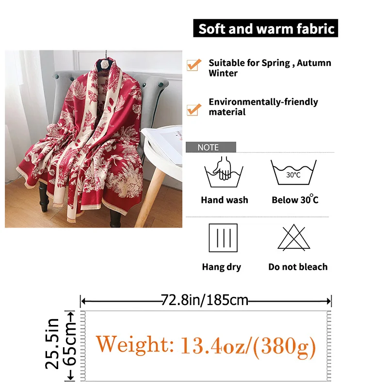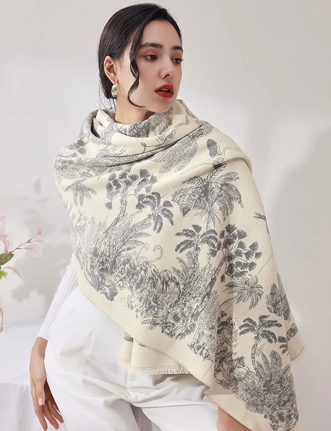 Luxury Cashmere Scarf Winter Women Flower Bird Pattern Shawls Warm Blanket Wraps Female Double Sided Thick Fashion Print Scarves