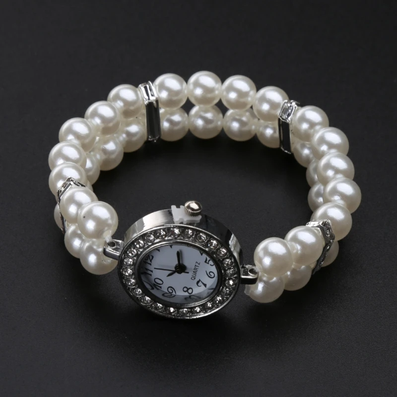 This watch is specially designed for women,which is luxury with exquisite design,simulated pearls and for rhinestone.