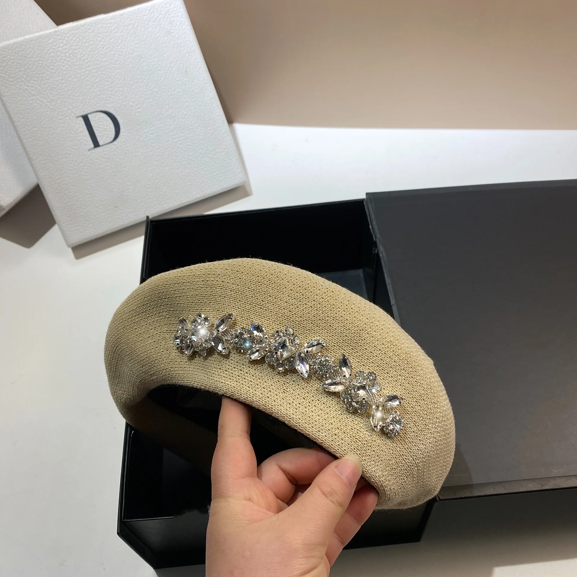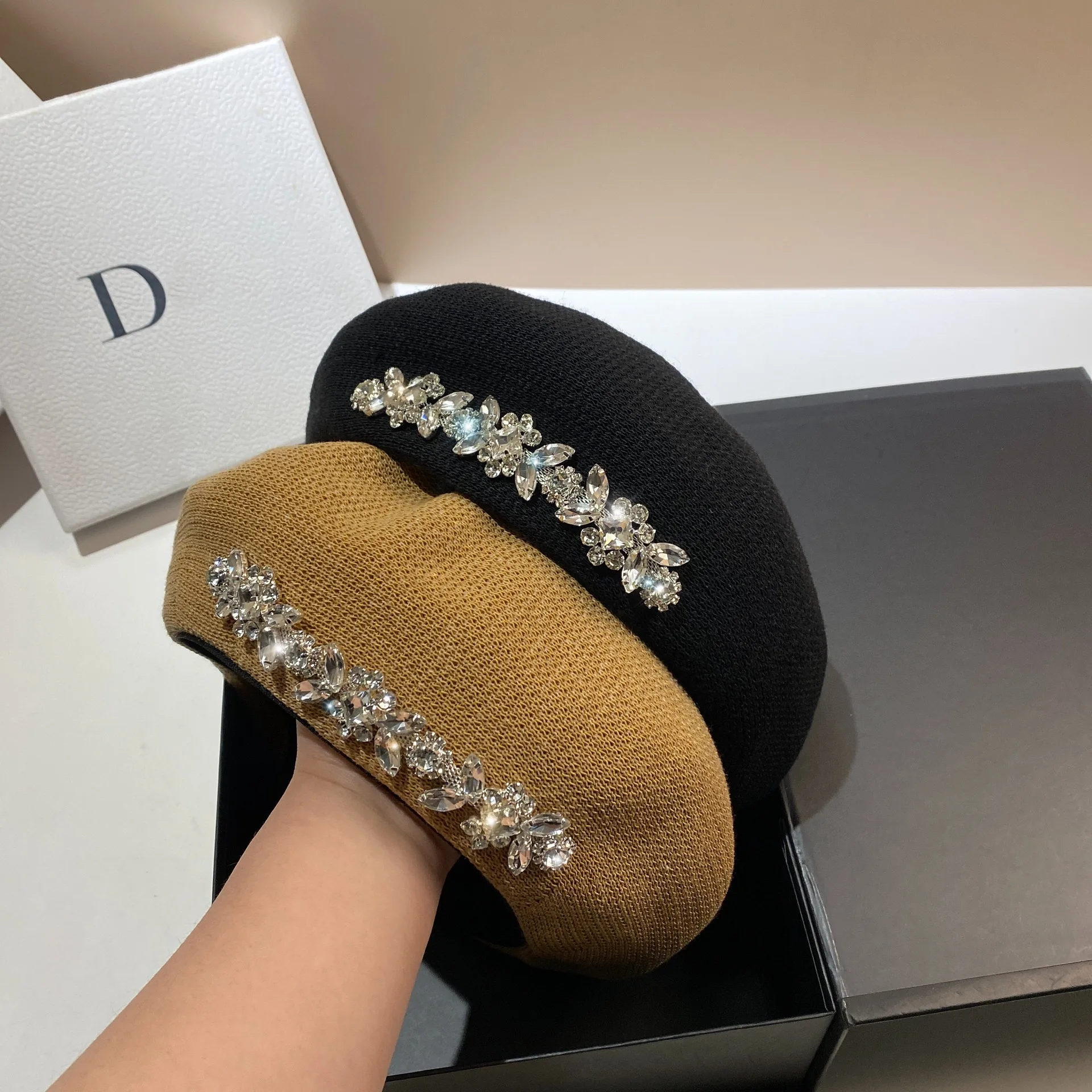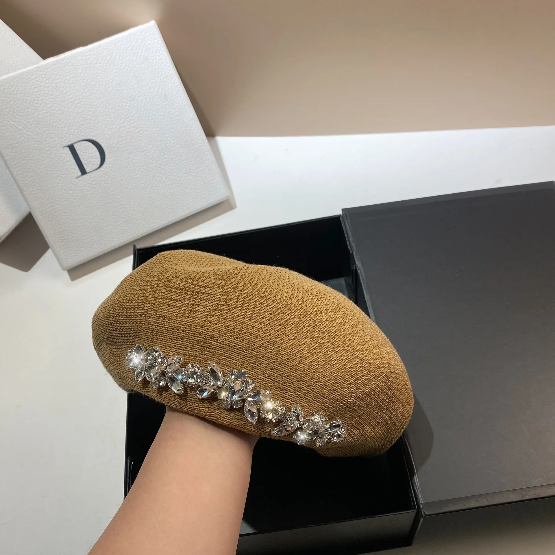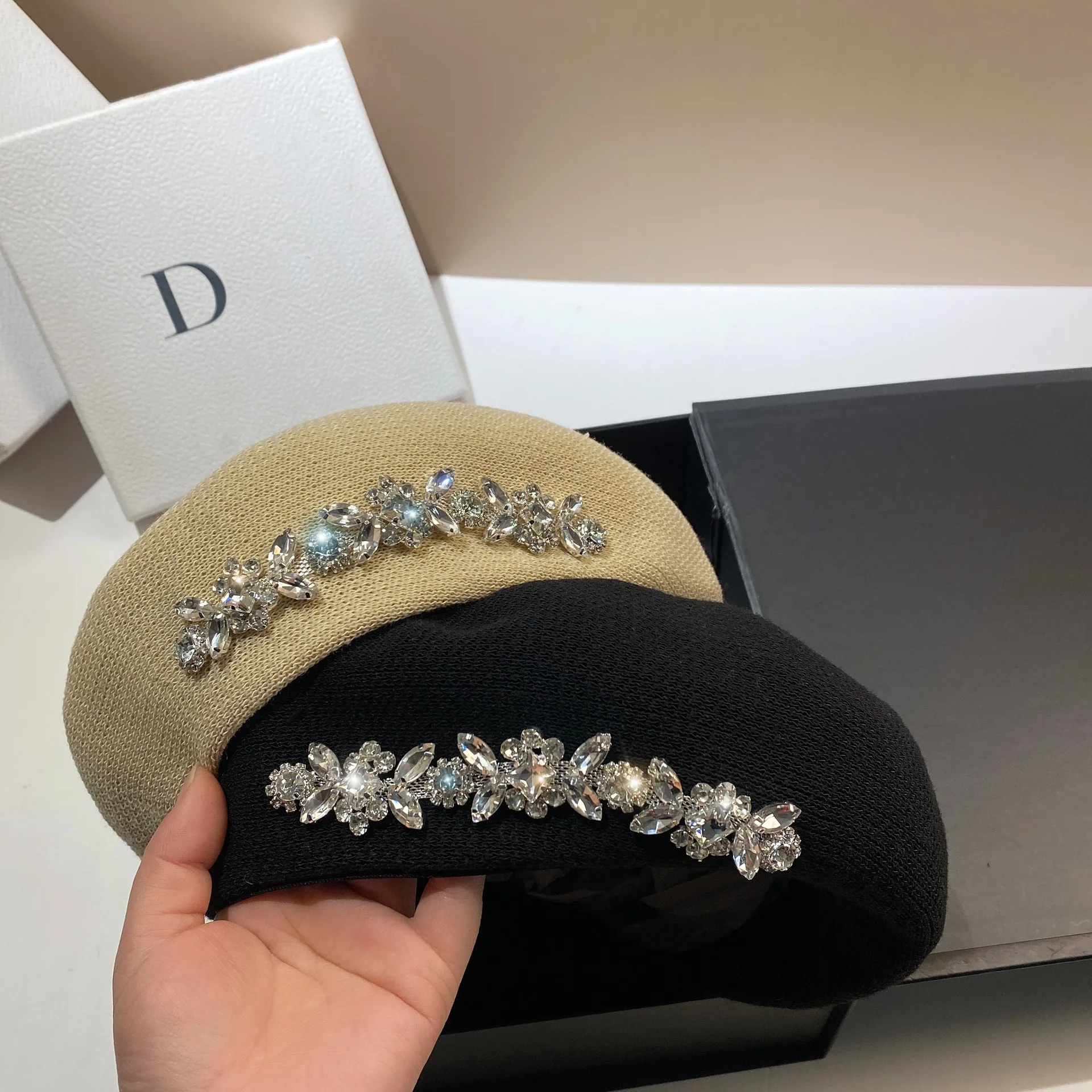 Luxury Rhinestone Beret Hat for Chic Sun Protection