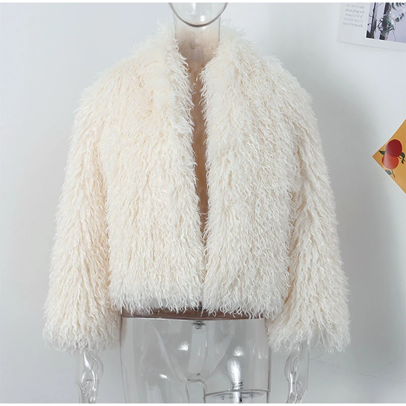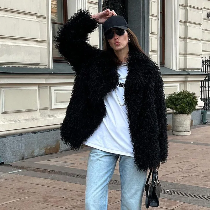 Luxury Women Faux Fur Coat Loose Lapel Zipper Full Sleeve Furry Jacket Female 2024 Autumn Winter Lady Thicken Street Overcoat