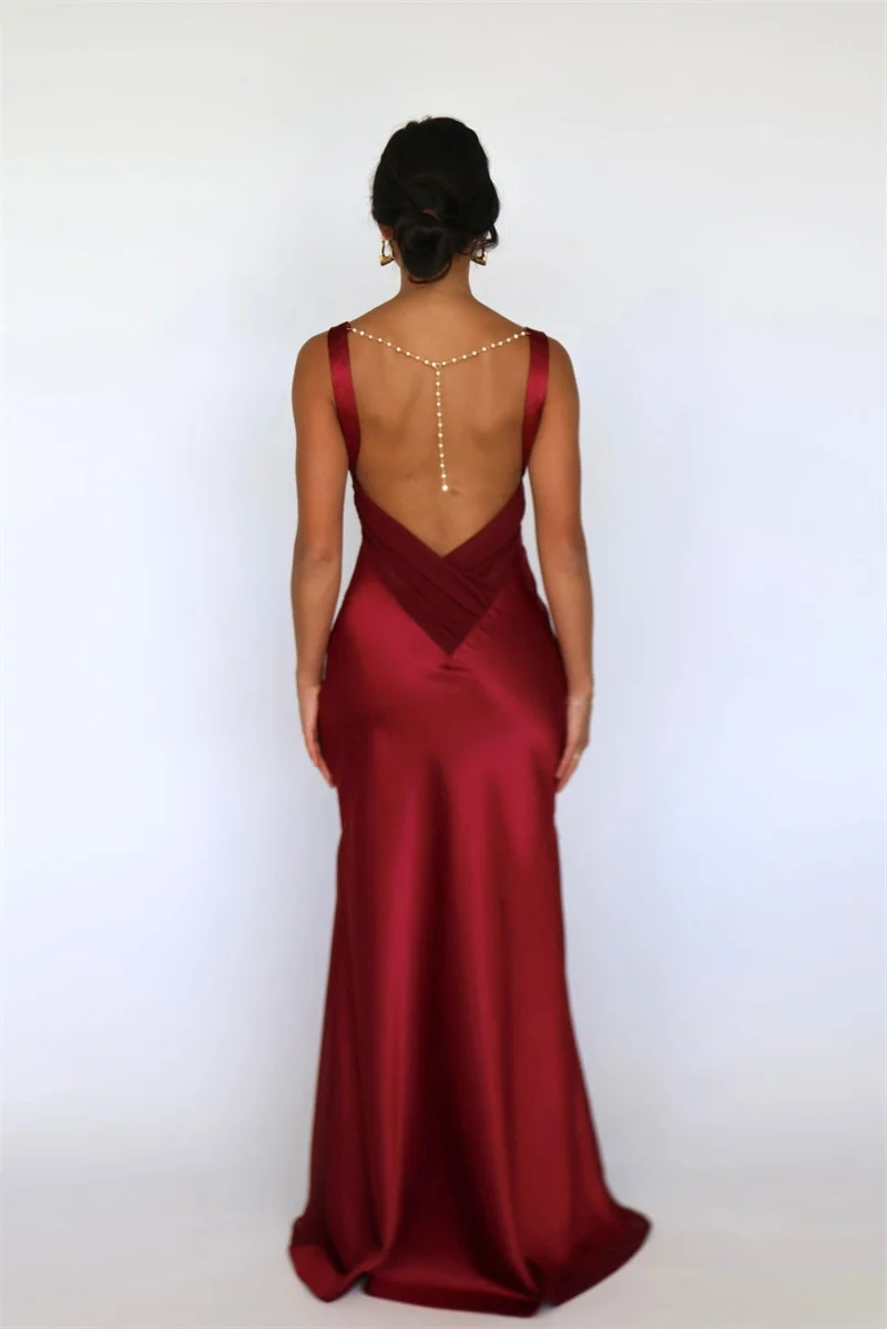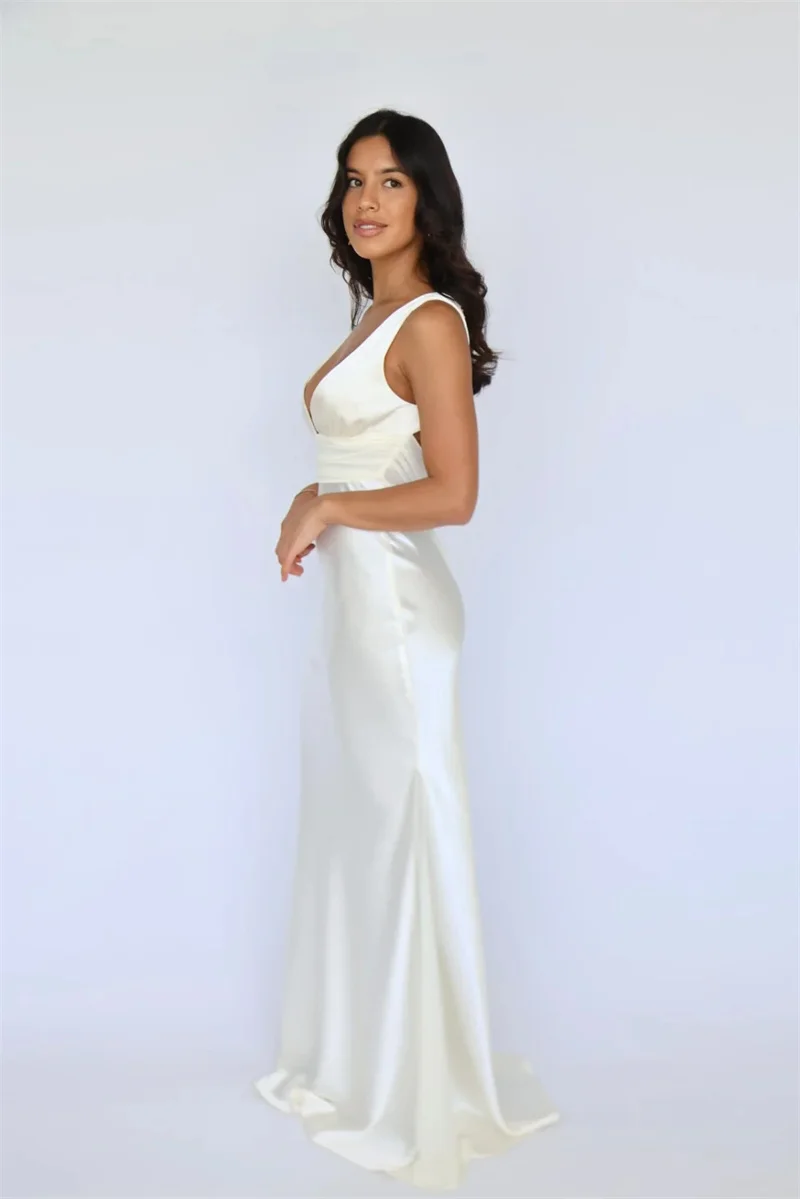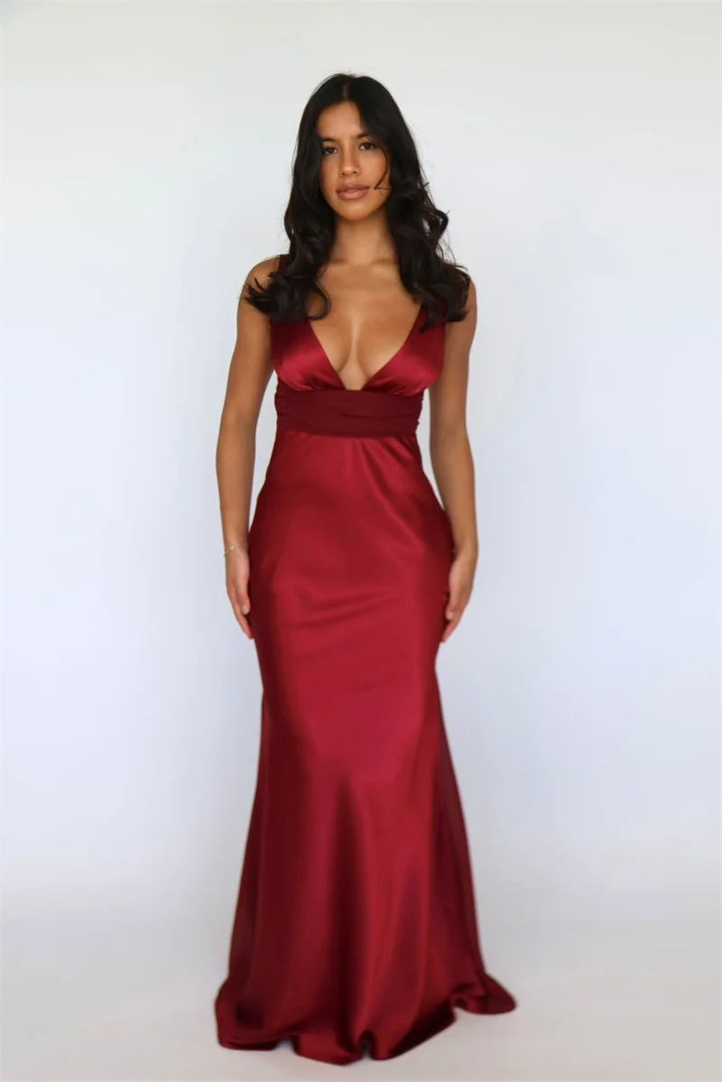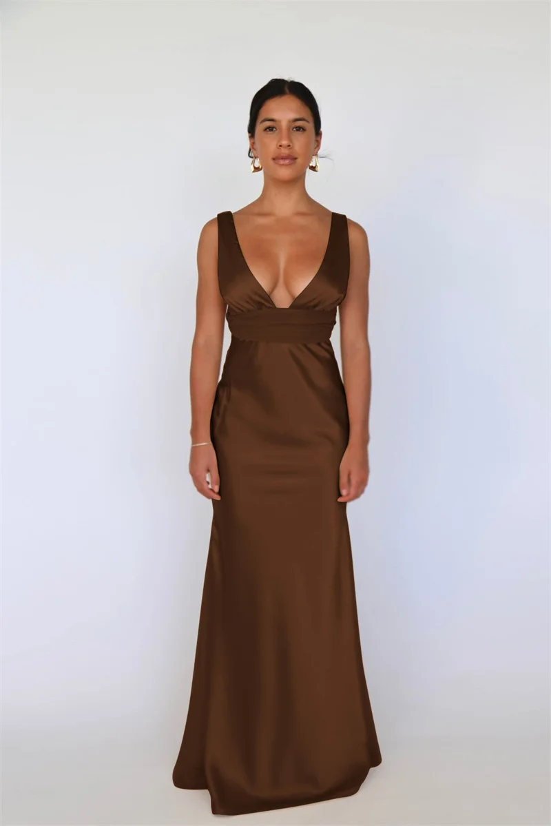 Mozision Satin V Neck Backless Sexy Maxi Dress Women Gown Elegant Sleeveless High Waist Club Party Evening Long Tank Dresses