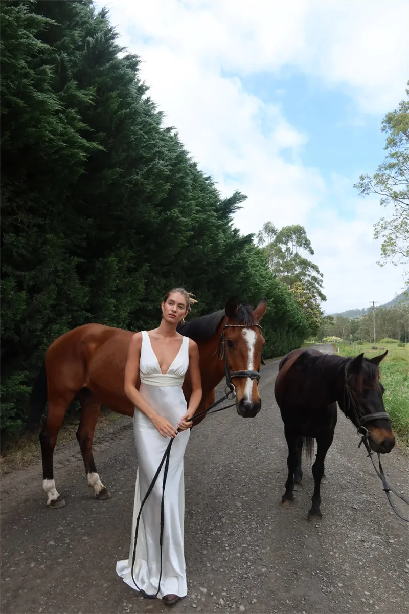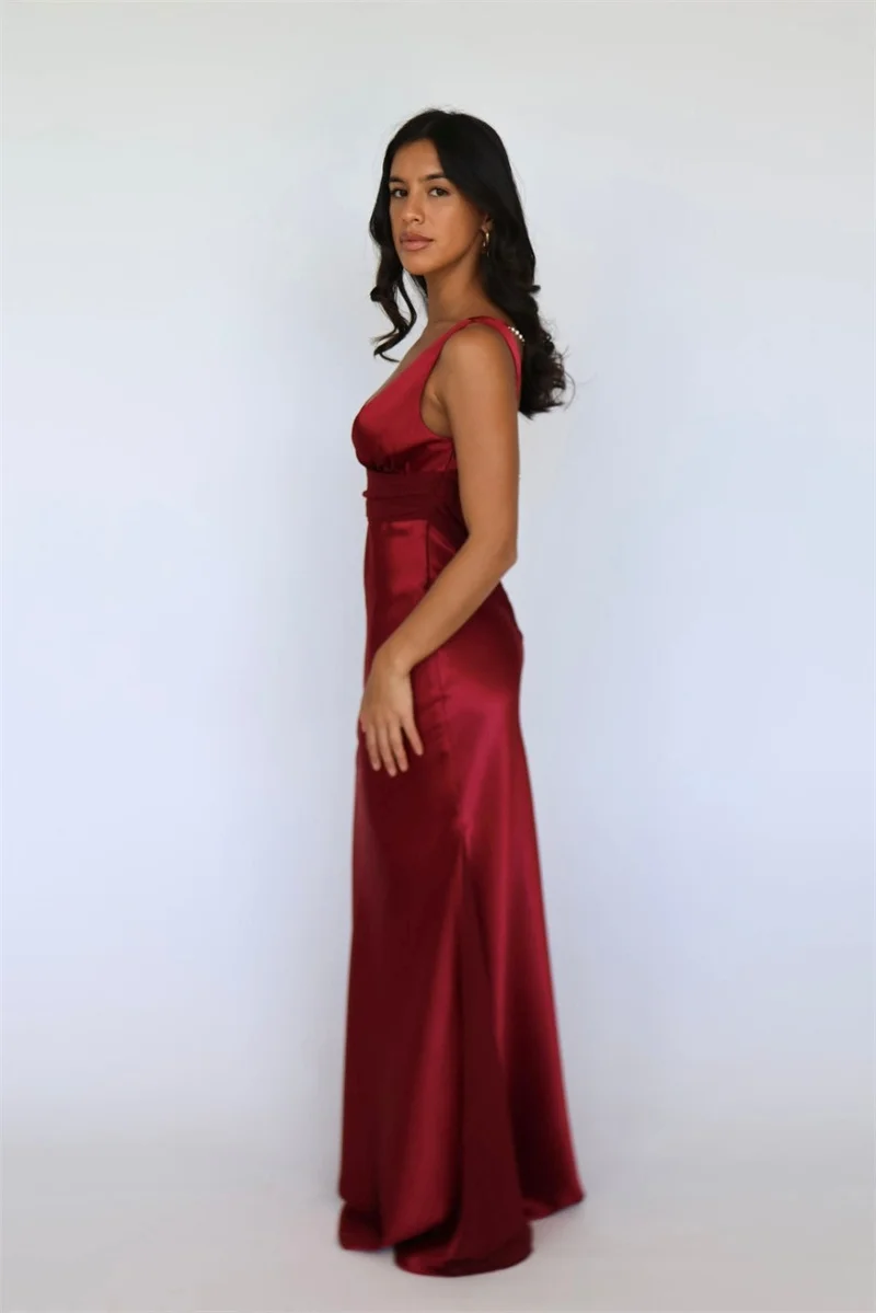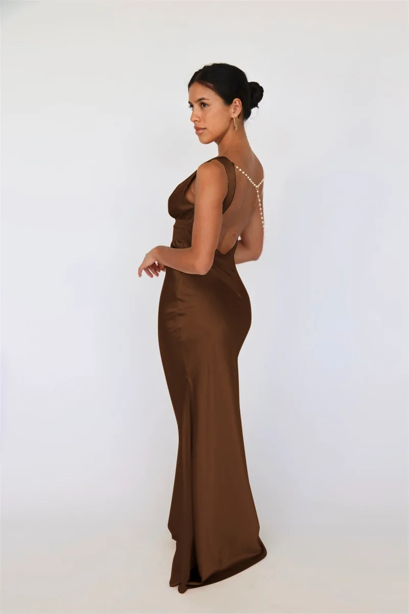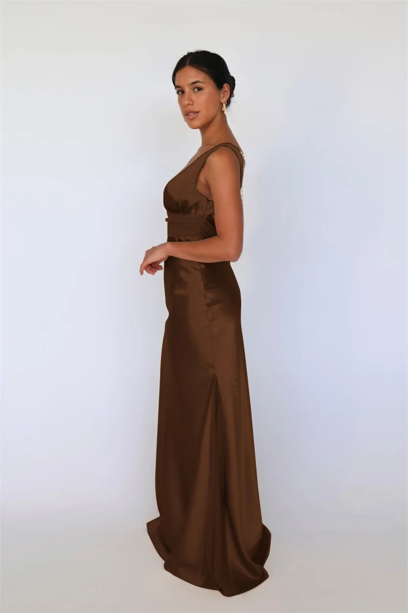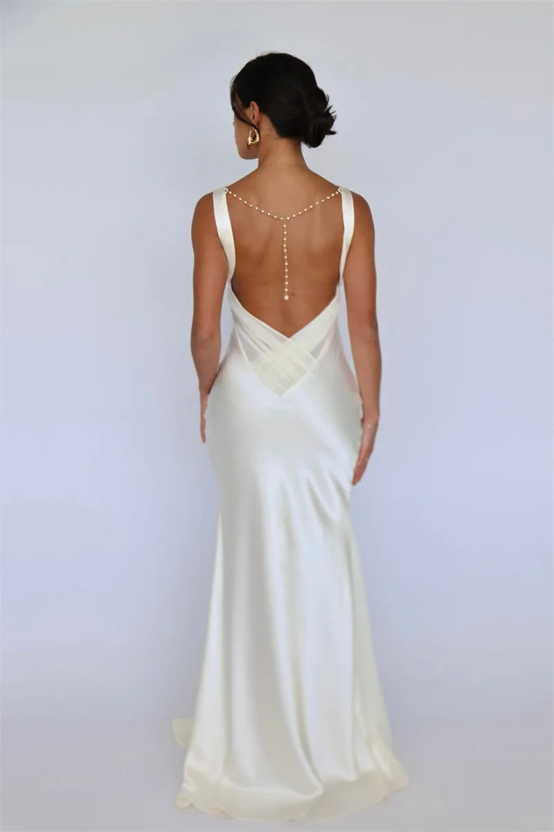 Mozision Satin V Neck Backless Sexy Maxi Dress Women Gown Elegant Sleeveless High Waist Club Party Evening Long Tank Dresses