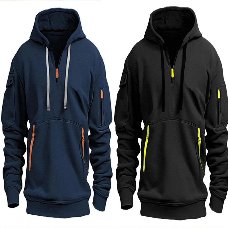 New Warm and Unique Solid Color Pocket Autumn/Winter Coat Zipper Autumn Sweater Hat Men's Clothing Women's Hooded Zipper Top