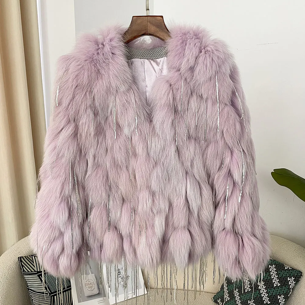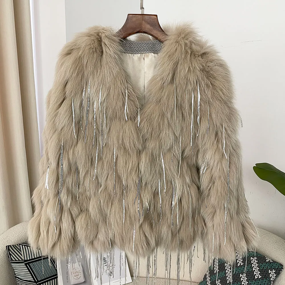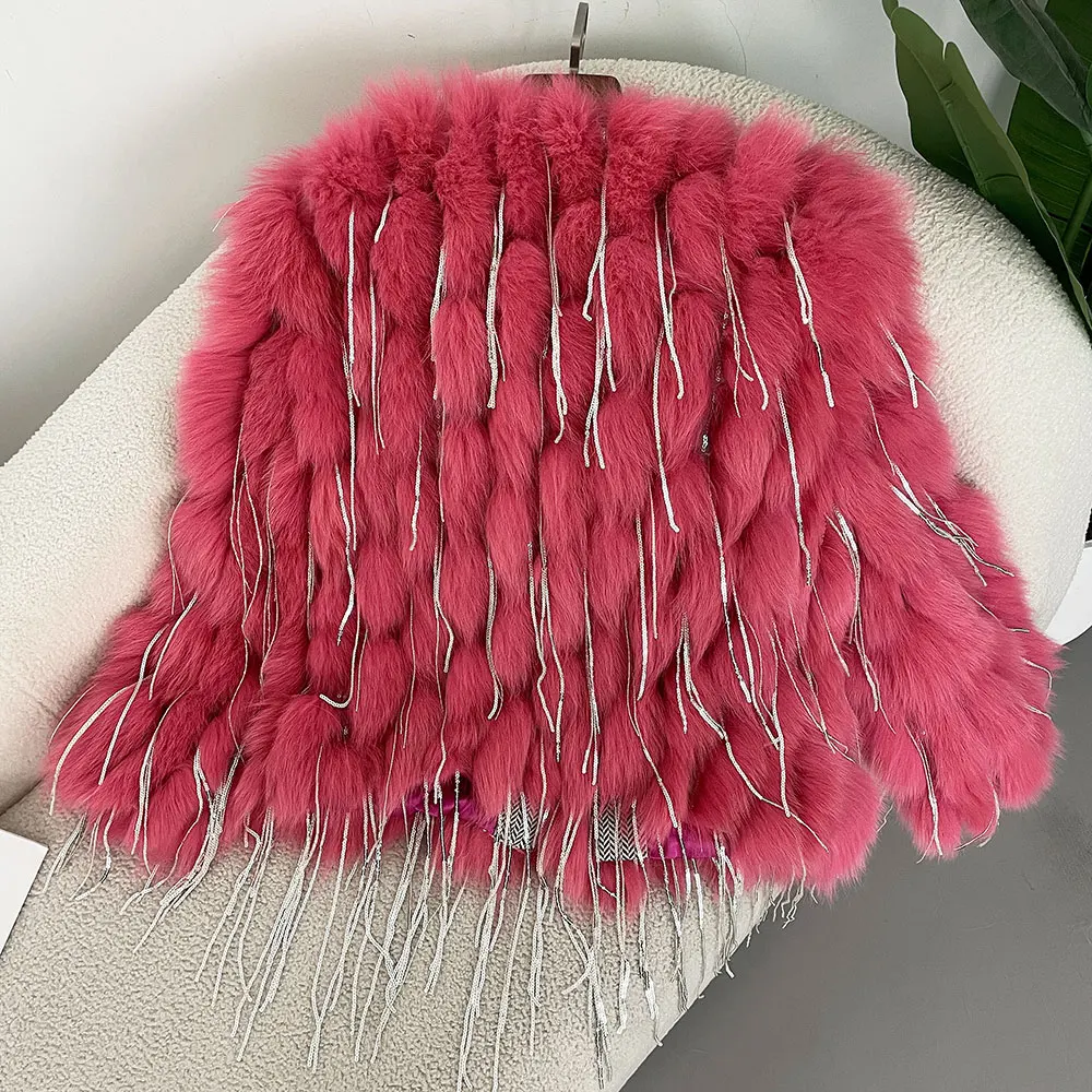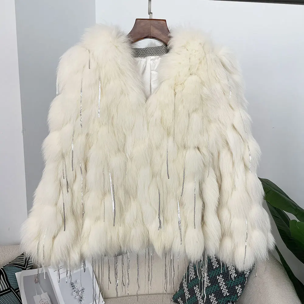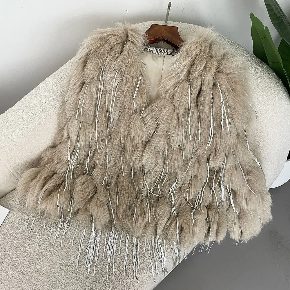 OFTBUY Autumn Winter Women Coat Real Natural Mink Fur V-neck Tassels Jacket Short Thick Warm Casual New Overwears Streetwears