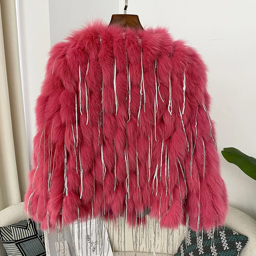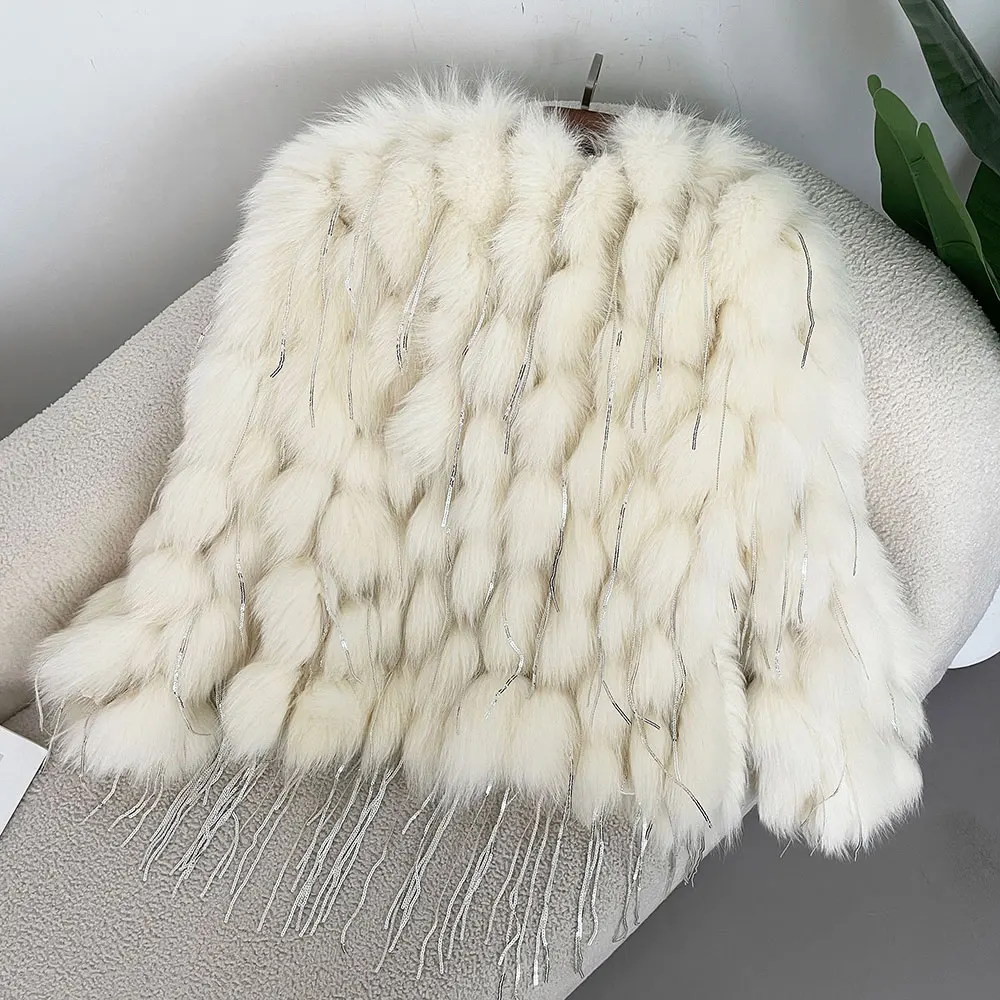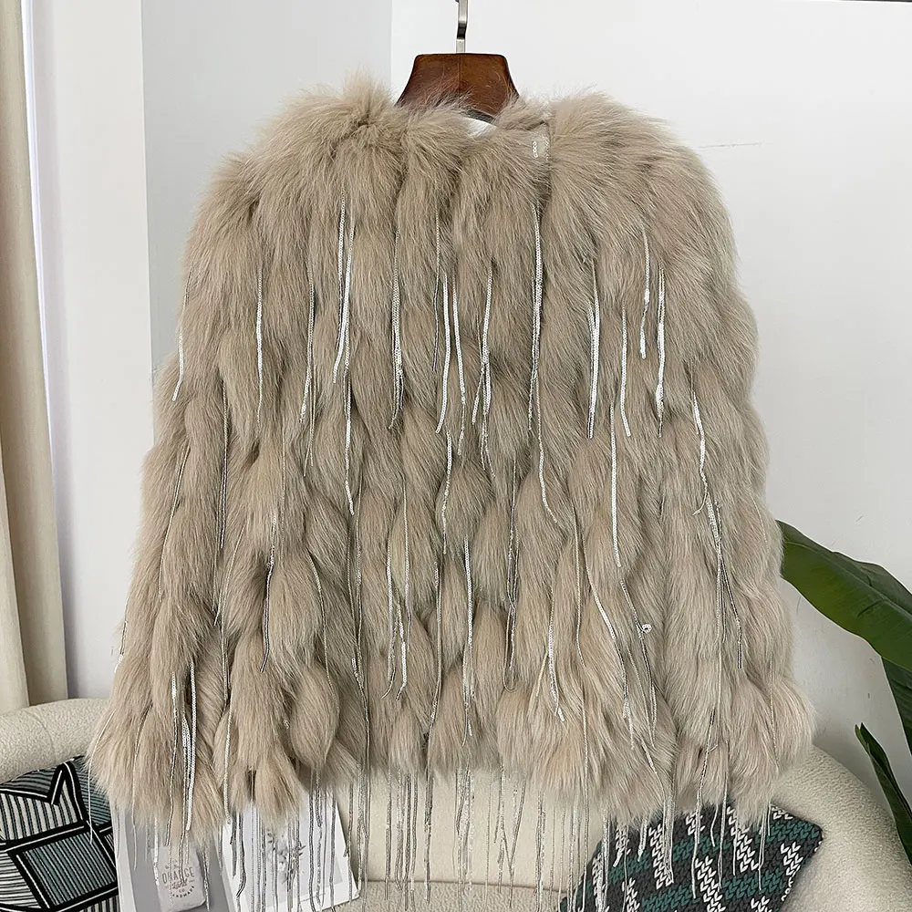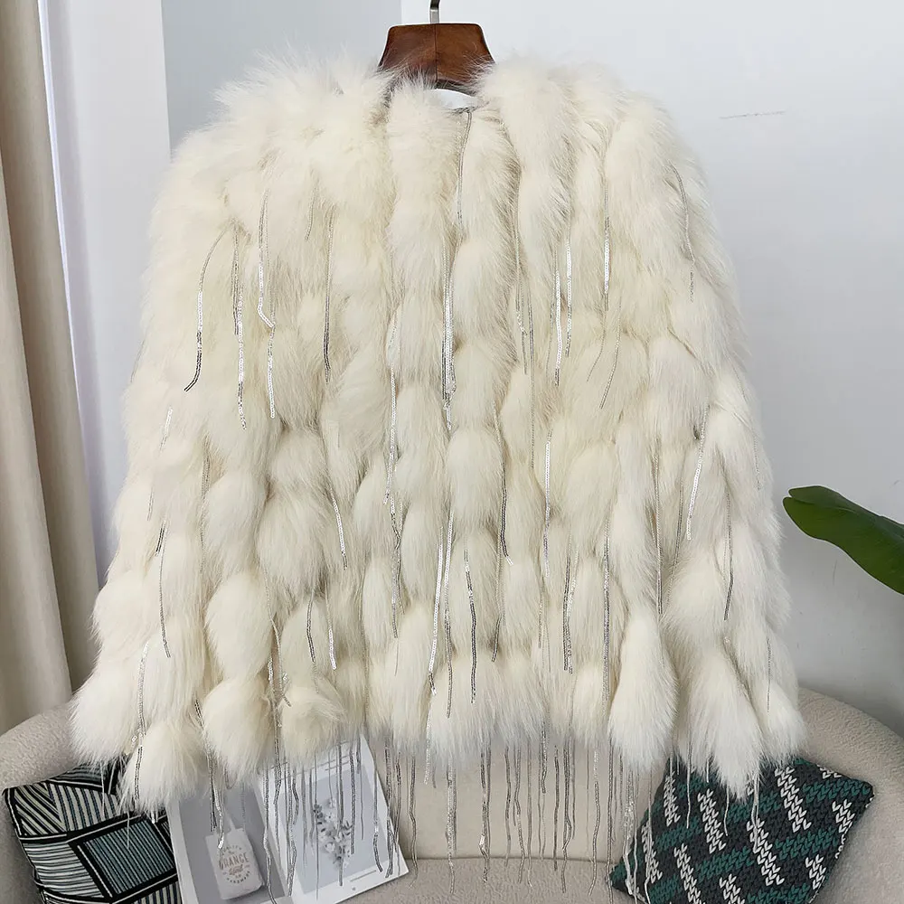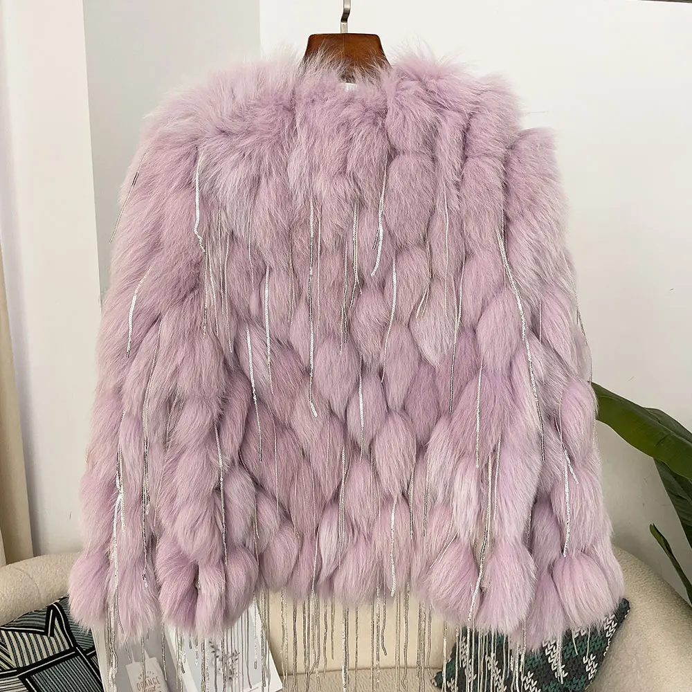 OFTBUY Autumn Winter Women Coat Real Natural Mink Fur V-neck Tassels Jacket Short Thick Warm Casual New Overwears Streetwears