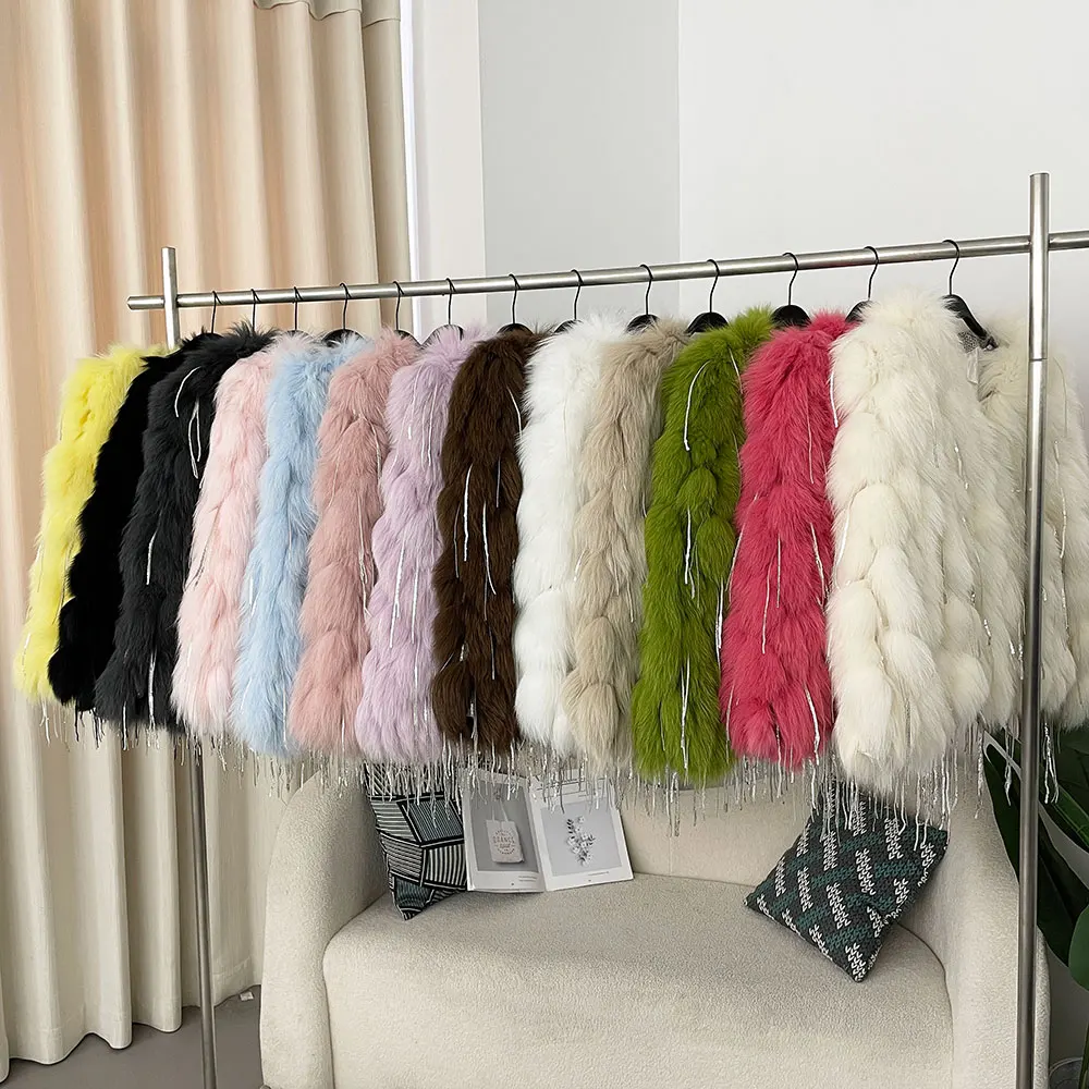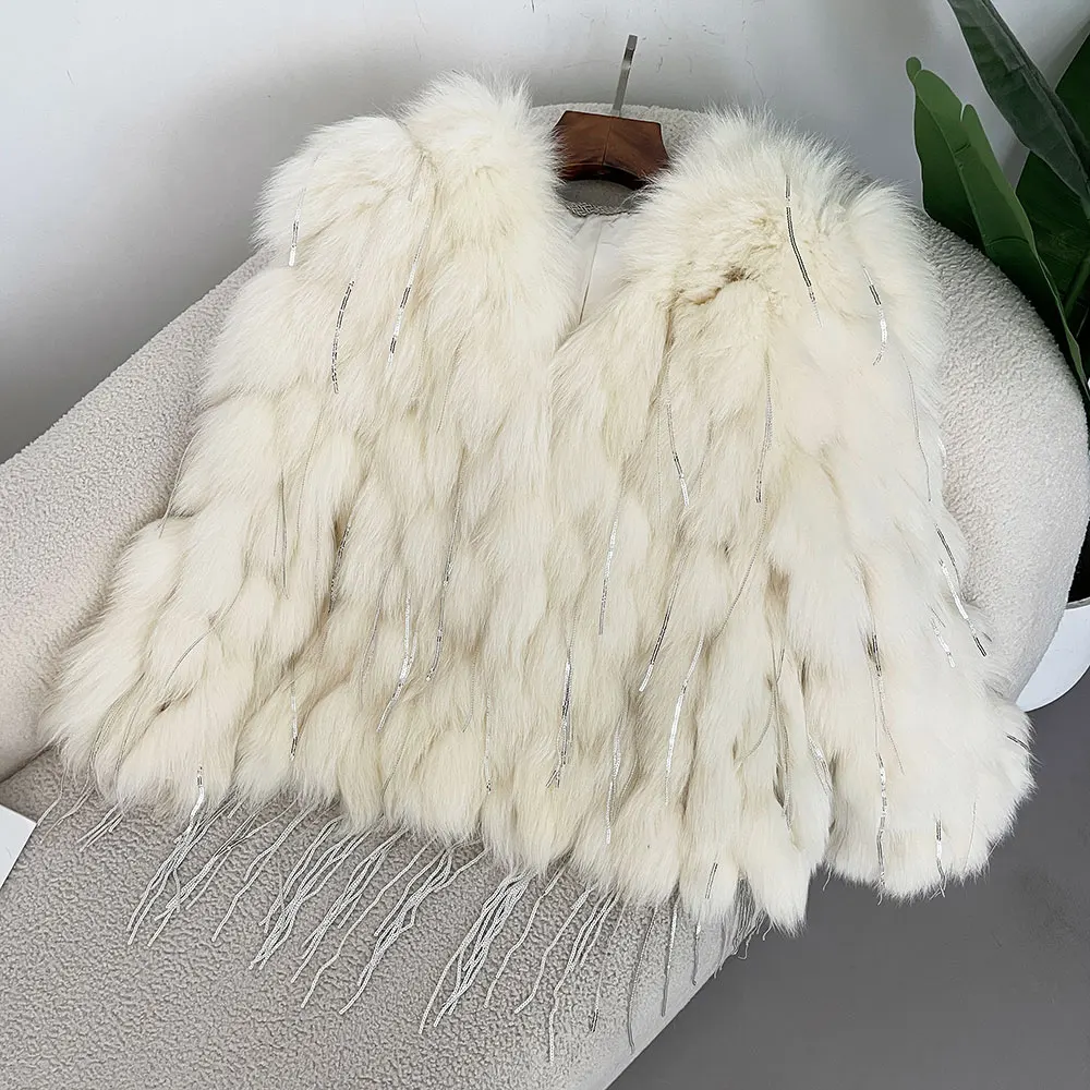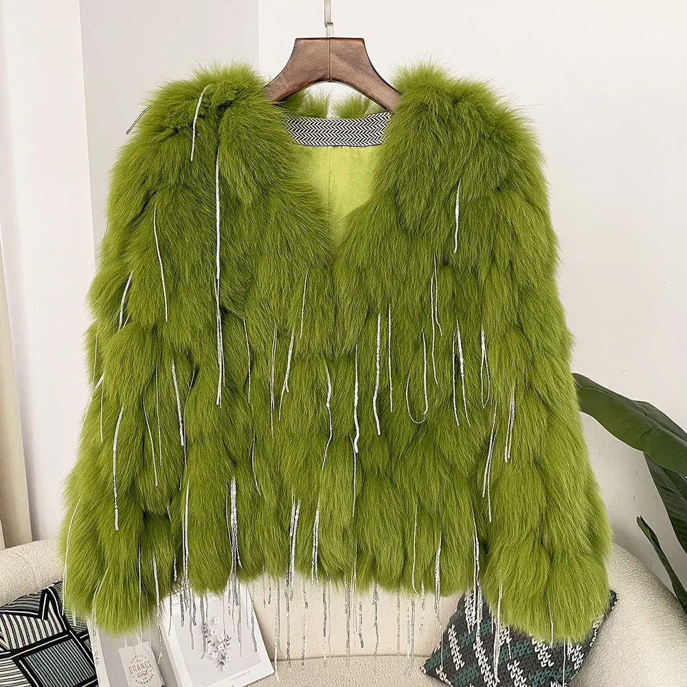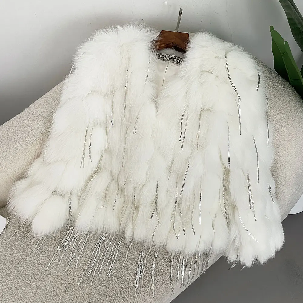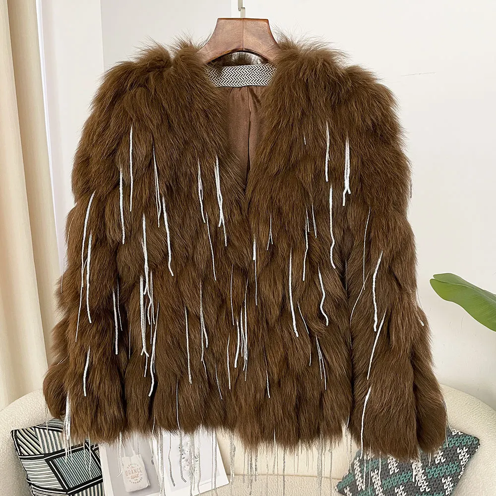 OFTBUY Autumn Winter Women Coat Real Natural Mink Fur V-neck Tassels Jacket Short Thick Warm Casual New Overwears Streetwears