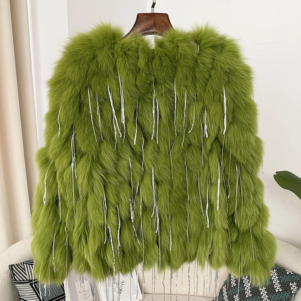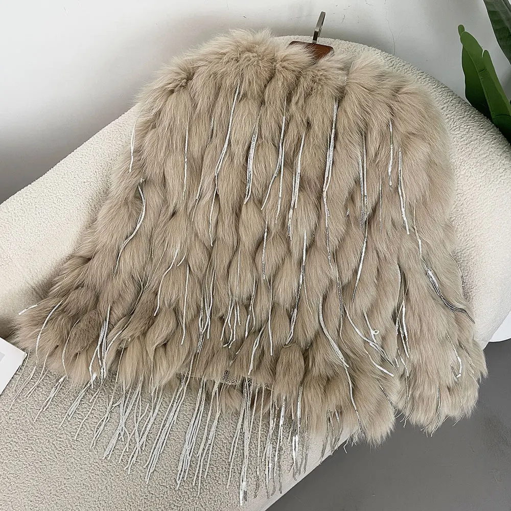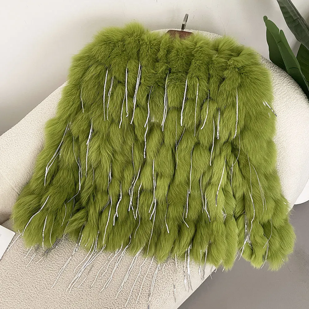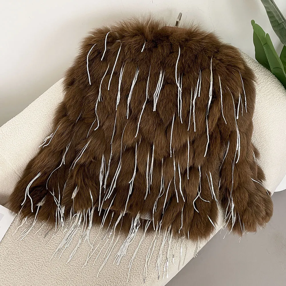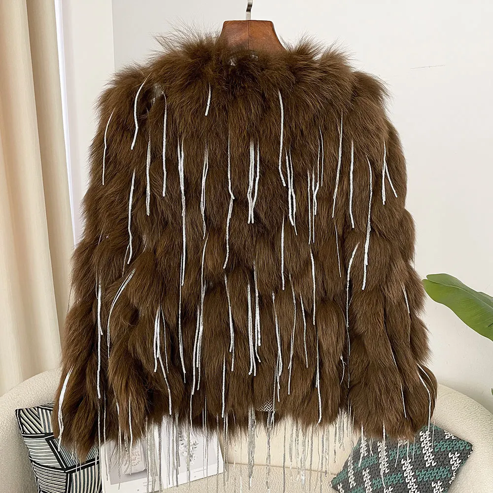 OFTBUY Autumn Winter Women Coat Real Natural Mink Fur V-neck Tassels Jacket Short Thick Warm Casual New Overwears Streetwears