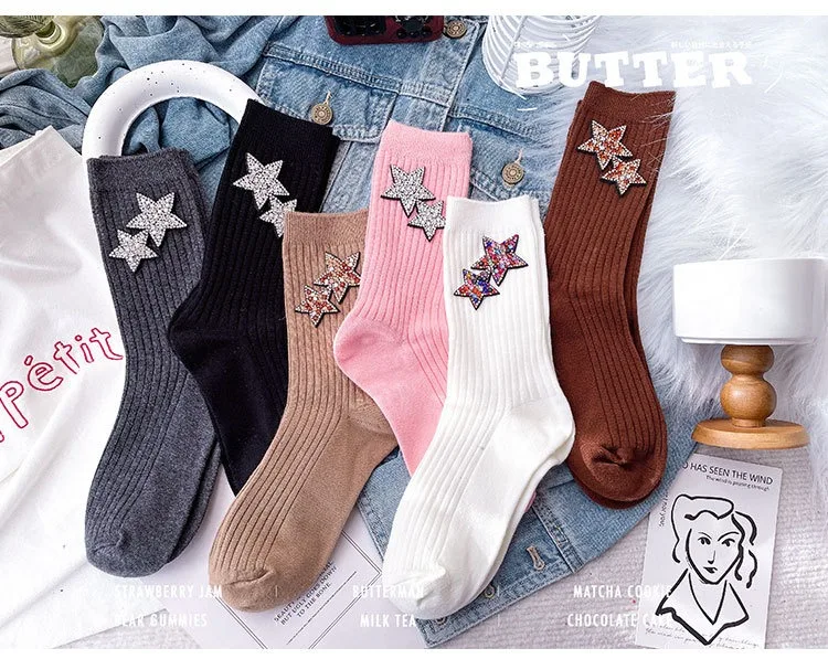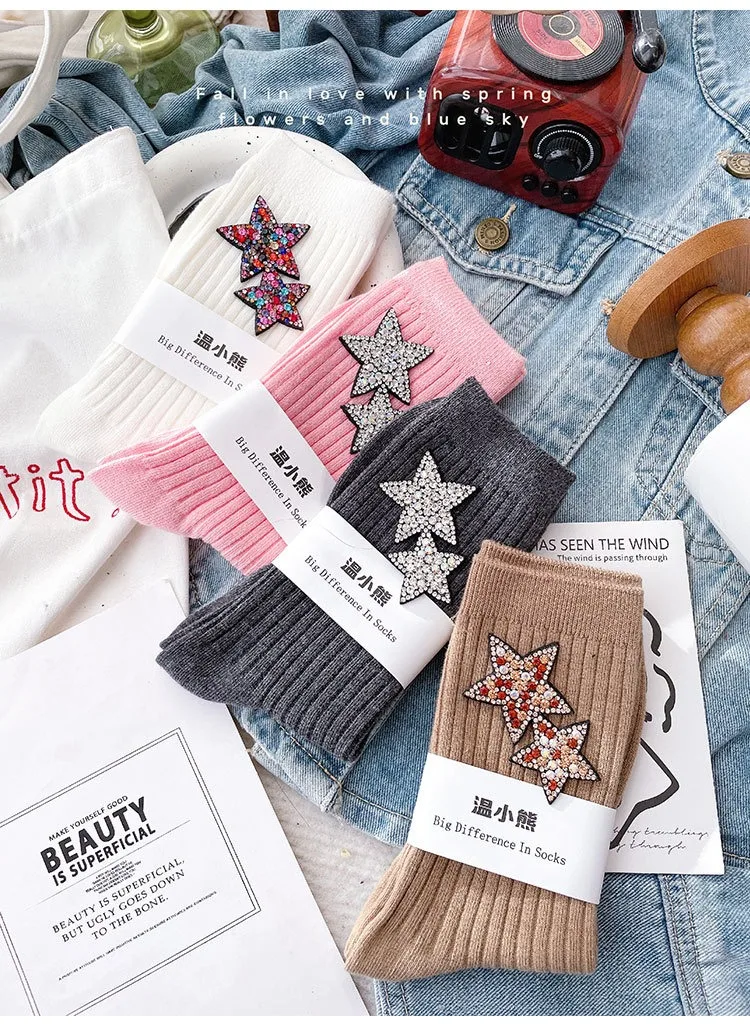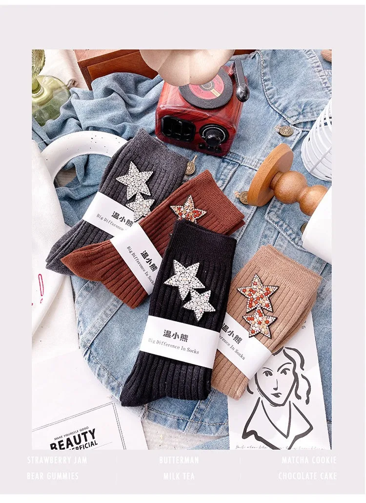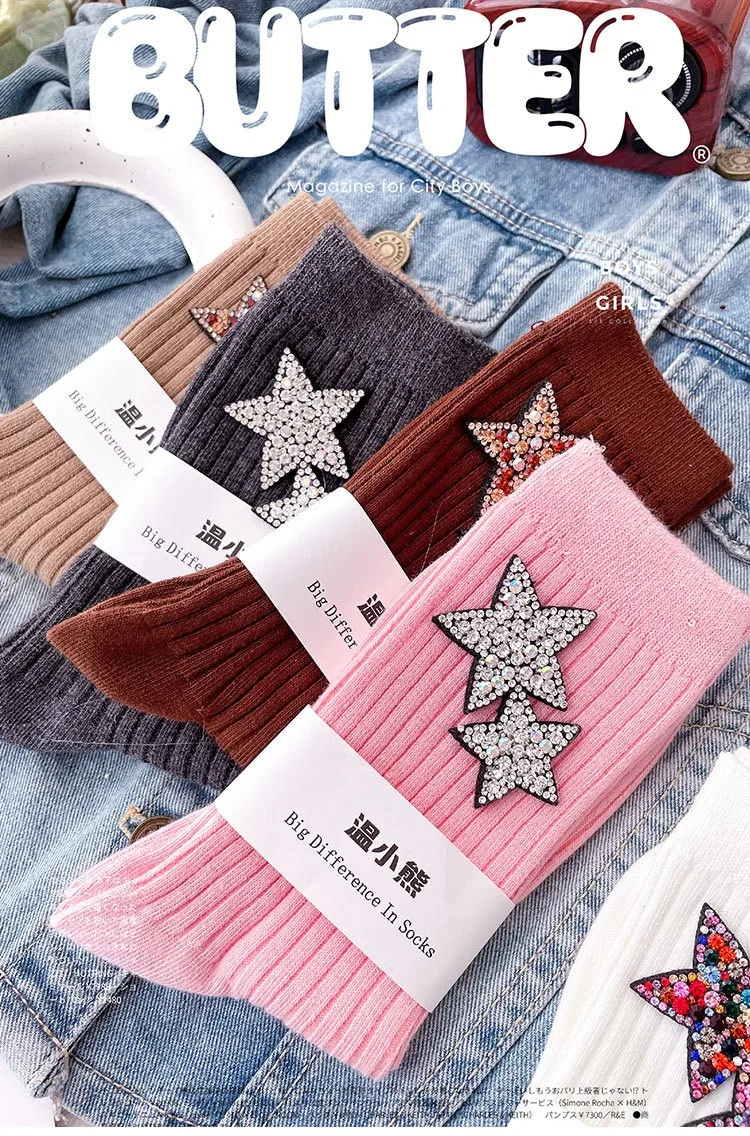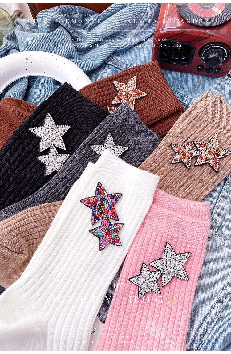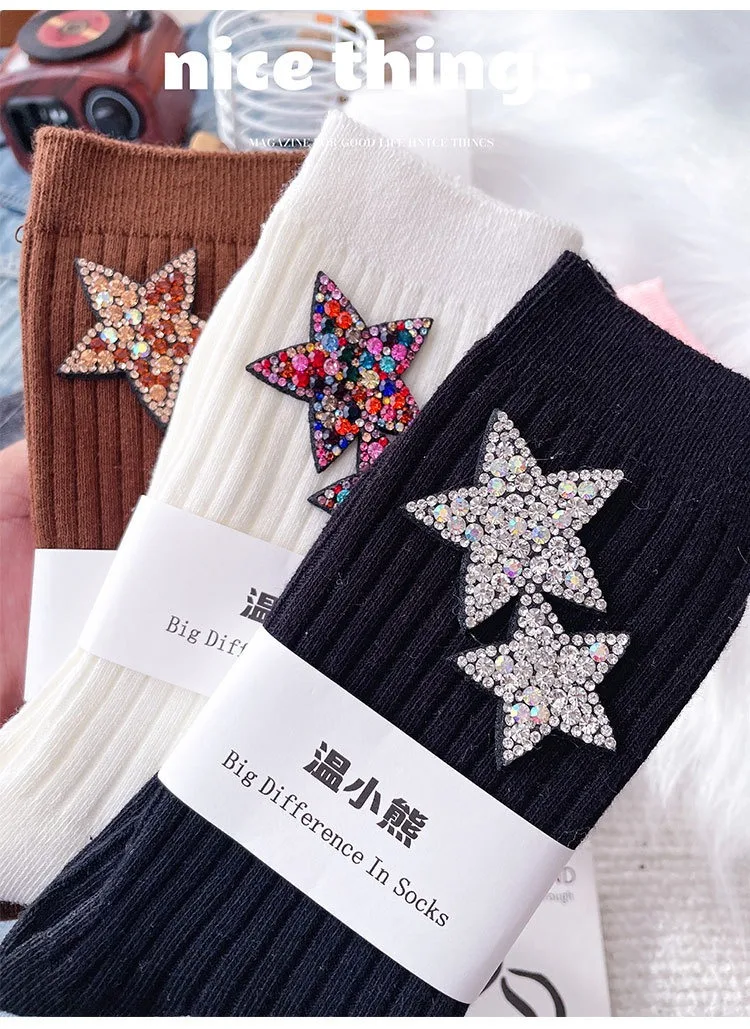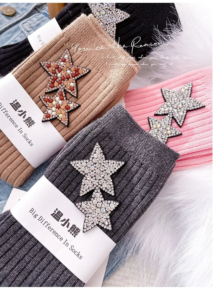 ✨ What is it - Elevate your holiday fashion with our Rhinestone Sparkling Women's Christmas Socks! Featuring a dazzling kawaii star design, these comfy socks are perfect for keeping your feet cozy and stylish during the festive season.