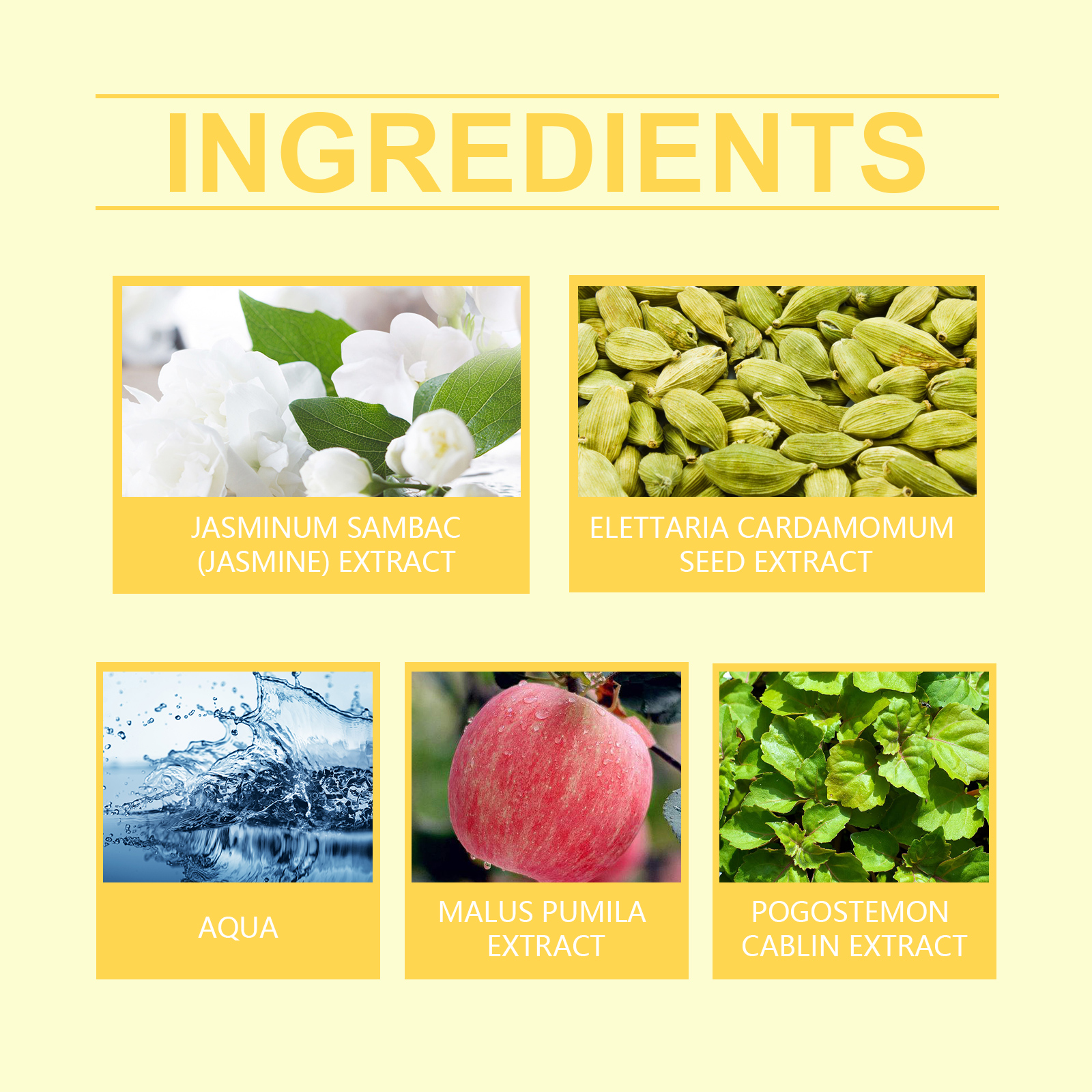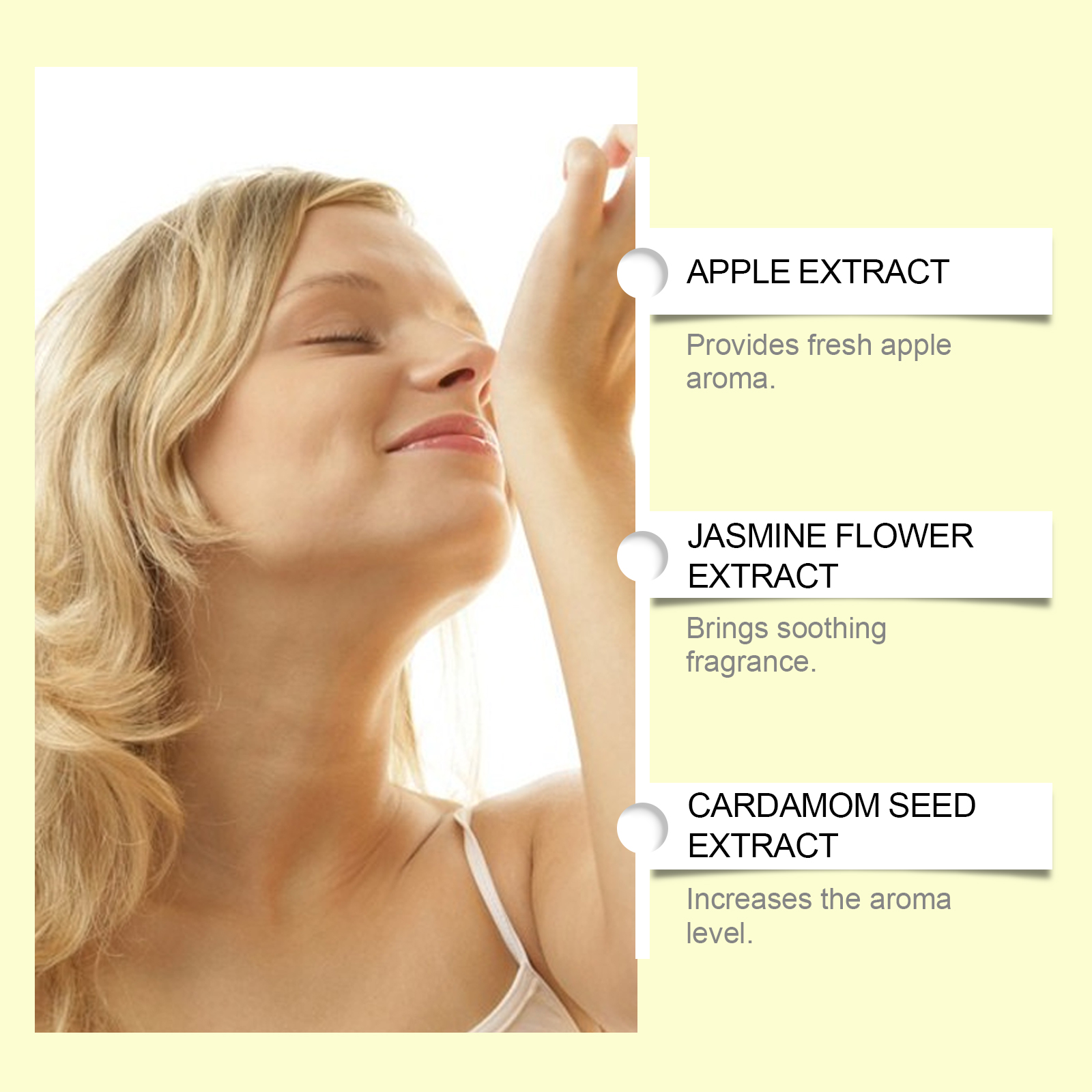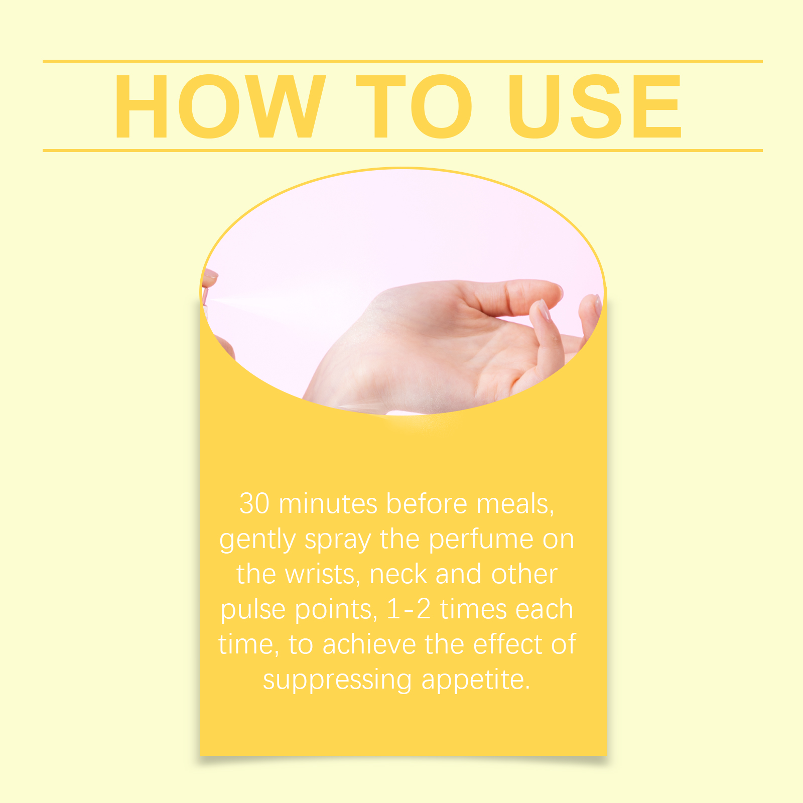 Our apple perfume contains cardamom seed extract and patchouli extract. It can effectively help improve concentration. Relieve stress, boost mood and bring a pleasant experience. Its use is very simple: 30 minutes before the meal, gently spray the perfume on the wrist, neck and other pulse points, 1-2 times each time, to achieve the effect of appetite suppression. And can bring a refreshing feeling. Brings comfort and relieves tension and anxiety.