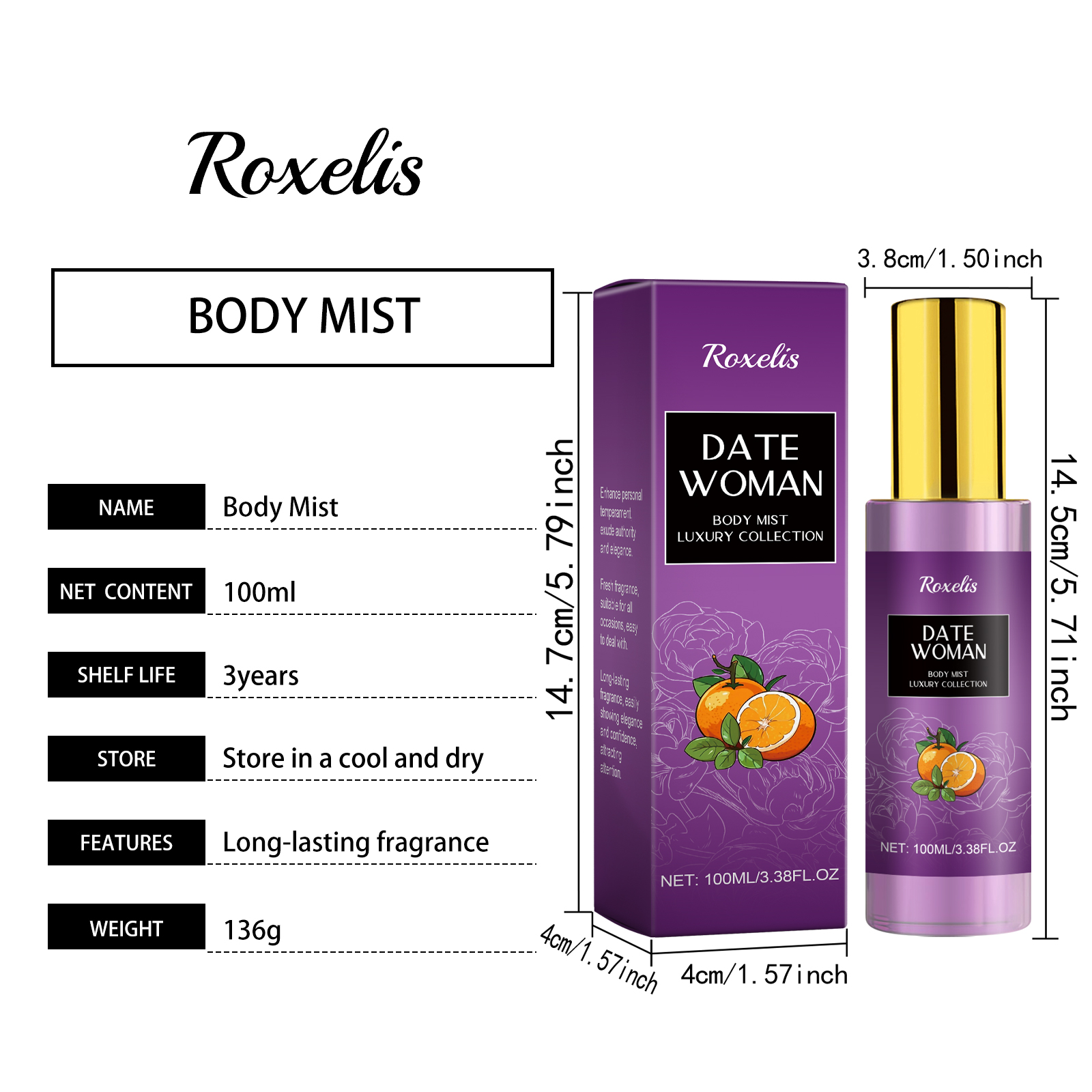 Roxelis Body Perfume Spray Lasting Fragrance Smoke Rain Garden Wood Rose Light Portable Niche Fragrance Fragrance