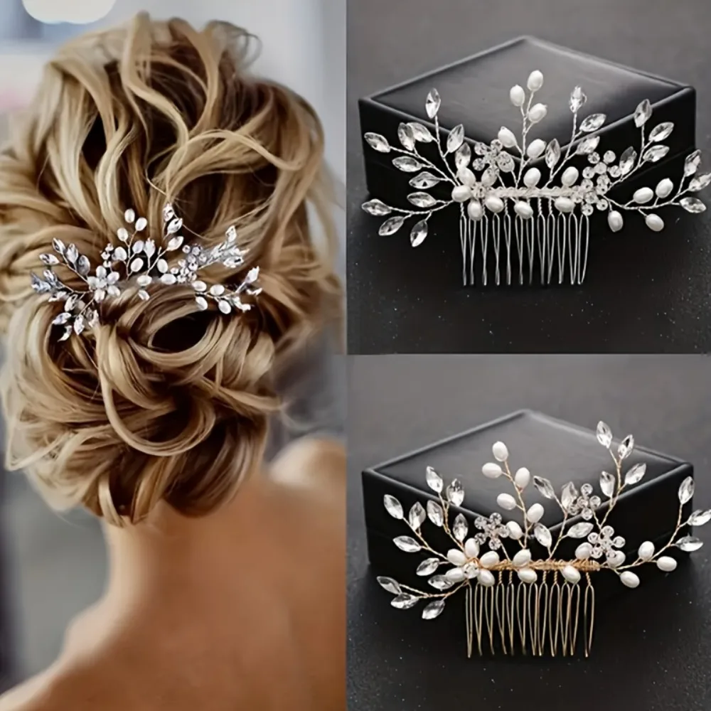 Elevate Your Bridal Look with Stunning Pearl Crystal Hair Clips Designed for brides and bridesmaids, our exquisite Faux Pearl Crystal Comb Clips feature beautiful U-shaped designs adorned with flowers and rhinestones to add sophistication to your hairstyle on your special day. Why you'll love it: - Perfect blend of beauty and practicality for any occasion. - Durable and lightweight for all-day comfort. - Versatile design ideal for both bridal and bridesmaid hairstyles. - Premium craftsmanship ensures stunning photographs. - Timeless style complements any wedding theme or attire. Made with high-quality materials, these hair clips promise to transform your look effortlessly. Their stunning elegance is perfect for updos, half-up styles, or loose waves, making them a fabulous addition beyond just weddings. To use, simply slide the comb clips into your desired hairstyle for an instant touch of elegance. Perfect for the boho-chic bride or anyone wanting to impress. Don't miss out on these exclusive hair clips—add them to your cart now for a memorable day!