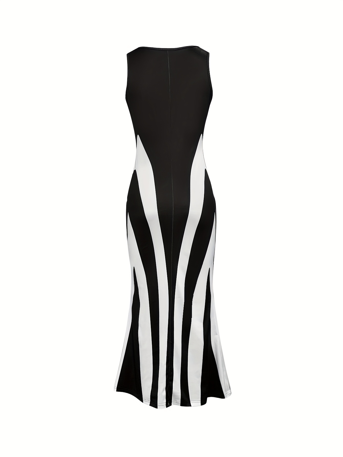 [Summer Dress] Lightweight Summer Dress, Women's Elegant Black & White Striped All-Over Print Sleeveless Dress | Round Neck Flared Hem, Machine Washable, Smooth Fabric, for Beach Vacations & Casual Outings, Vacation Attire