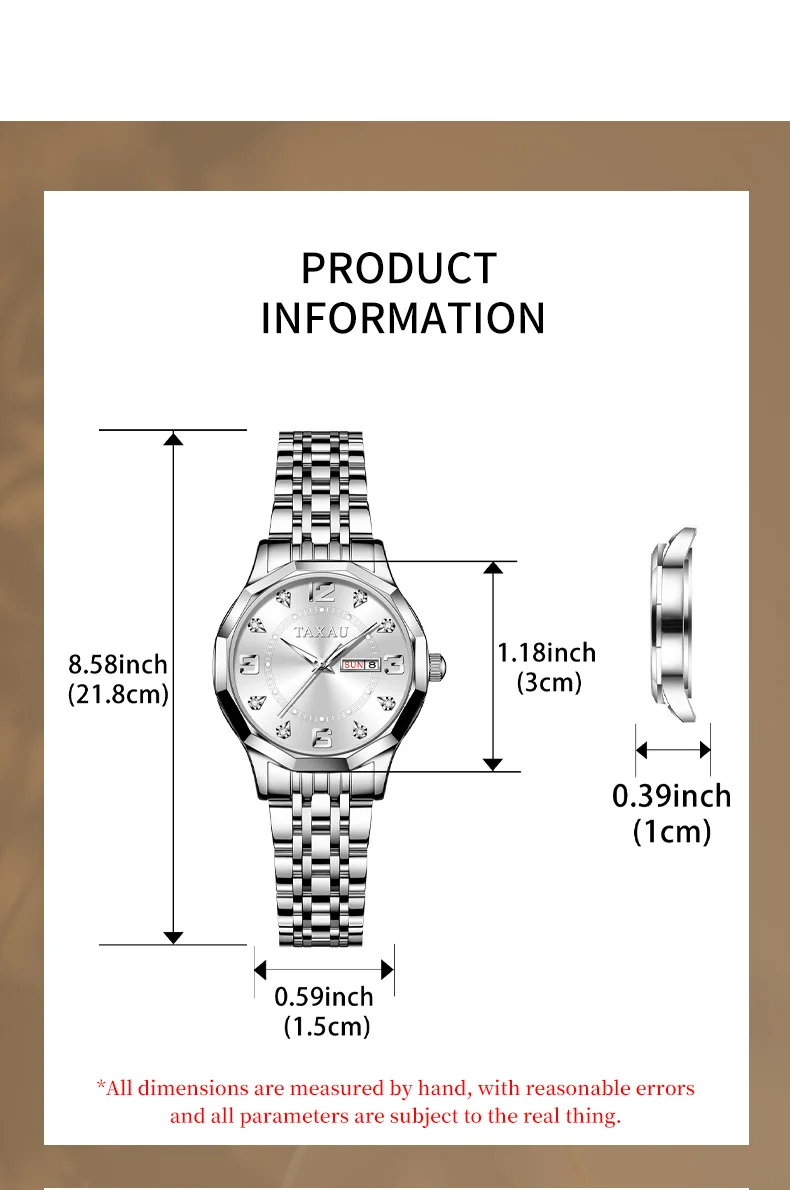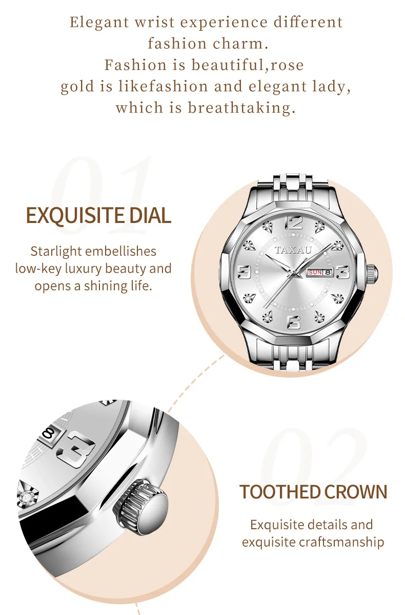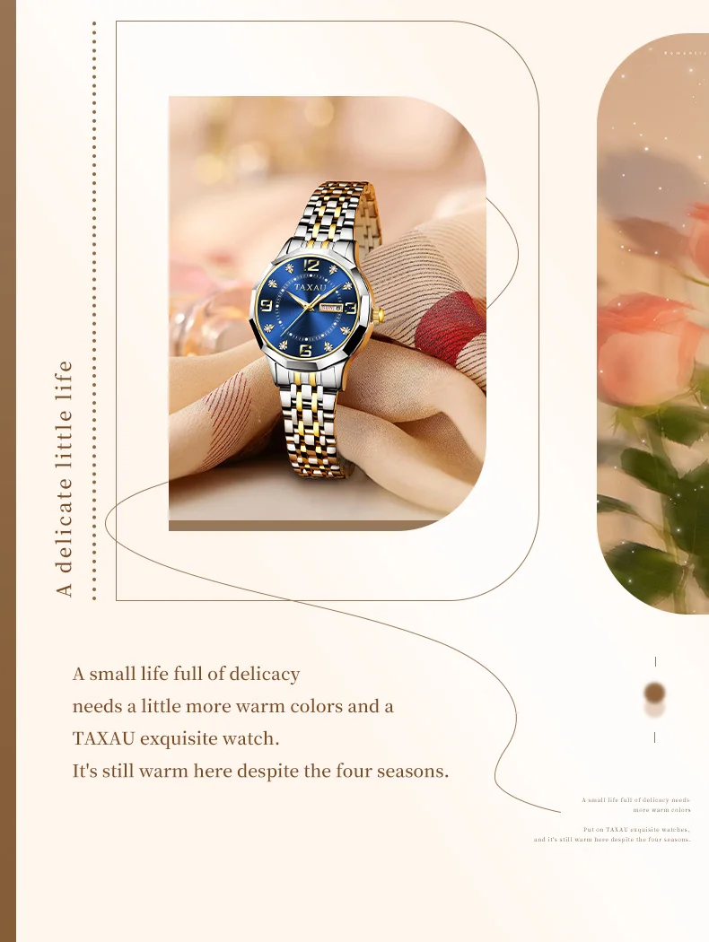 TAXAU Luxury Brand Women Wrist Watches Stainless Steel Elegant Waterproof Women's Quartz Watches High Quality Casual Woman Watch