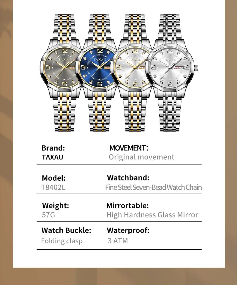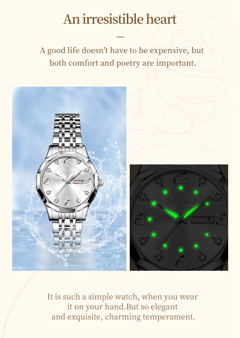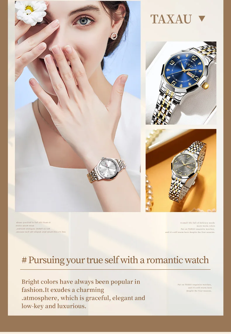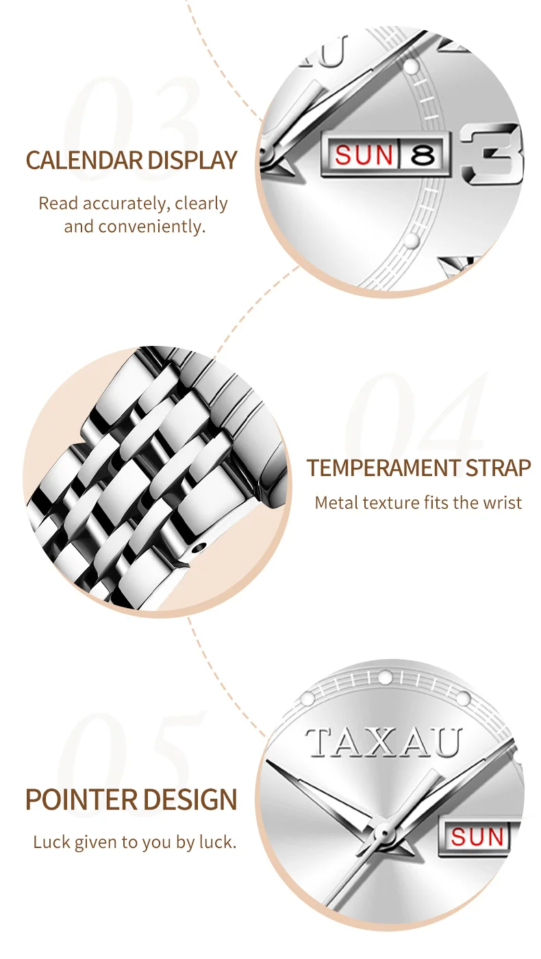 TAXAU Luxury Brand Women Wrist Watches Stainless Steel Elegant Waterproof Women's Quartz Watches High Quality Casual Woman Watch