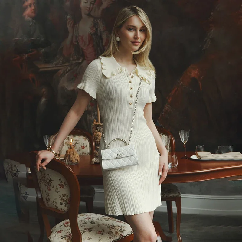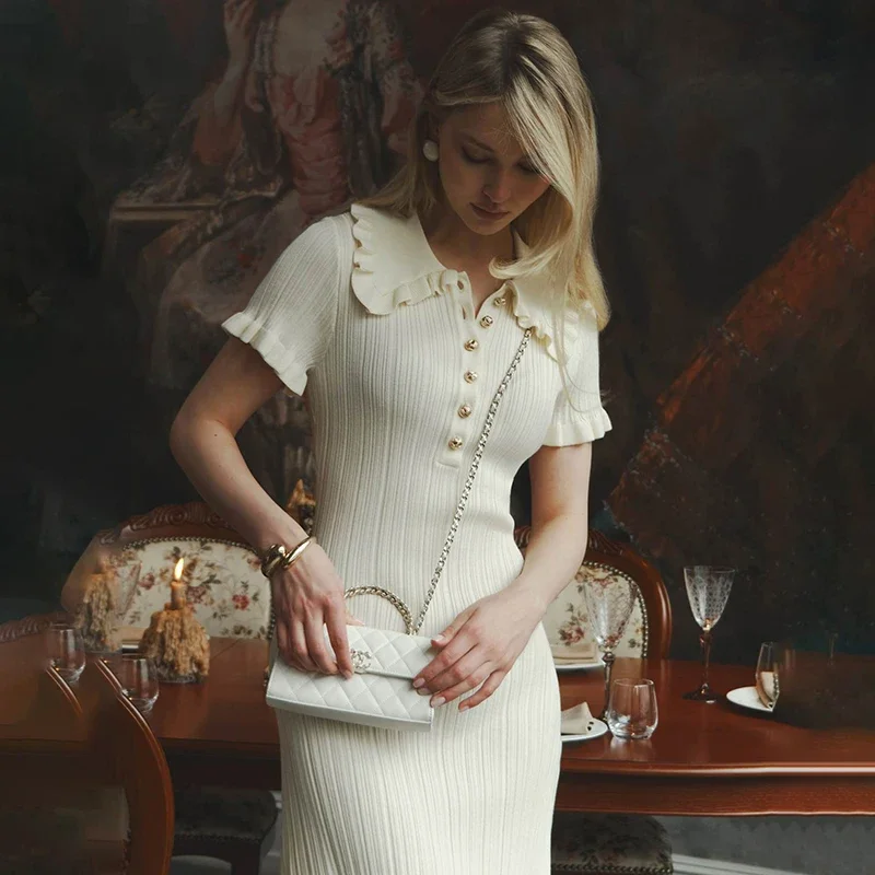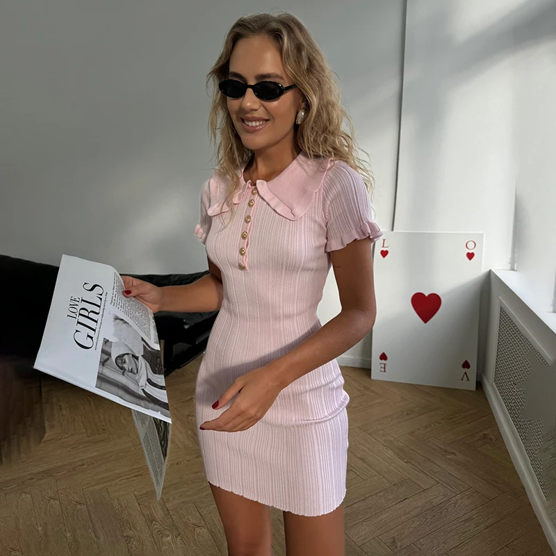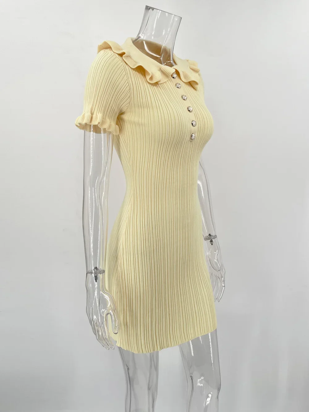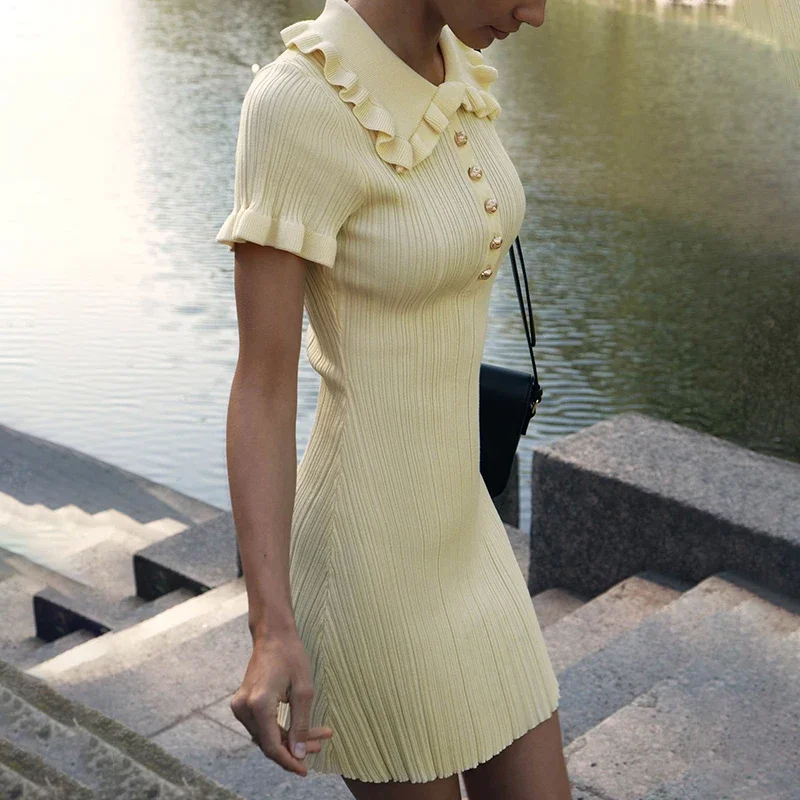 Tornova Ruffled Knitted Mini Dresses For Women High Waist Summer 2025 New Short Sleeve Dress Bodycon Female Retro Elegant Dress
