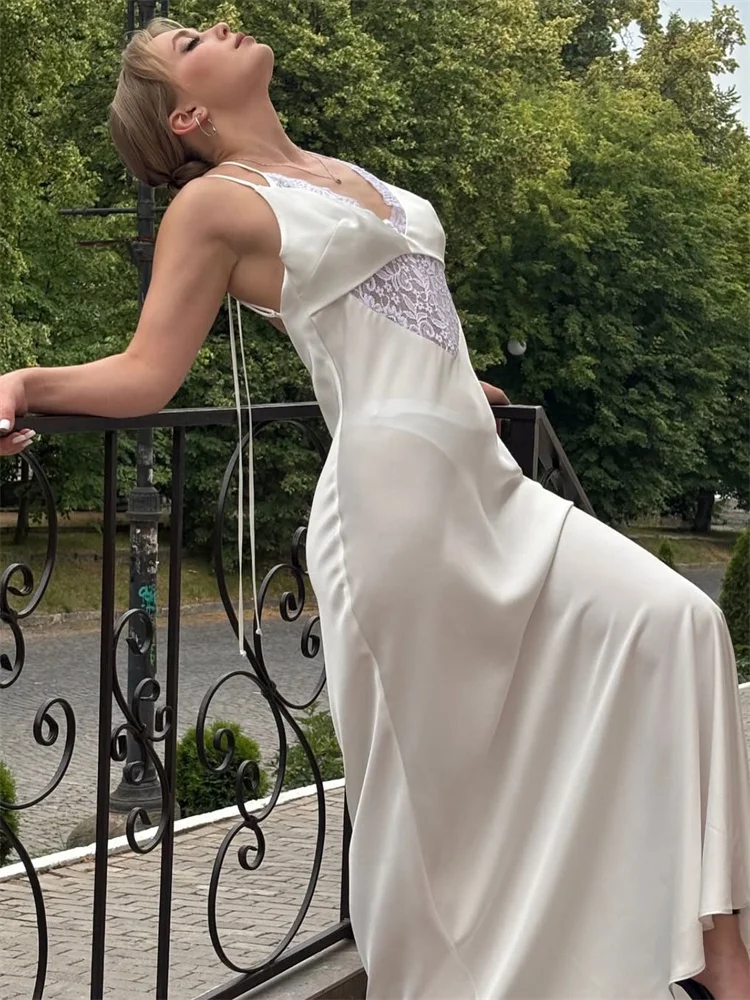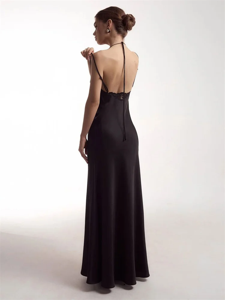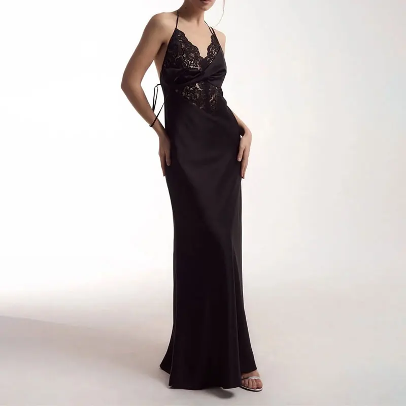 Tossy Sexy Lace Hollow Out Maxi Dress Female Backless Spaghetti Slim V-Neck Hollow Out Commute Dress Summer 2025 Halter Dresses