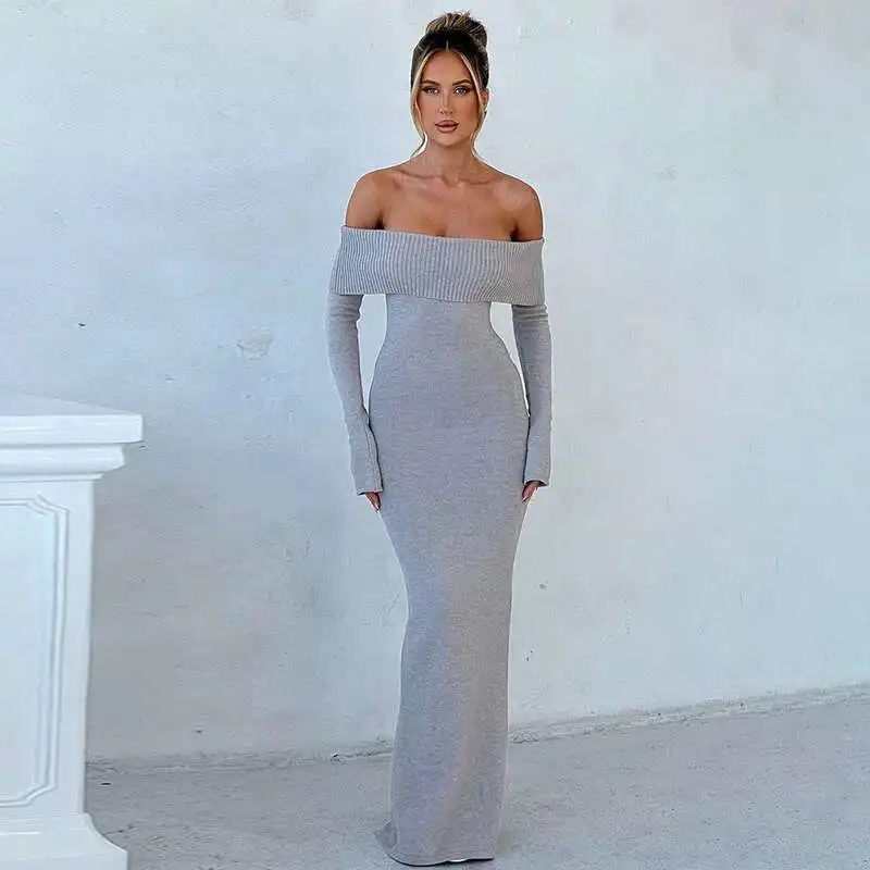 Townlike Knitted Slim Bodycon Dress Women Off Shoulder 2024 Autumn Winter Dress Nightclub Sexy Party Elegant Maxi Long Dresses
