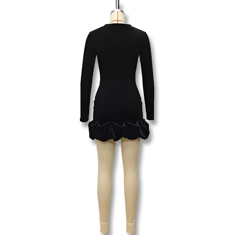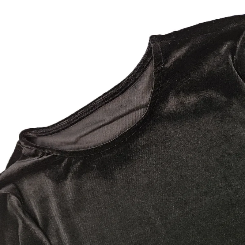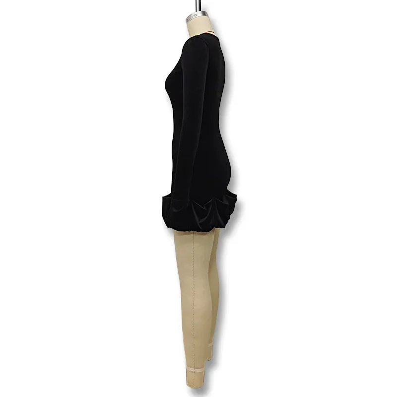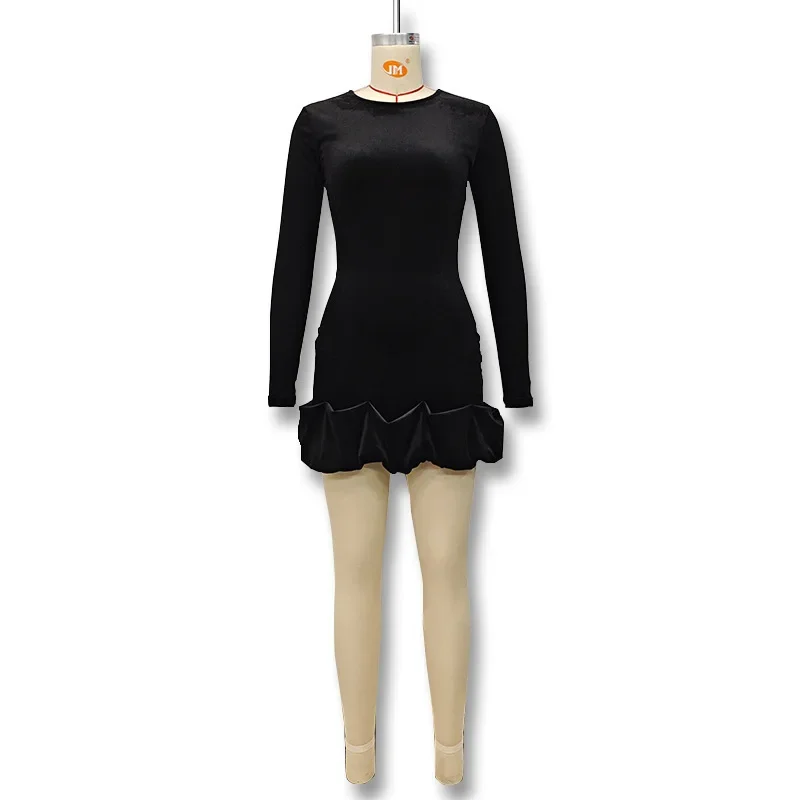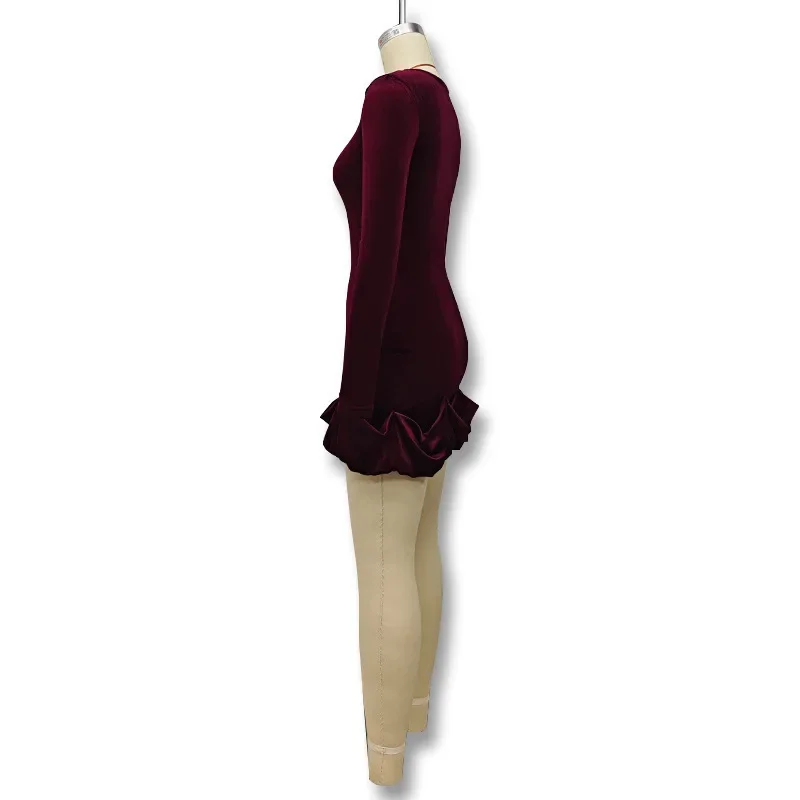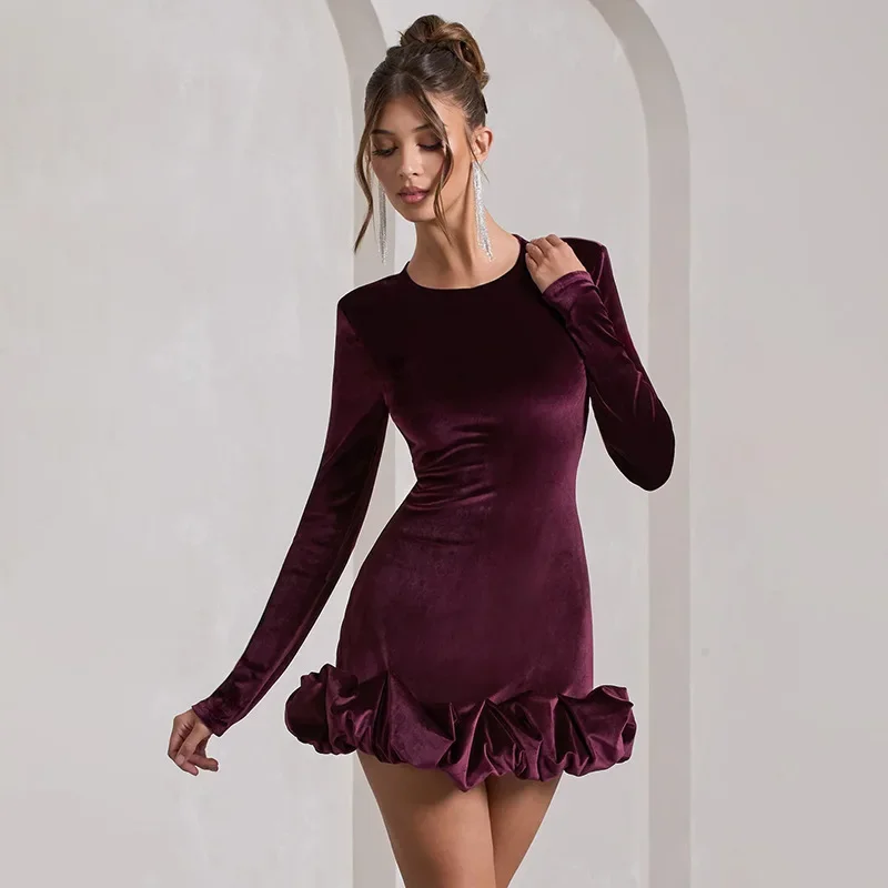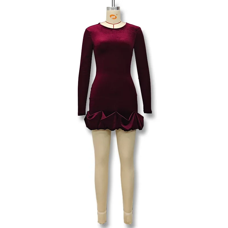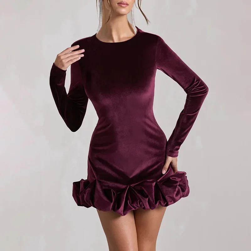 Velvet Long Sleeve round Neck Mini Dress Slim Fit Skirt Autumn Winter New Style Pleated Hemline Elegant Women's Fashion Dress