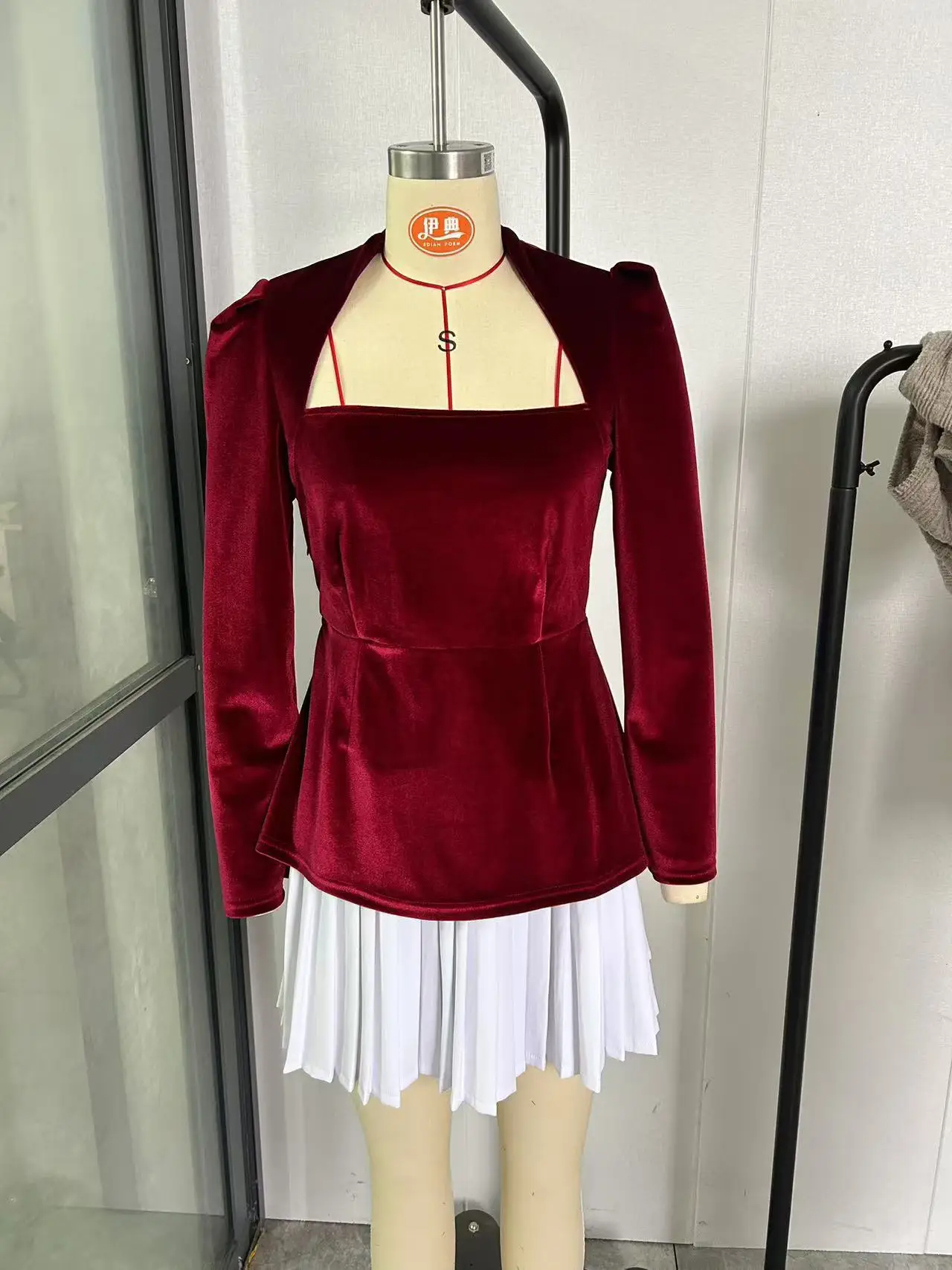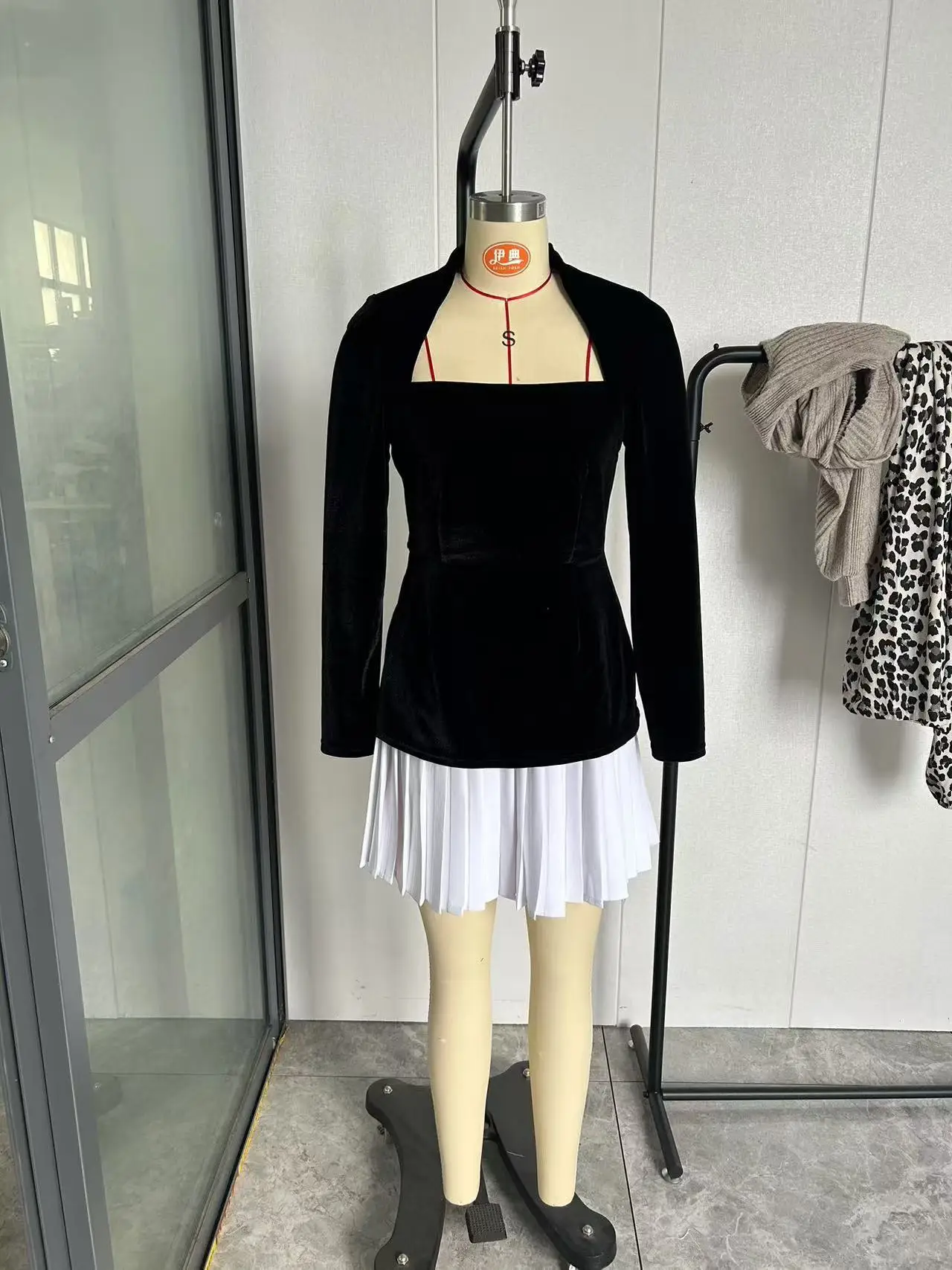 Velvet Spliced Mini Dress Women Square Neck Long Sleeve Gowns High Waist Elegant Dresses Autumn Winter Lady New Chic Party Dress