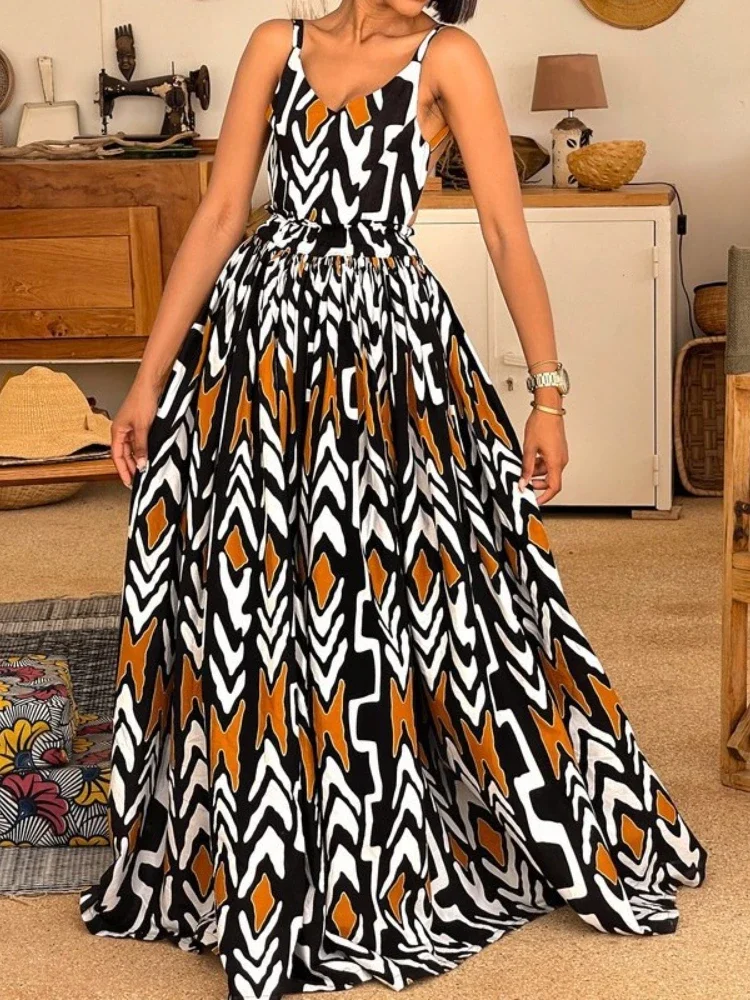 Imagine stepping into a world where each stride not only reflects your personal style but also celebrates the rich vibrancy of African culture under the warm embrace of the summer sun. Our exquisite Vibrant African Maxi Dress is crafted for the modern woman who desires to embrace her heritage while radiating elegance and comfort. With playful spaghetti straps and a flattering V-neck design, this dress transforms any outing – be it a wedding, picnic, or a sunny day with friends – into a stunning fashion statement that tells your unique story.The journey of this Maxi Dress begins with our deep appreciation for the rich diversity of African fashion. Made from high-quality polyester, it promises exceptional durability and breathability, gently hugging your skin with its luxuriously soft touch. Every detail has been thoughtfully designed to blend elegance with a free flow of movement, making it your ultimate companion for those warm summer months or festive occasions when you want to feel both stylish and fabulous.Visualize yourself in this stunning silhouette, where the flowing fabric cascades gracefully around your figure, ensuring you radiate confidence at every turn. The spaghetti straps allow you to bask in the sunlight while the V-neck cut perfectly accentuates your neckline, making it not just a dress but a heartfelt invitation to embody the spirit of summer, joy, and cultural pride – inviting compliments and admiration wherever you go.Feel the thrill of twirling in this delightful design; the lightweight fabric dances across your skin, making every moment memorable – from casual brunches with friends to lively music festivals. This dress adapts effortlessly to your lifestyle, offering you the freedom to express the vibrant and beautiful woman you truly are.But don't just take our word for it! Hear it from our delighted customers: \