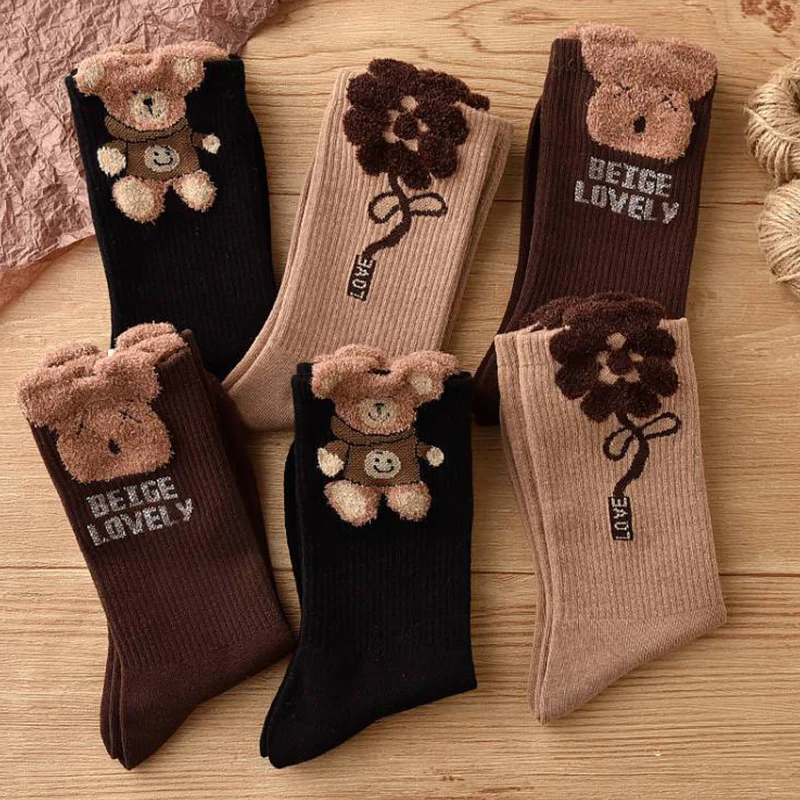 Vintage Plush Bear Stockings 3D Bear Cute Mid-calf Socks Autumn Winter Female Stockings Lovely Korean Style Socks For Girls