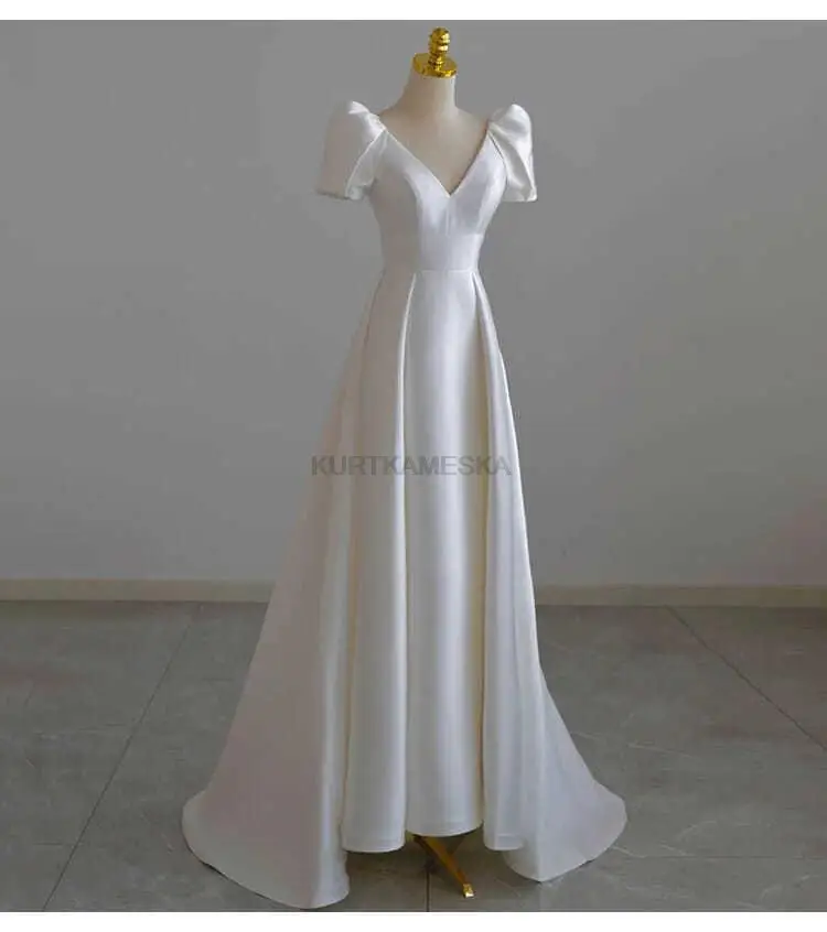 White Satin Wedding Bride Maxi Dress Elegant Long Prom Evening Guest Party Summer Dresses for Women 2022 Hepburn Style vestidos