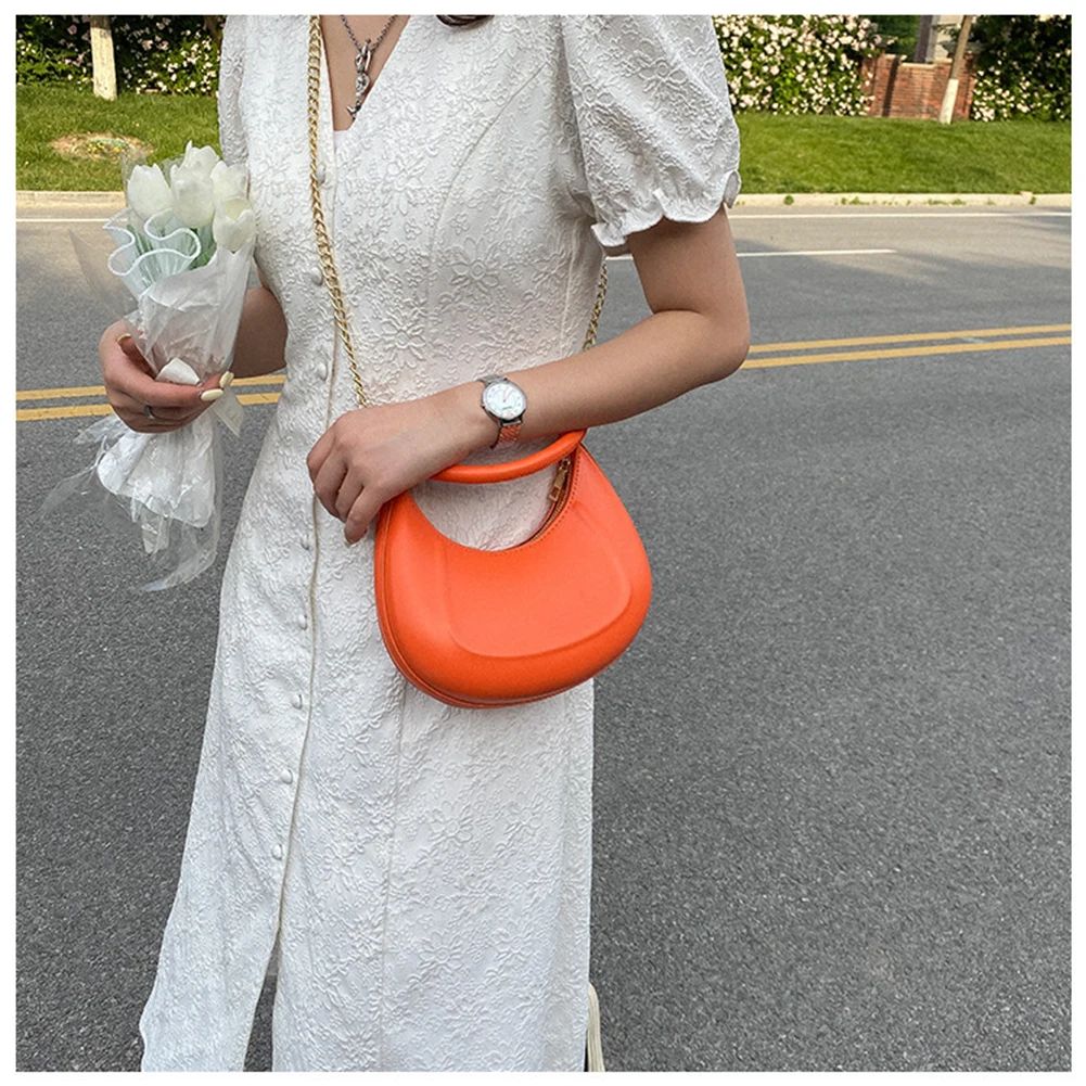 Women Fashion Versatile Shoulder Bag Underarm Bag Chain Crossbody Bag Solid Color PU Leather Handbag