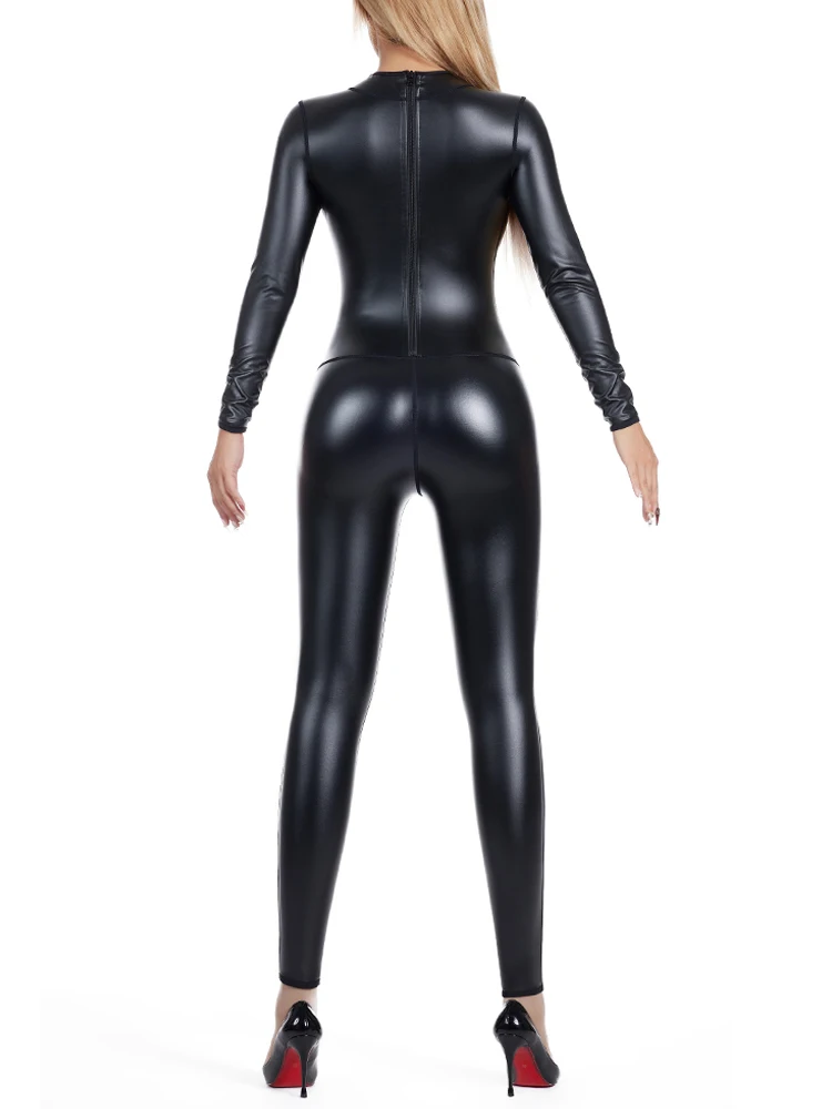 Women Shapewear High Elastic Bodysuit PU Leather Costume