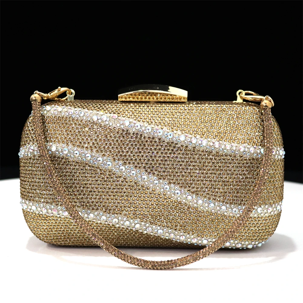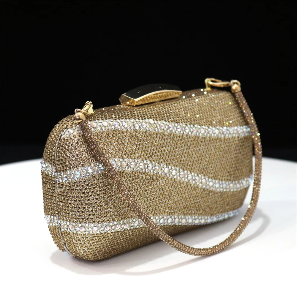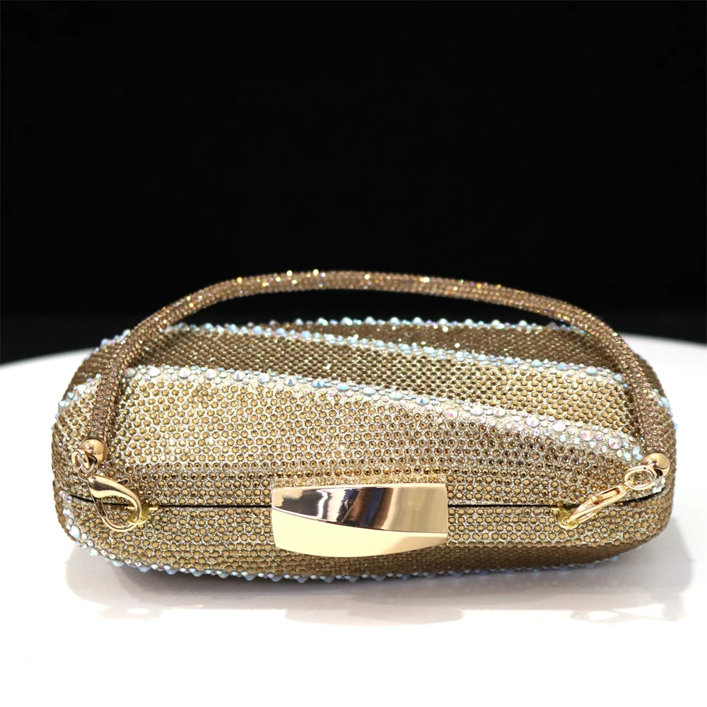 Women's Evening Clutch Bag Party Purse Luxury Wedding Clutch For Bridal Exquisite Crystal Ladies Handbag Apricot Silver Wallet