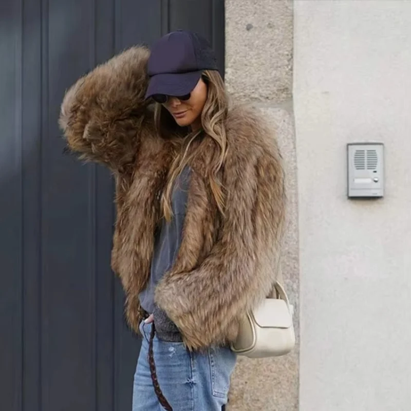 Women's Fashion Faux Fur Long Overcoat Women Solid Long Sleeves Wool Coats Winter Fluffy Plush Warm 2024 Lady Thicken Outerwear
