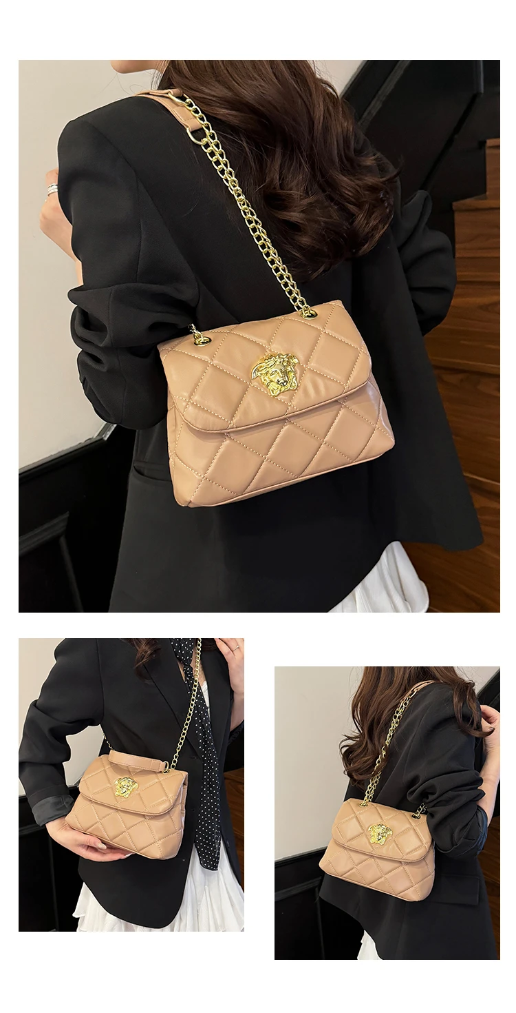 Women's Fashion Shoulder Bag Pu Leather Quilted Handbag Compact Crossbody Bag for Business