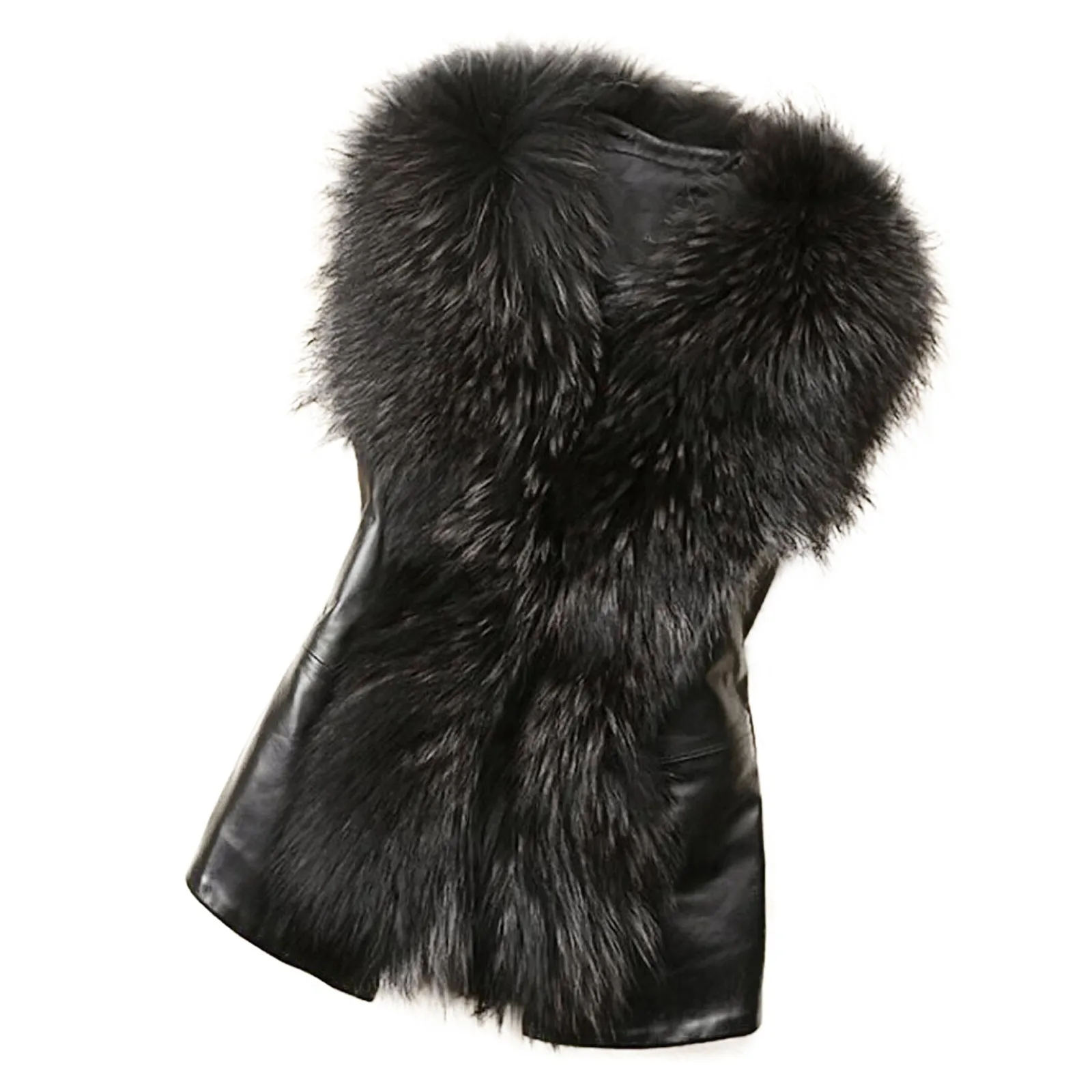 Women'S Fur Coat Vest Autumn Winter Warm Jacket Coat Gilet Ladies Sleeveless Waistcoat Outwear