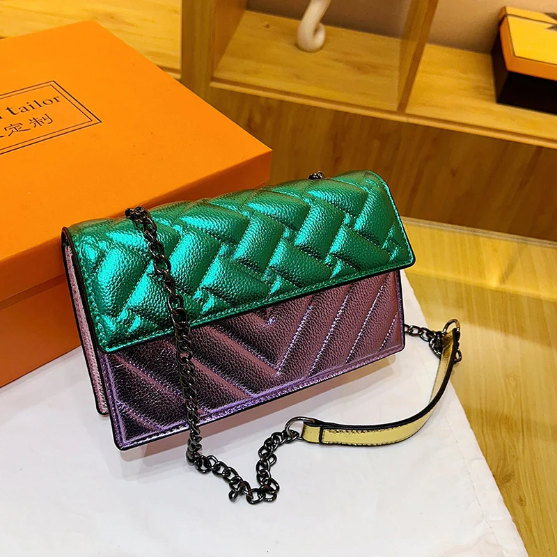 Women's K-G Colorful Splicing Chain Bag Fashionable And Versatile Grid Embroidery Bag Single Shoulder Crossbody Bag