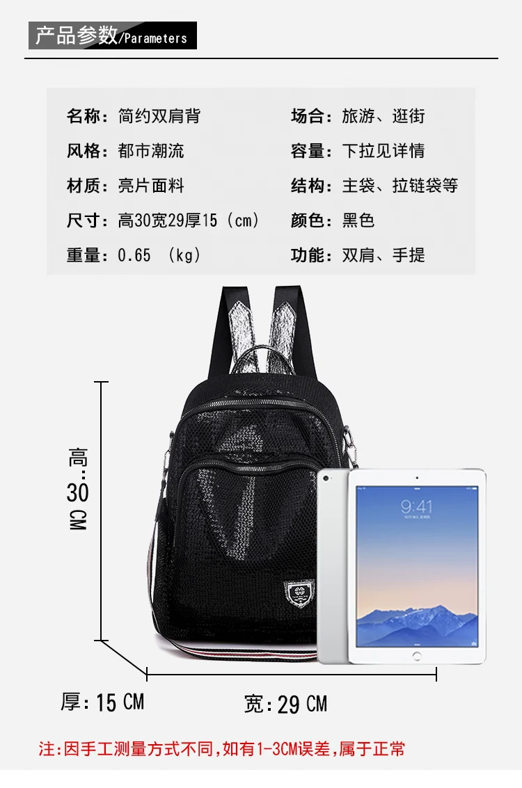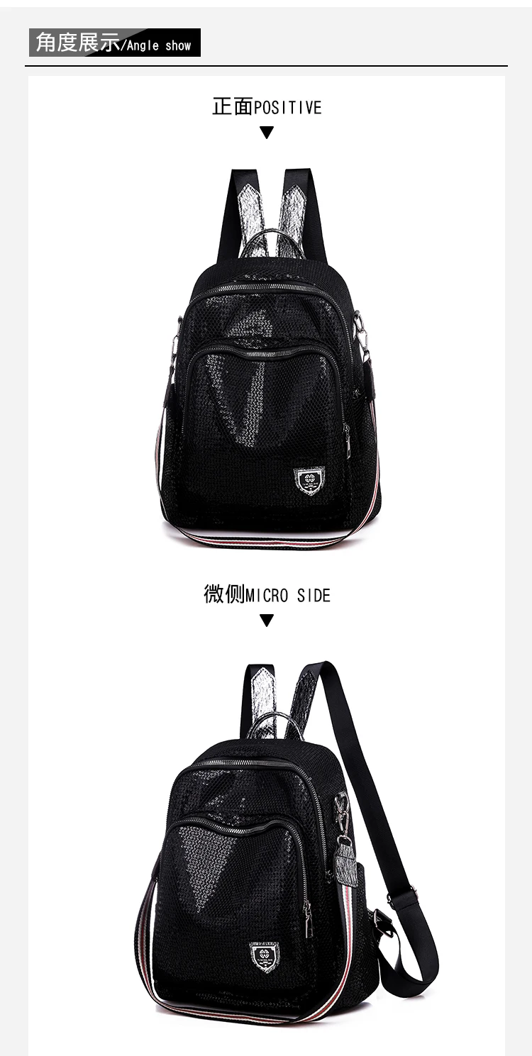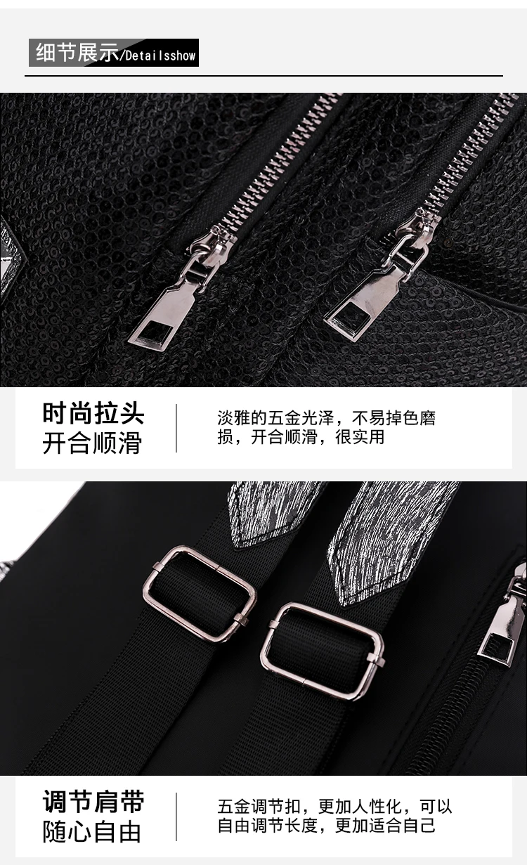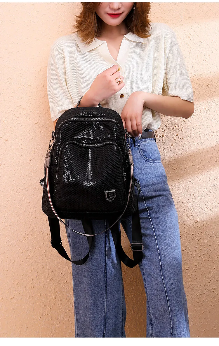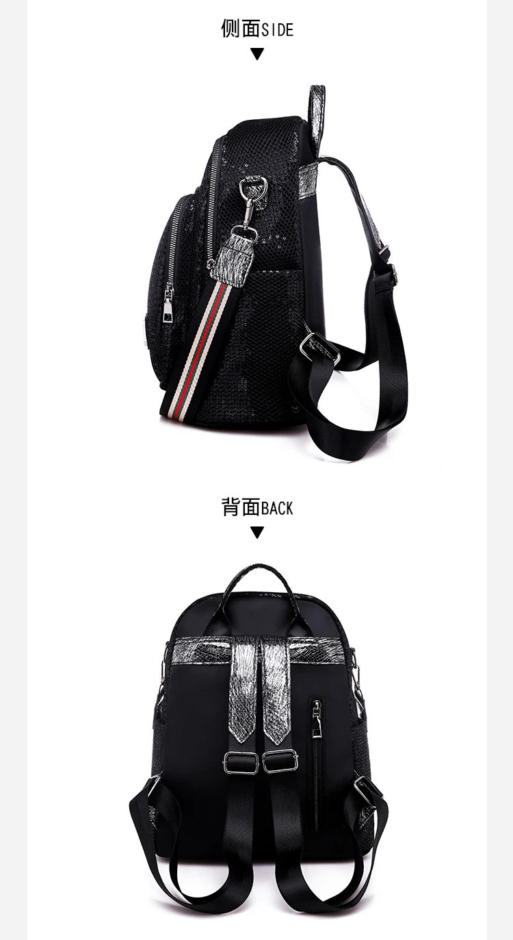 Women's Korean Edition 2023 New Versatile Leisure Travel Fashion Glitter Oxford Cloth Backpack Dual Use Bag
