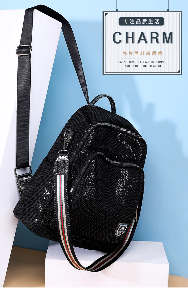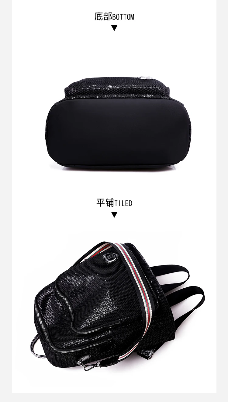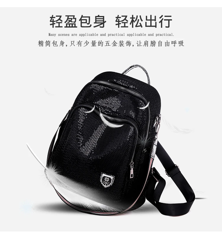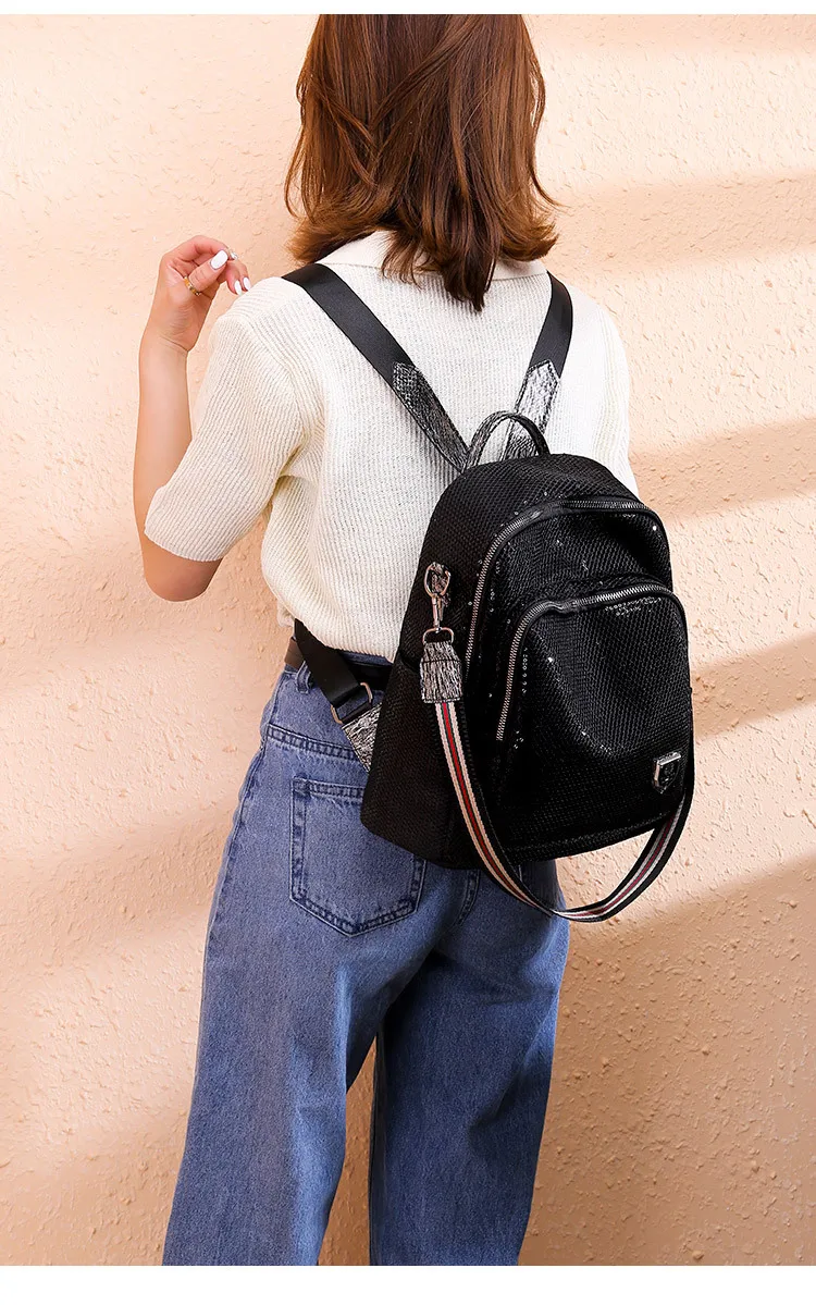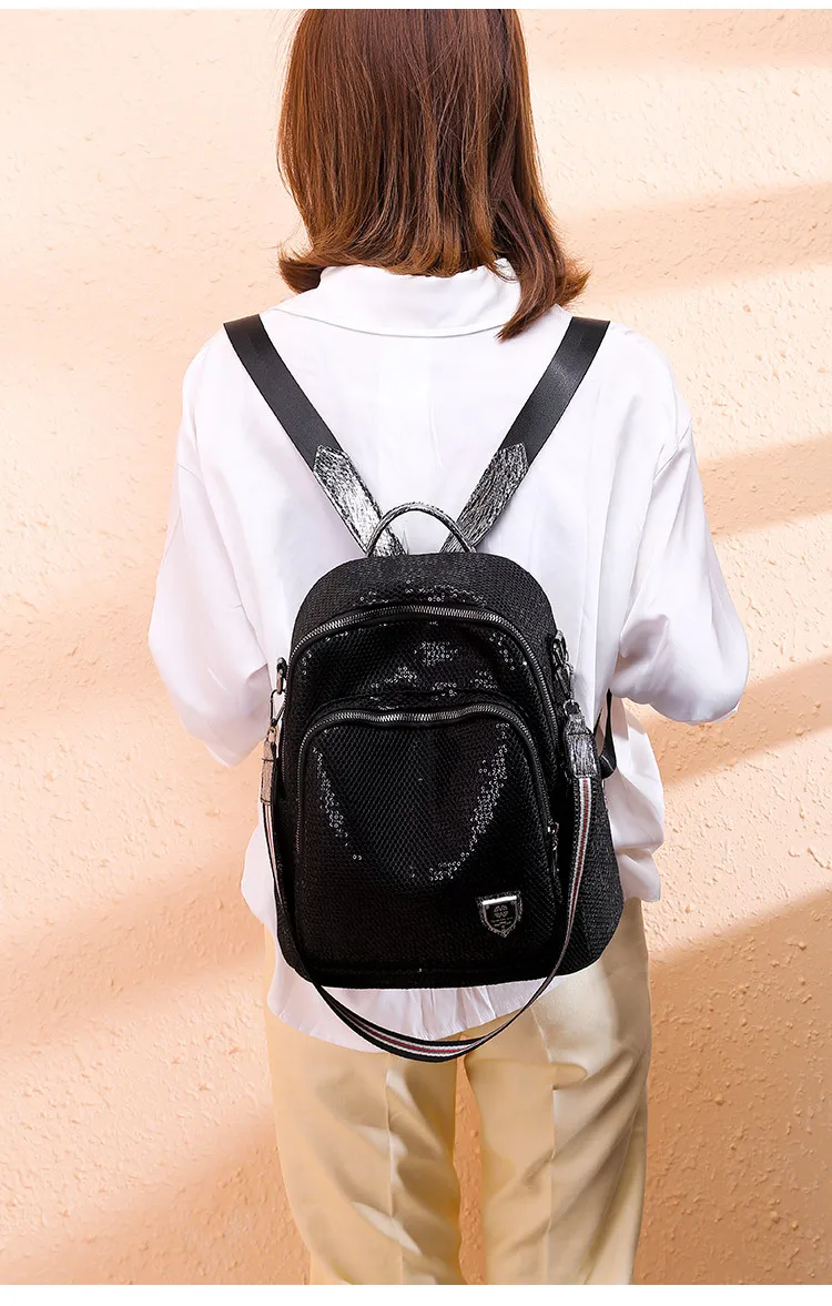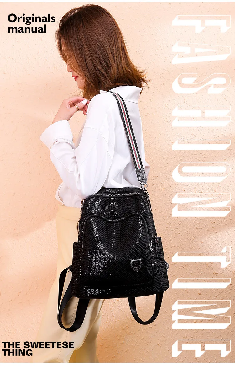 Women's Korean Edition 2023 New Versatile Leisure Travel Fashion Glitter Oxford Cloth Backpack Dual Use Bag