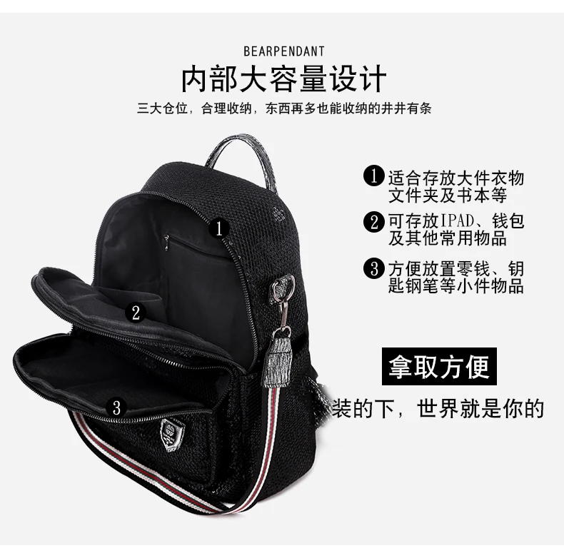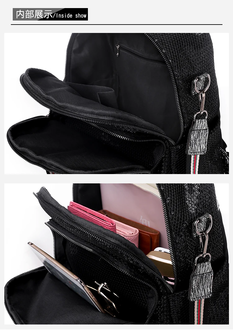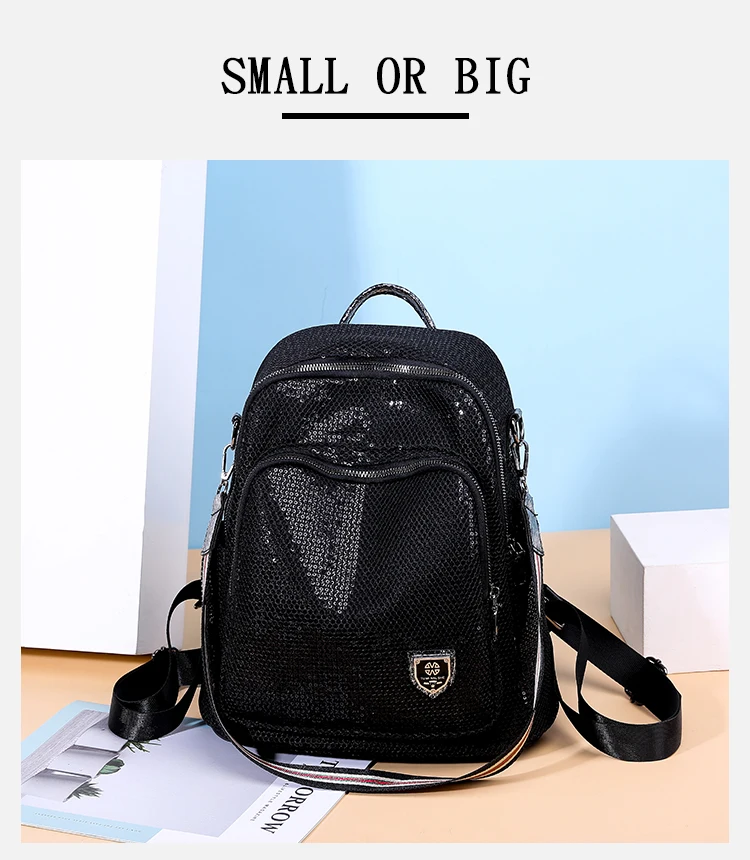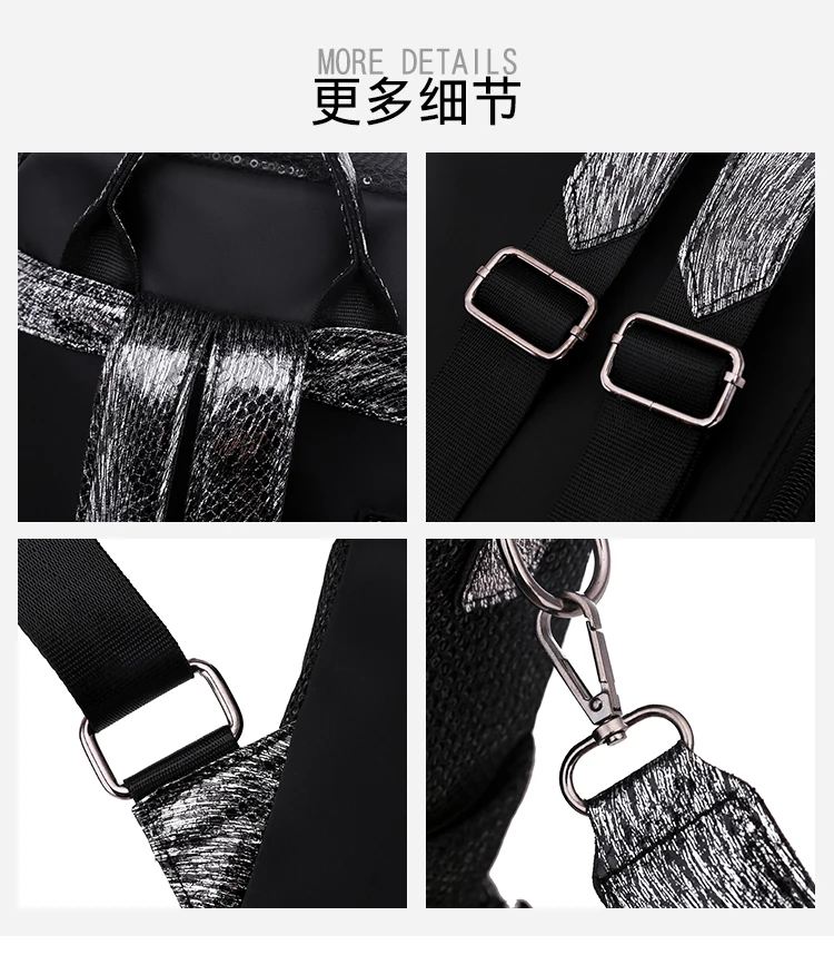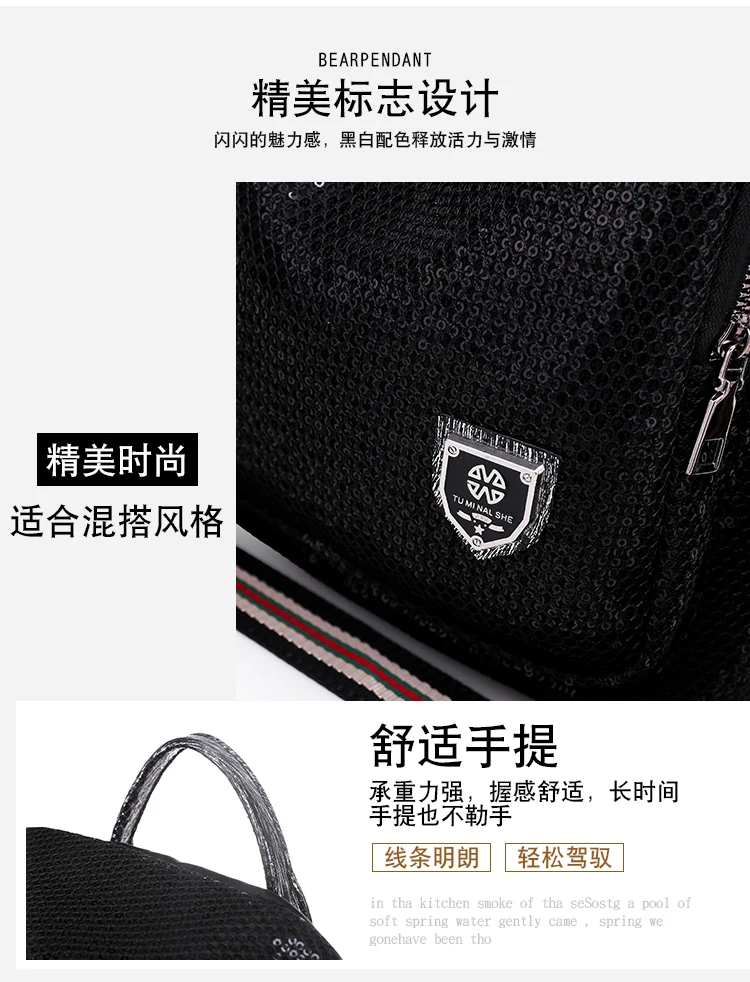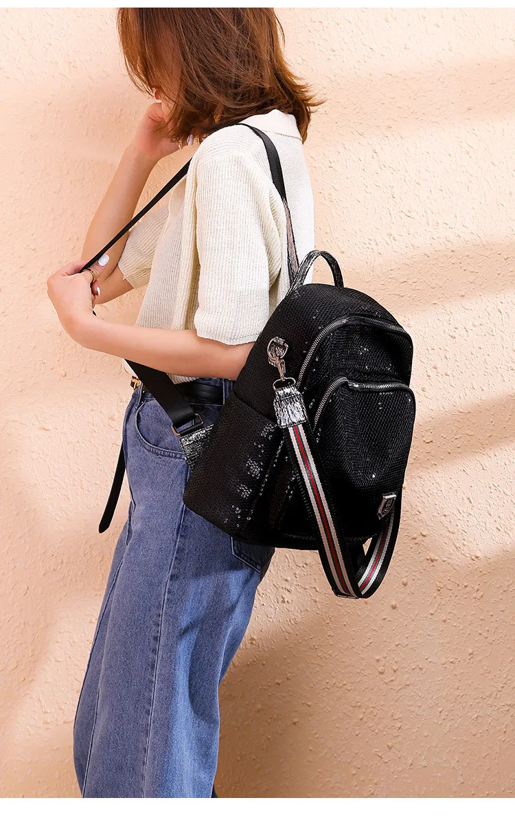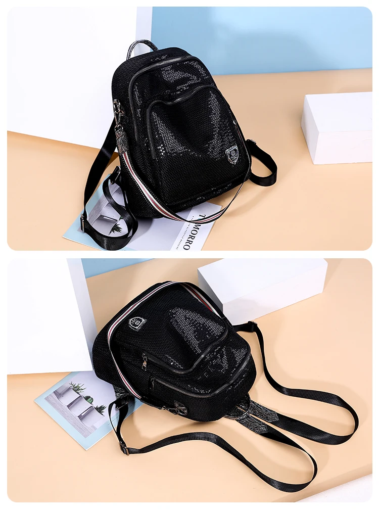 Women's Korean Edition 2023 New Versatile Leisure Travel Fashion Glitter Oxford Cloth Backpack Dual Use Bag