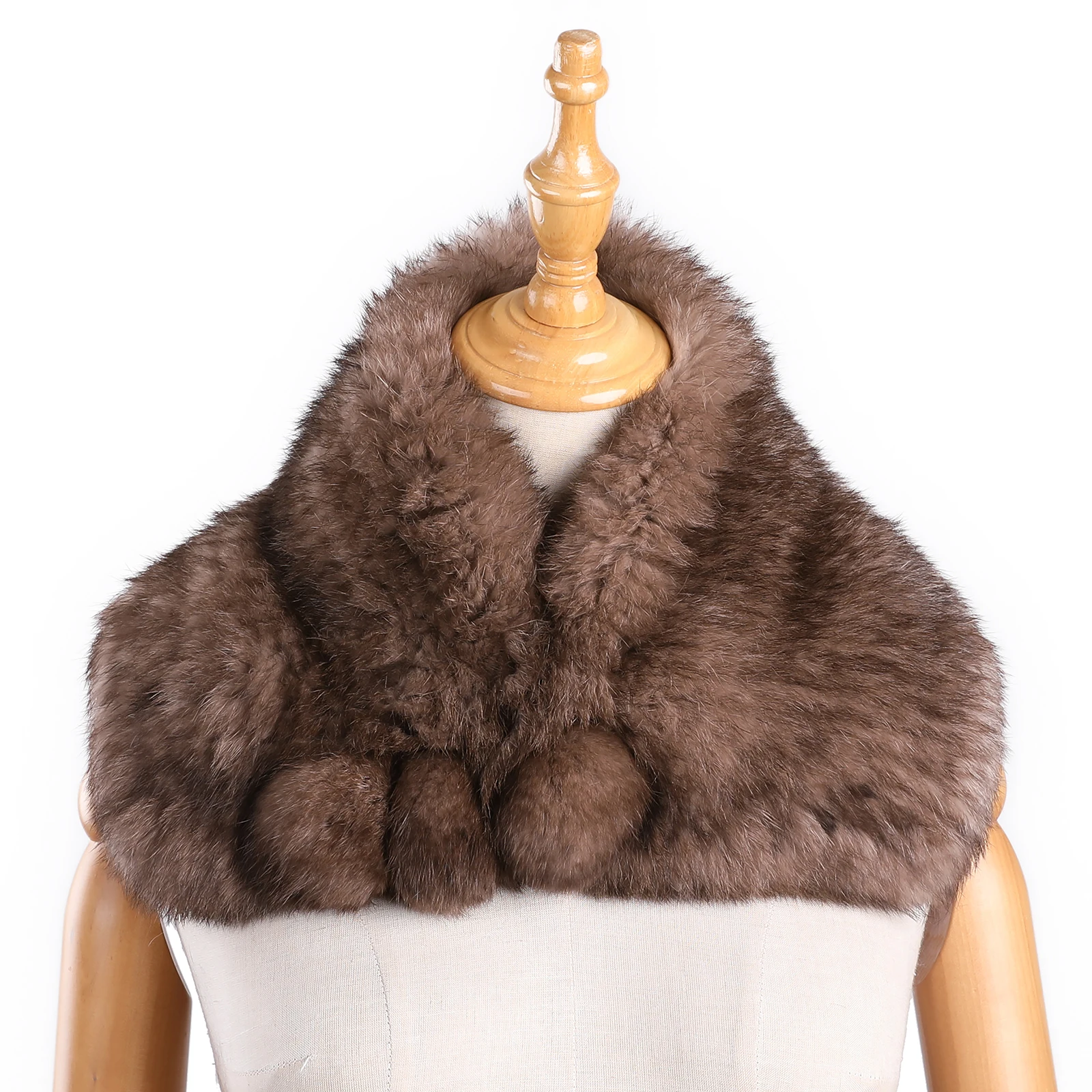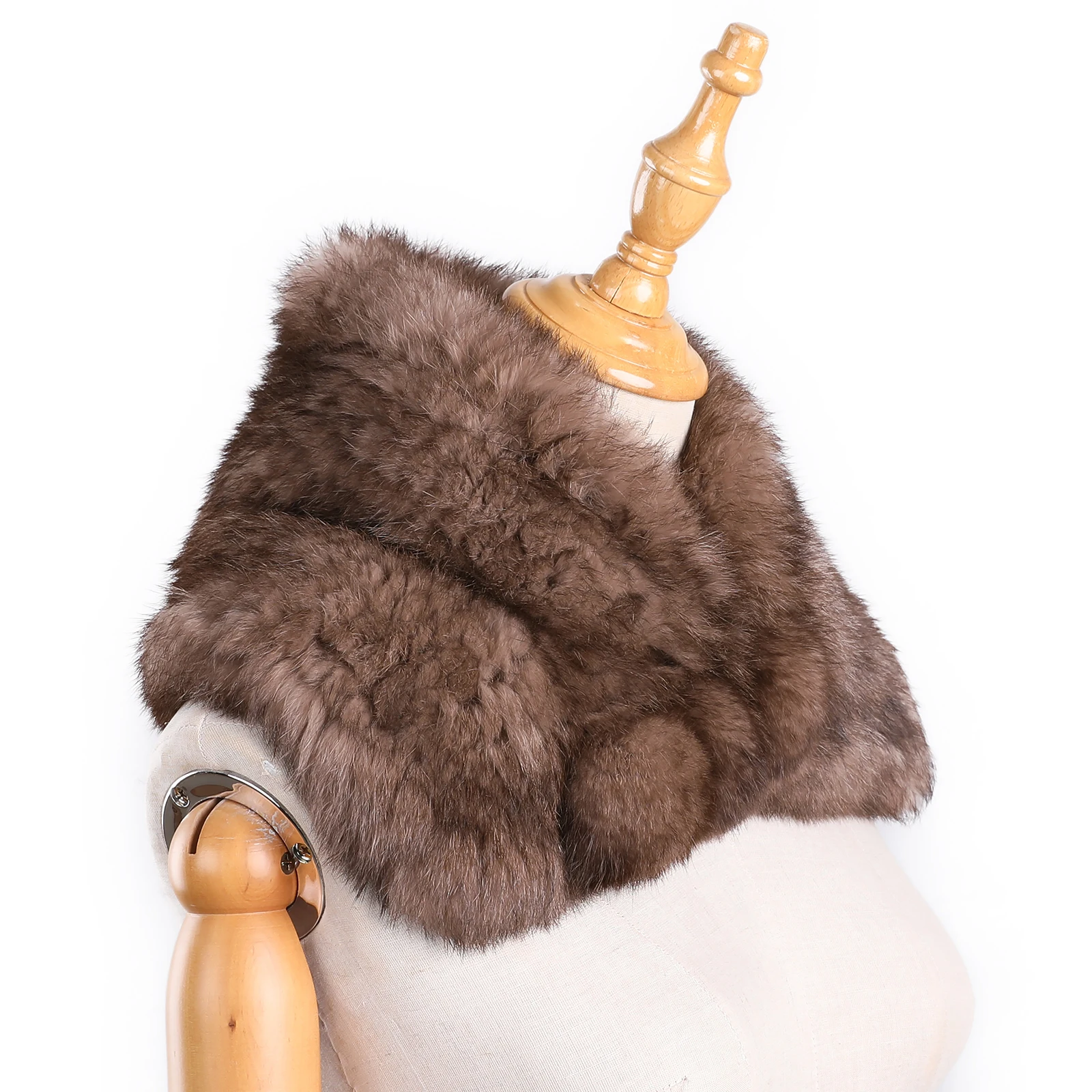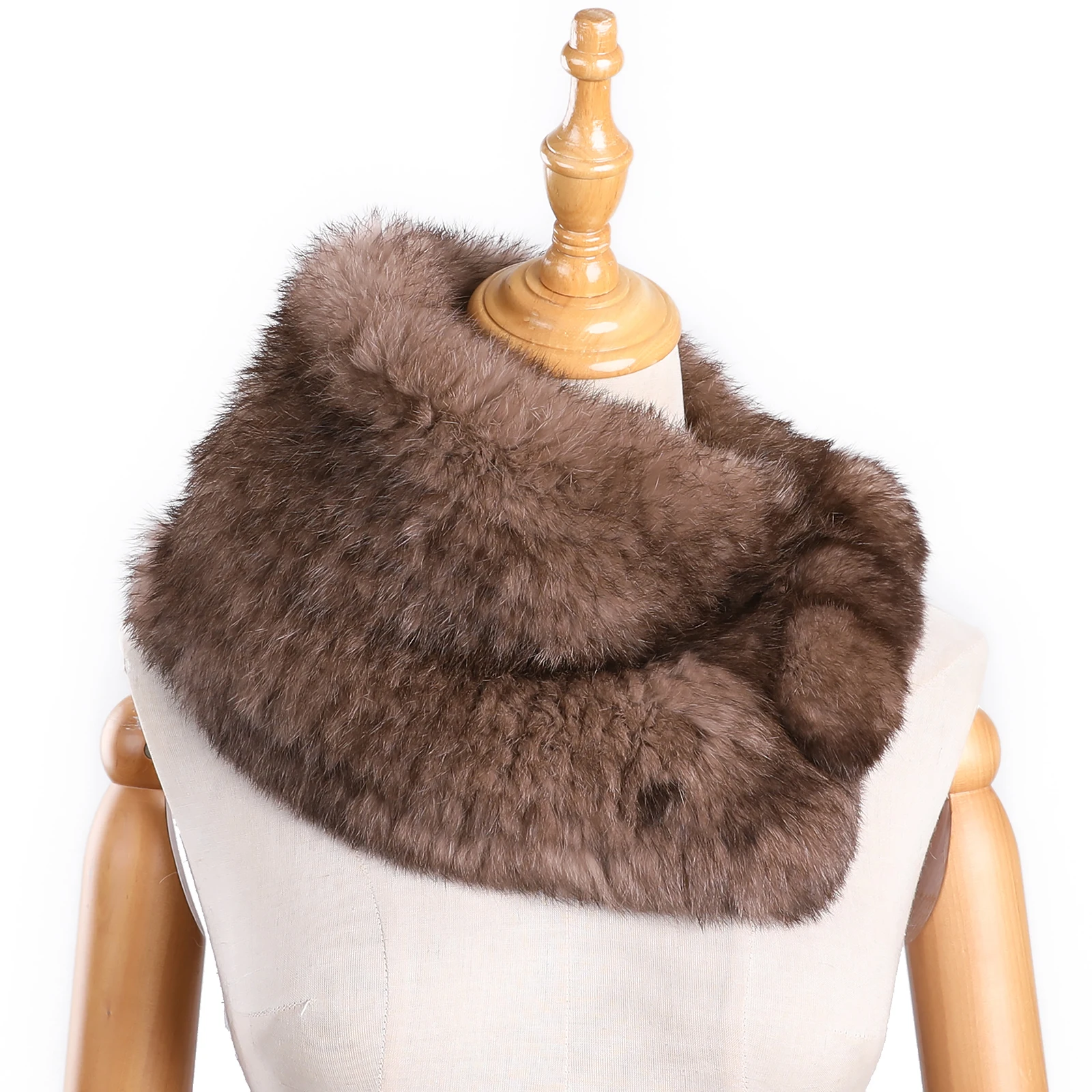 Women's Winter Scarf Neck warmer Genuine Rabbit Fur Knitted Wraps and Shawls Furry Stole Shoulder cape