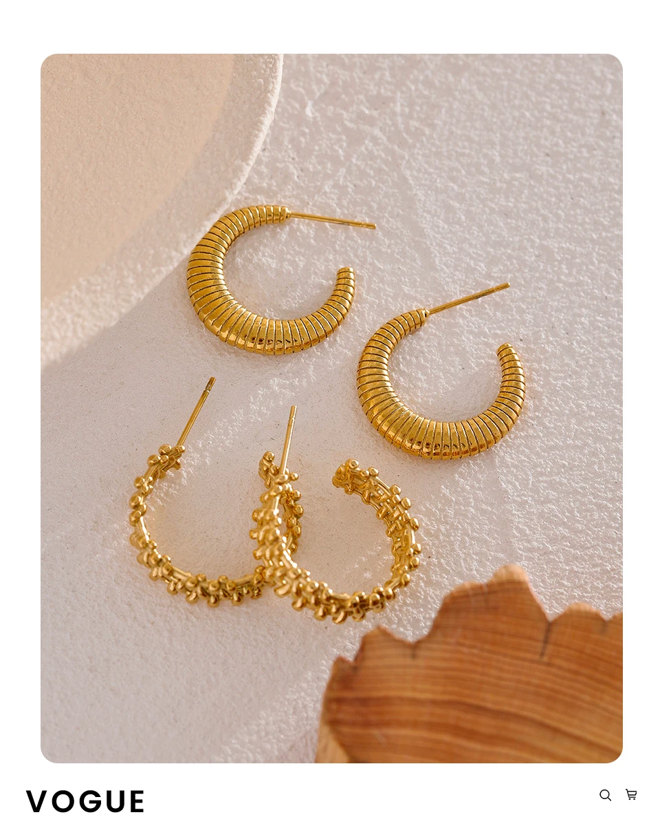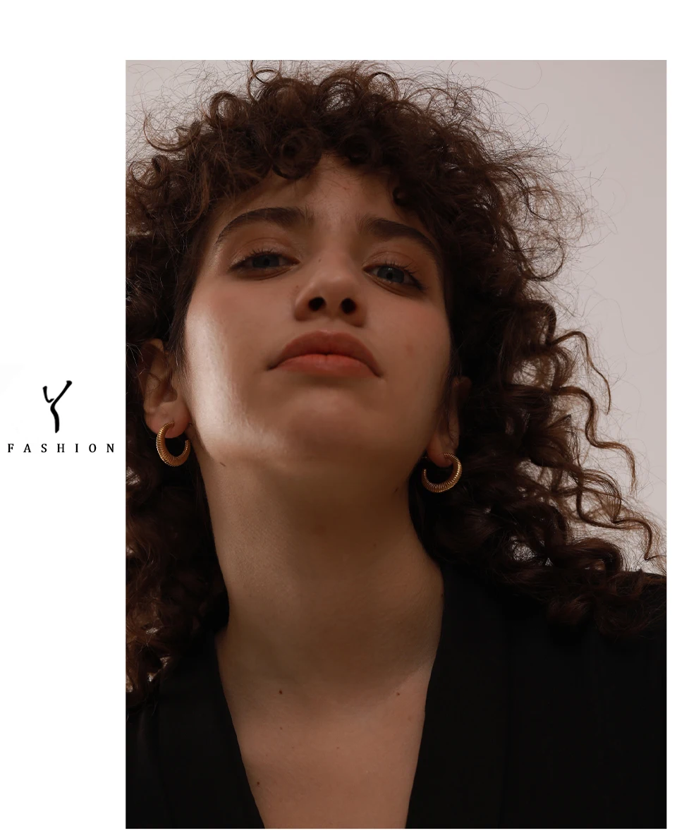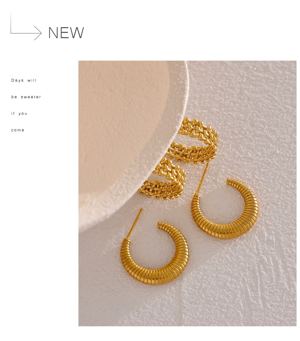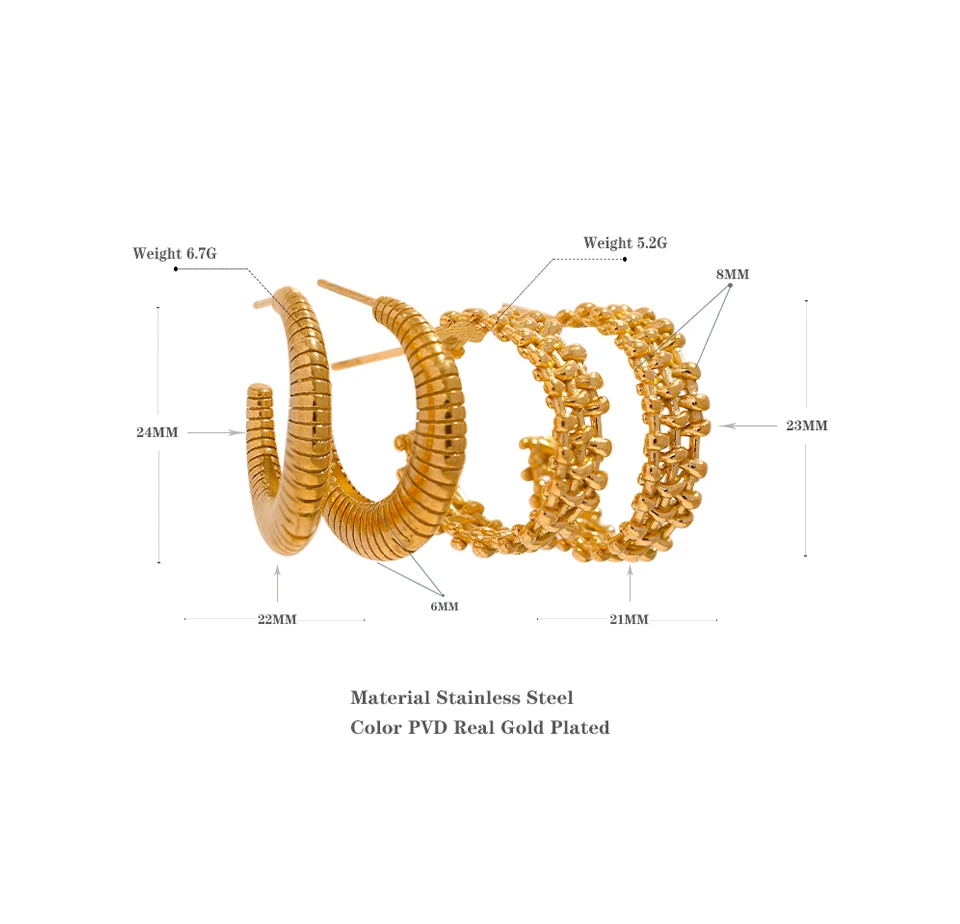 Yhpup Metal Temperament Golden Hoop Earrings Fashion Stainless Steel PVD Plated Charm Stylish Unique Personalized Jewelry Woman