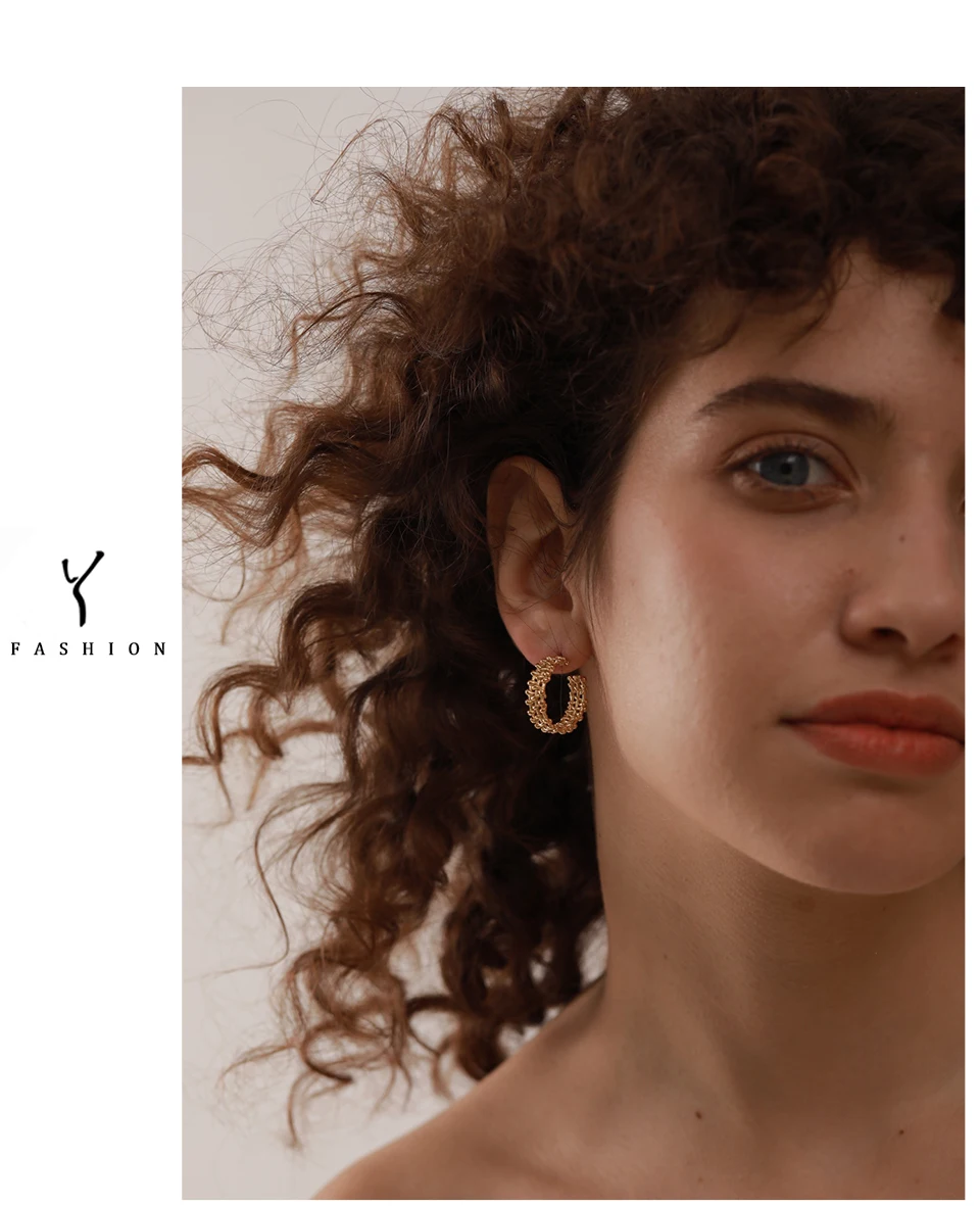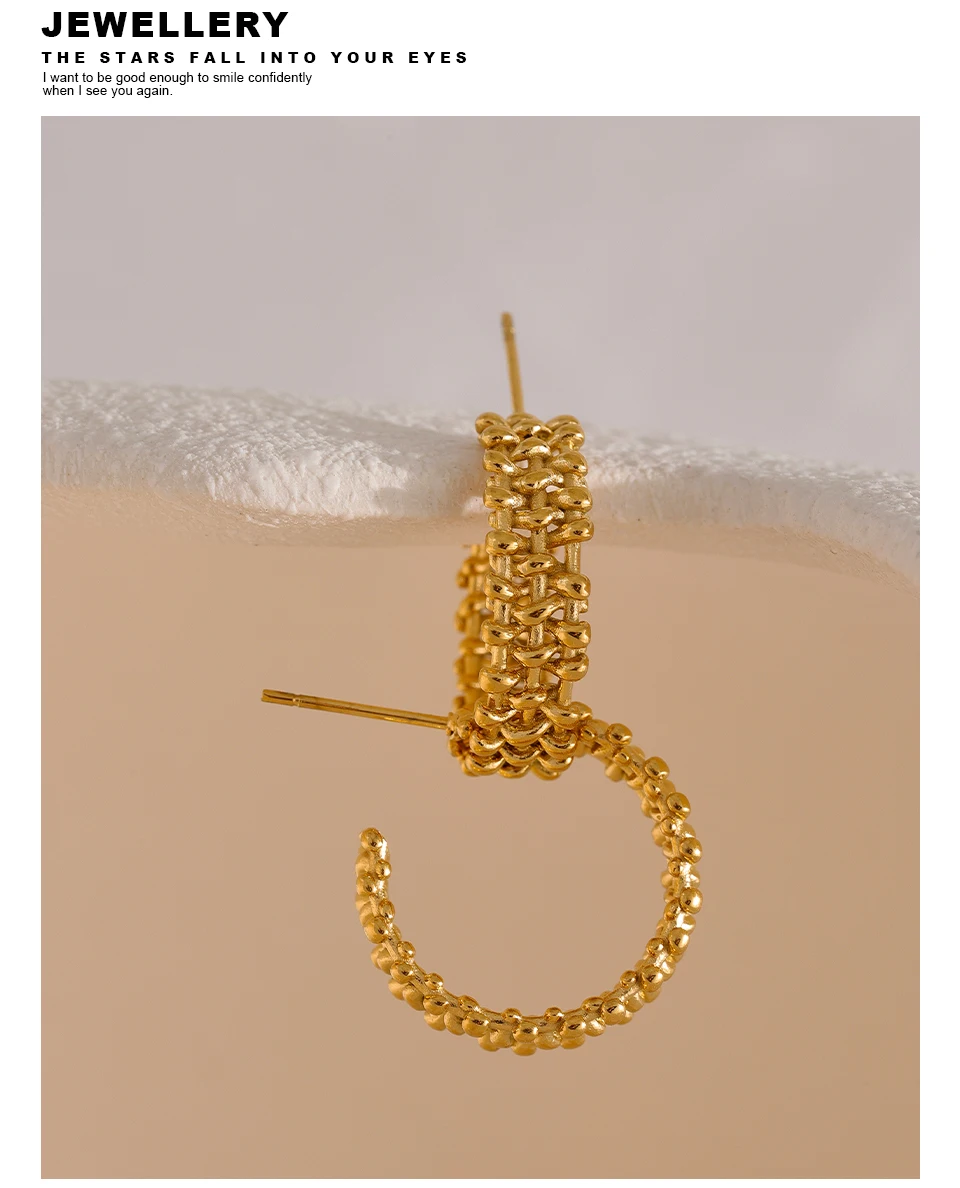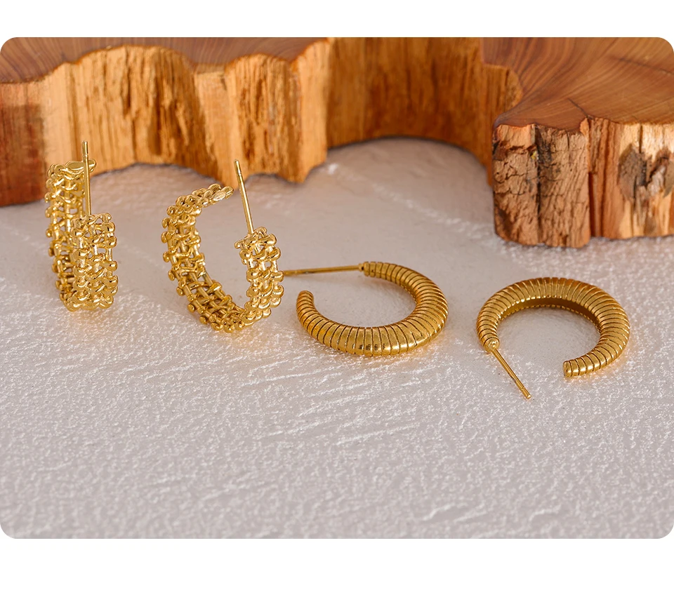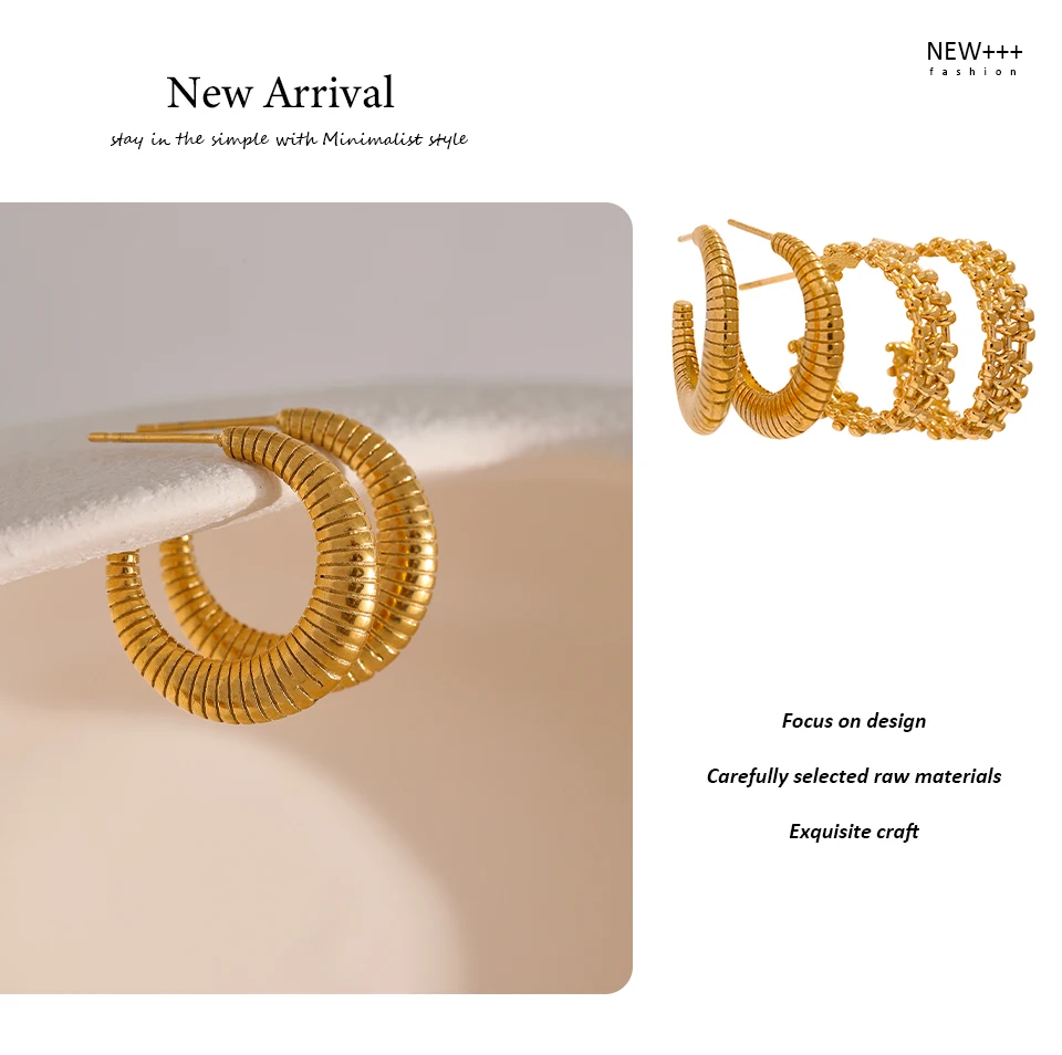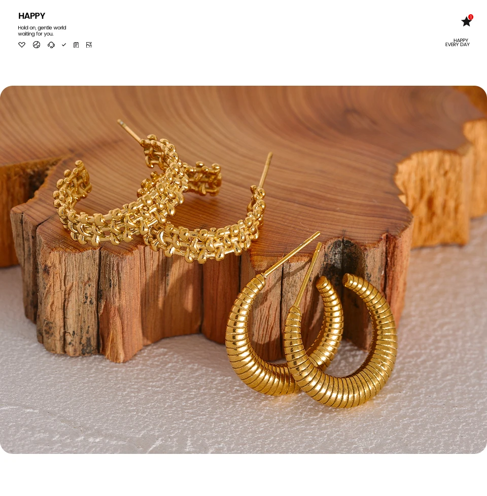 Yhpup Metal Temperament Golden Hoop Earrings Fashion Stainless Steel PVD Plated Charm Stylish Unique Personalized Jewelry Woman
